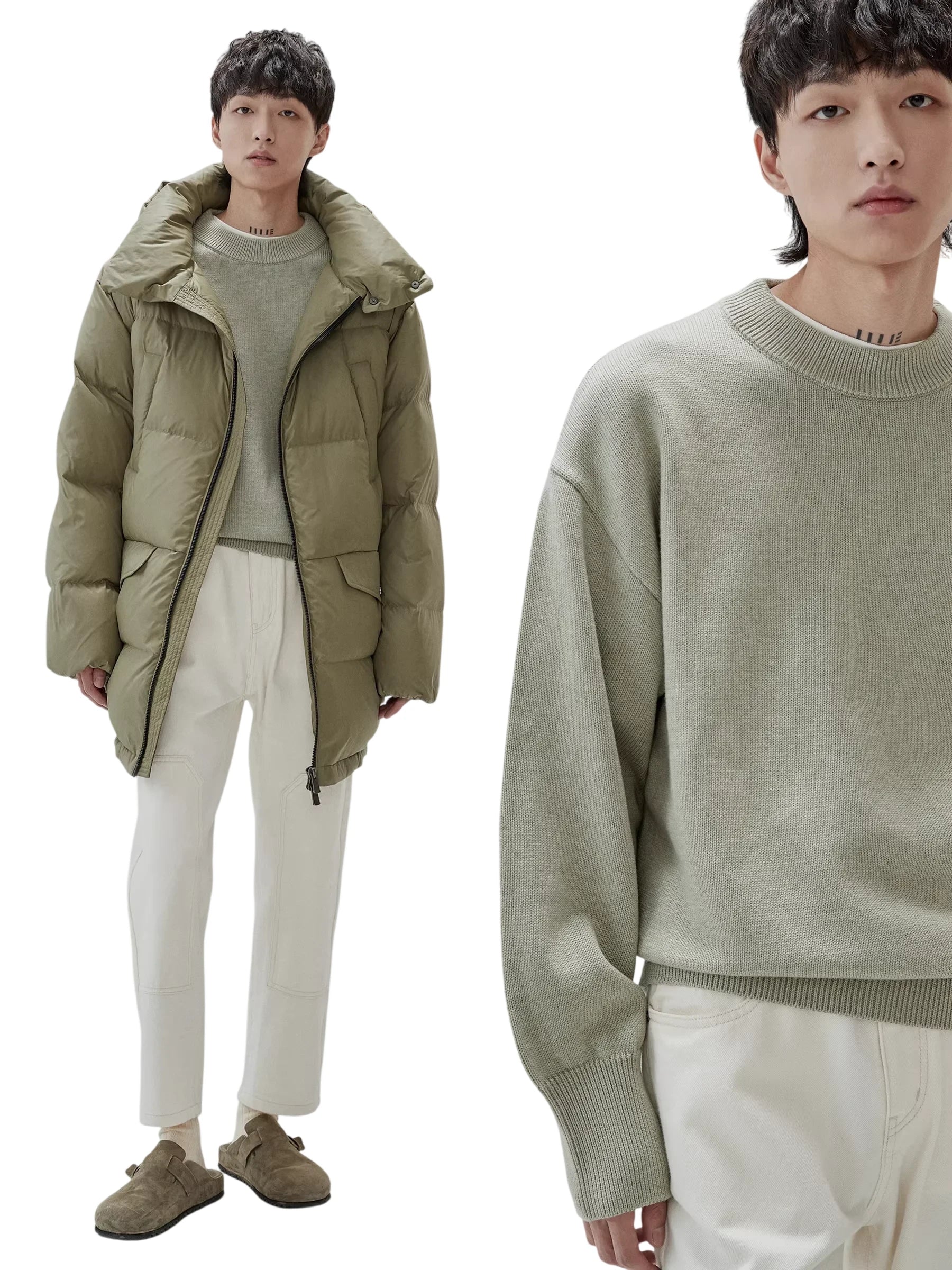 NANS Menswear Ultra-Fine Merino Wool Cashmere Crew Neck Sweater
