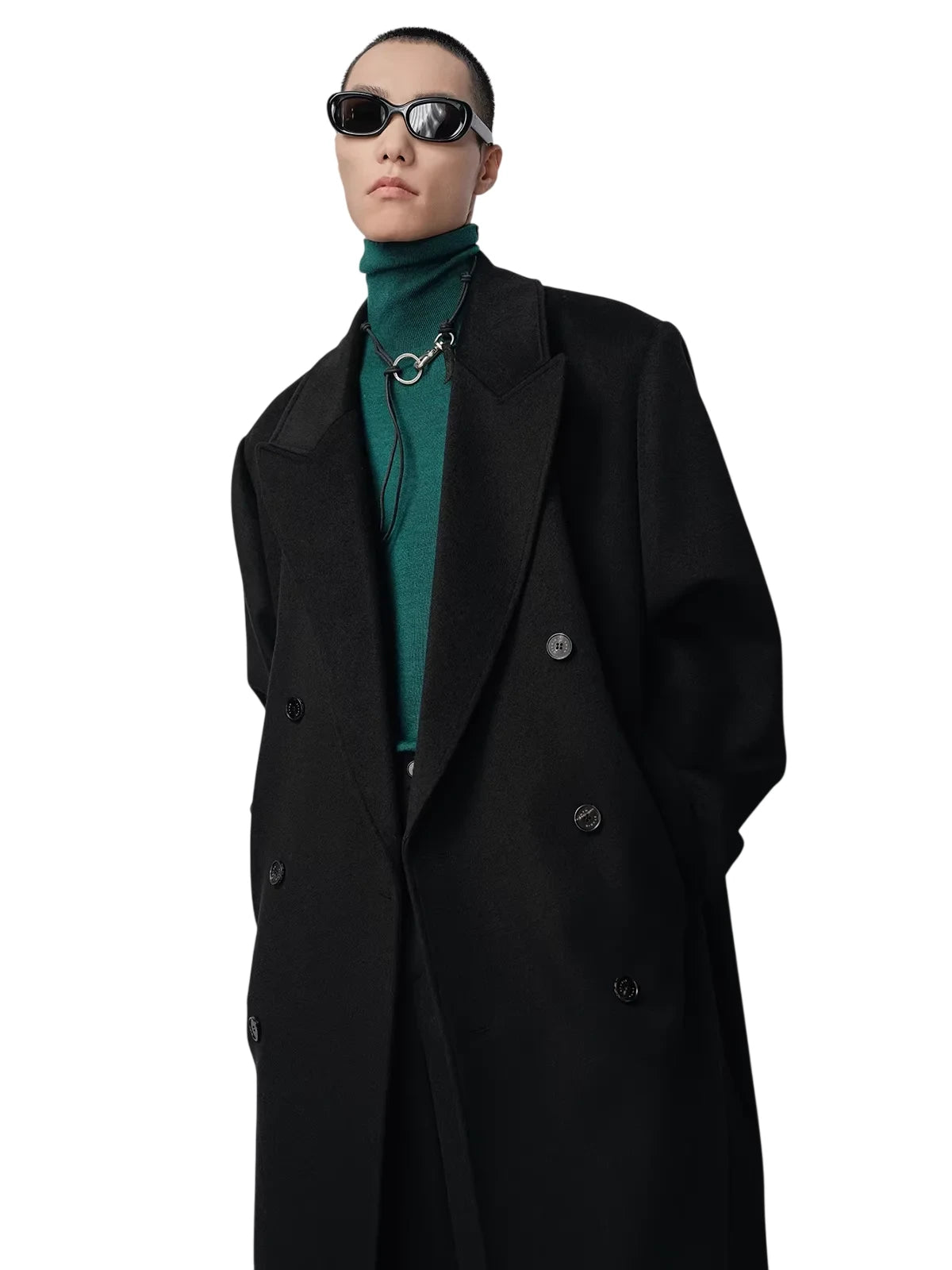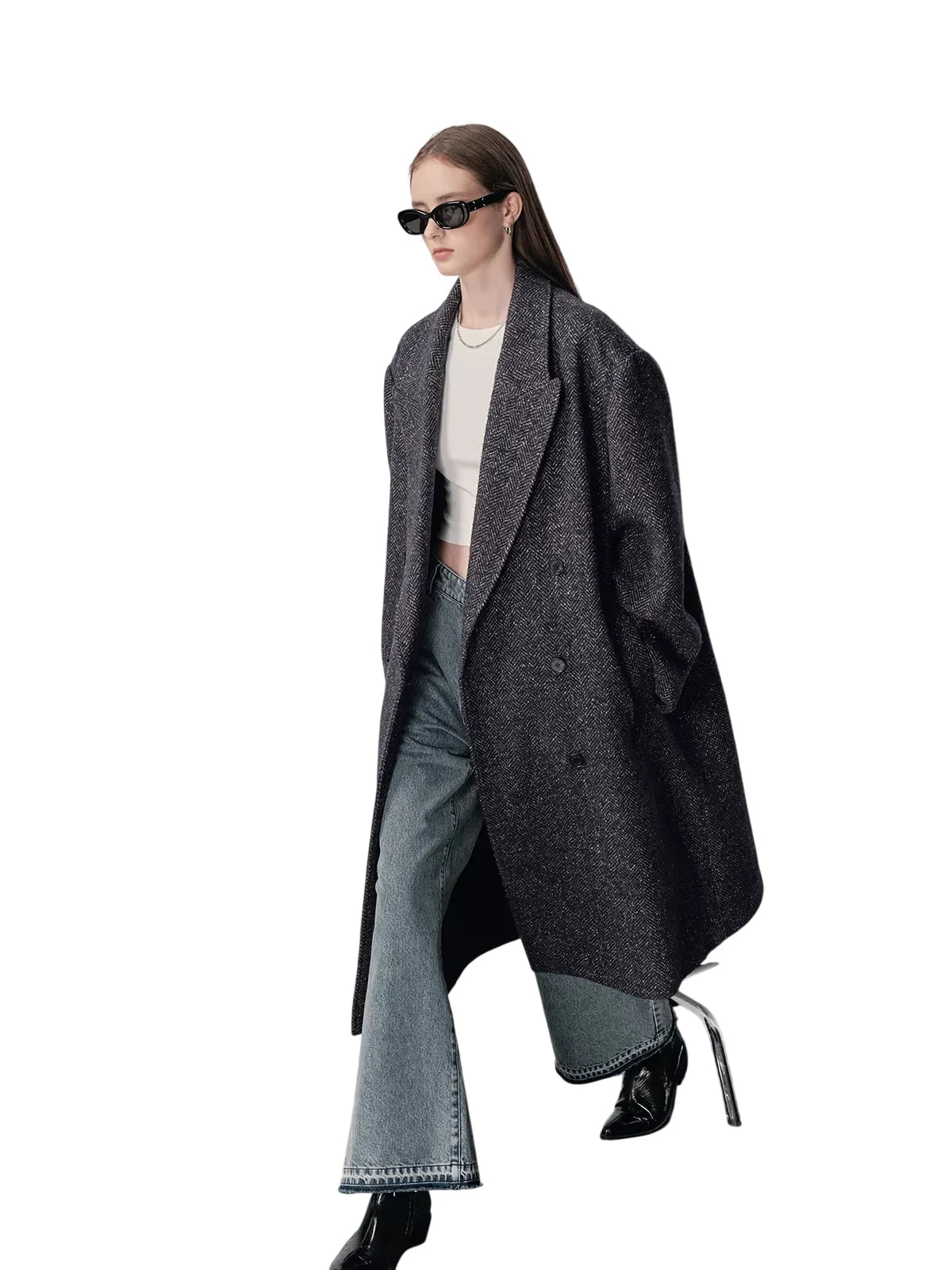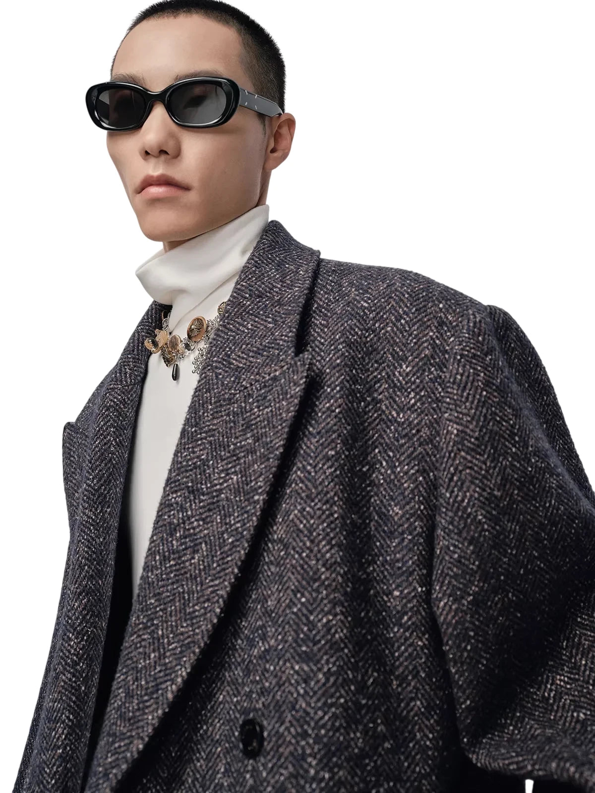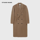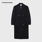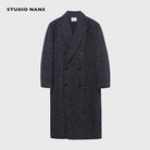 NANS Menswear Men's Oversized Double-Breasted Wool Herringbone Coat