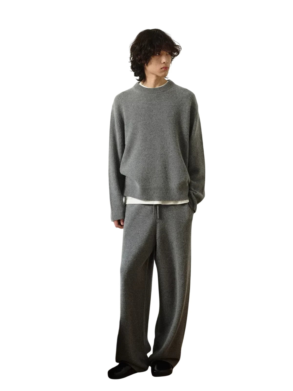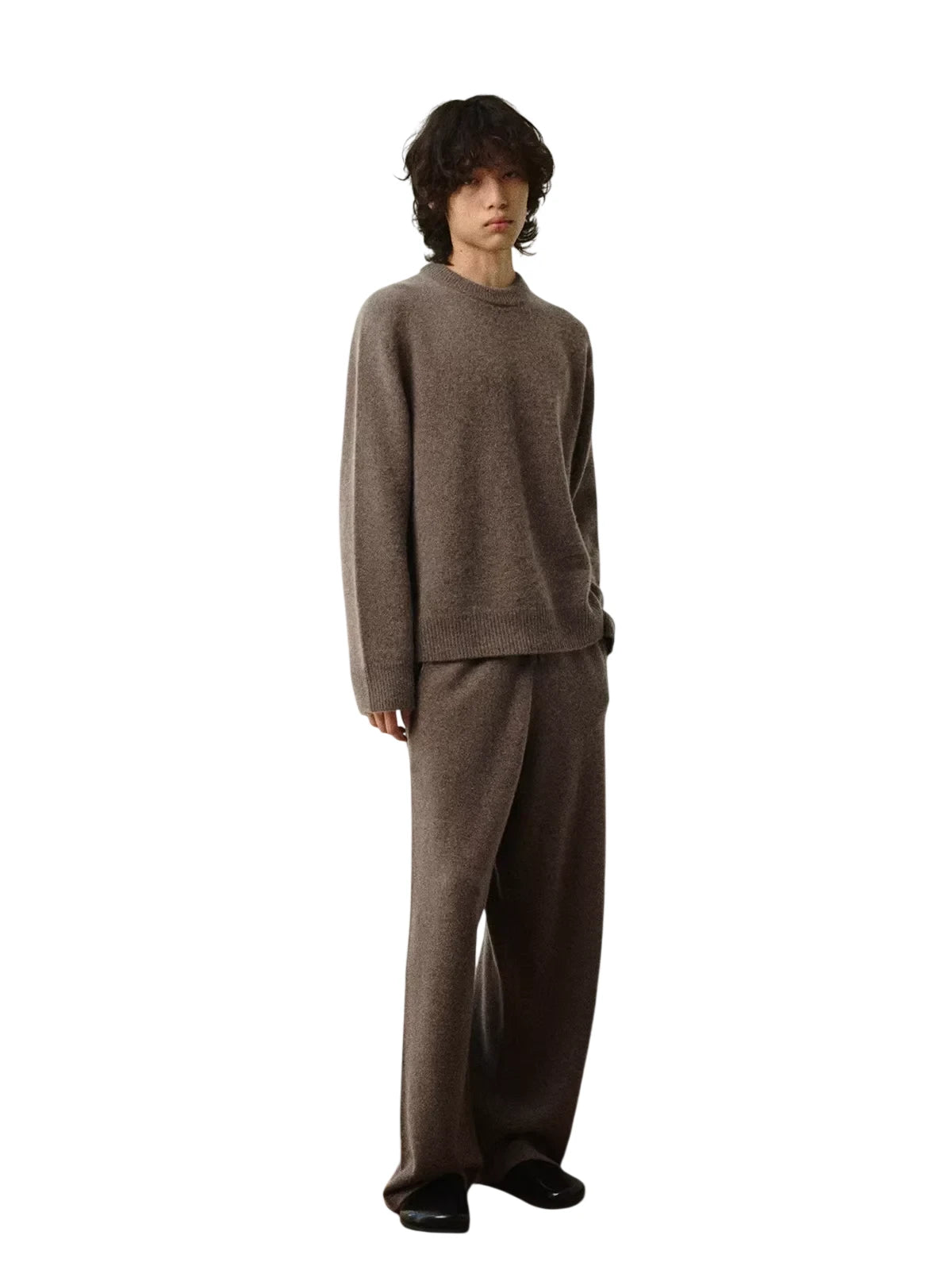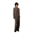 Ideal for layering or wearing on its own, the soft texture and neutral-toned finish make it a versatile addition to your loungewear or casual wardrobe. Paired effortlessly with matching wide-leg knit pants, this sweater embodies understated style and premium comfort.