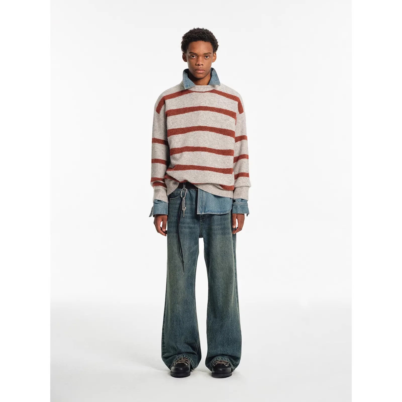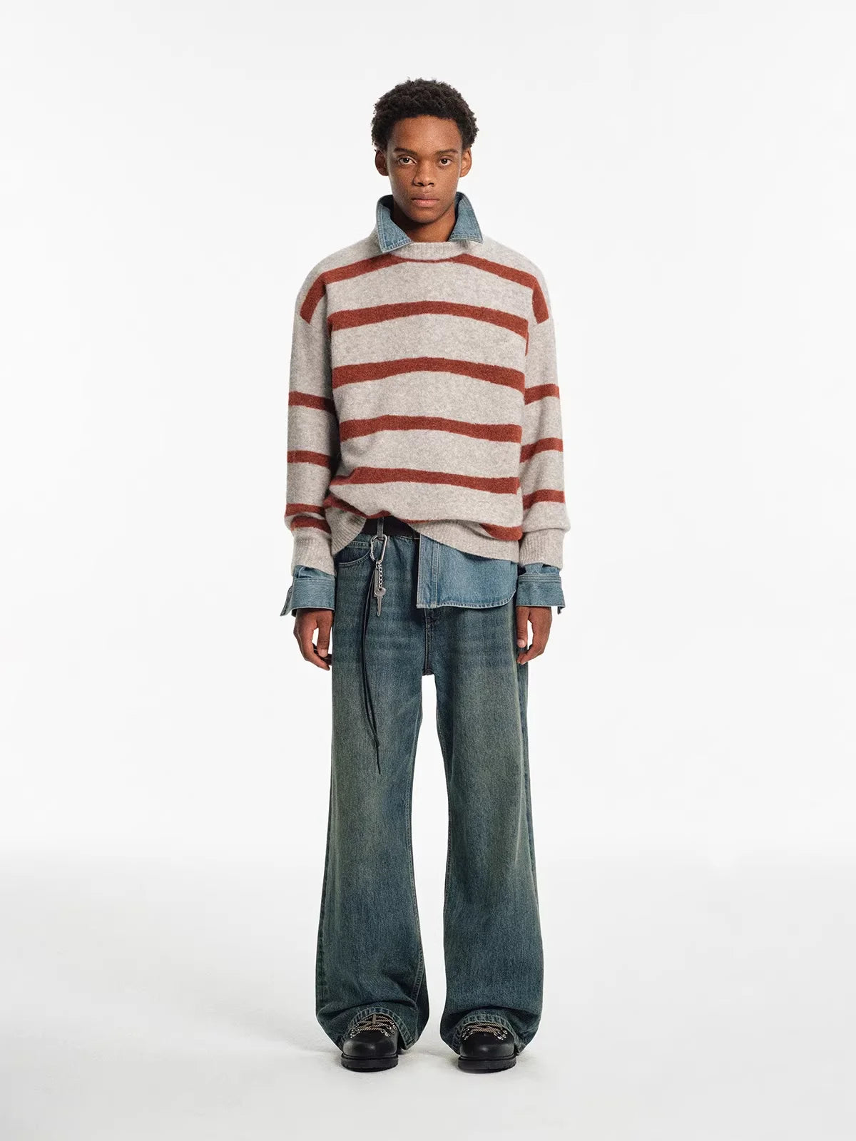 NANS Menswear Alpaca Blend Colorblock Striped Crewneck Sweater