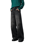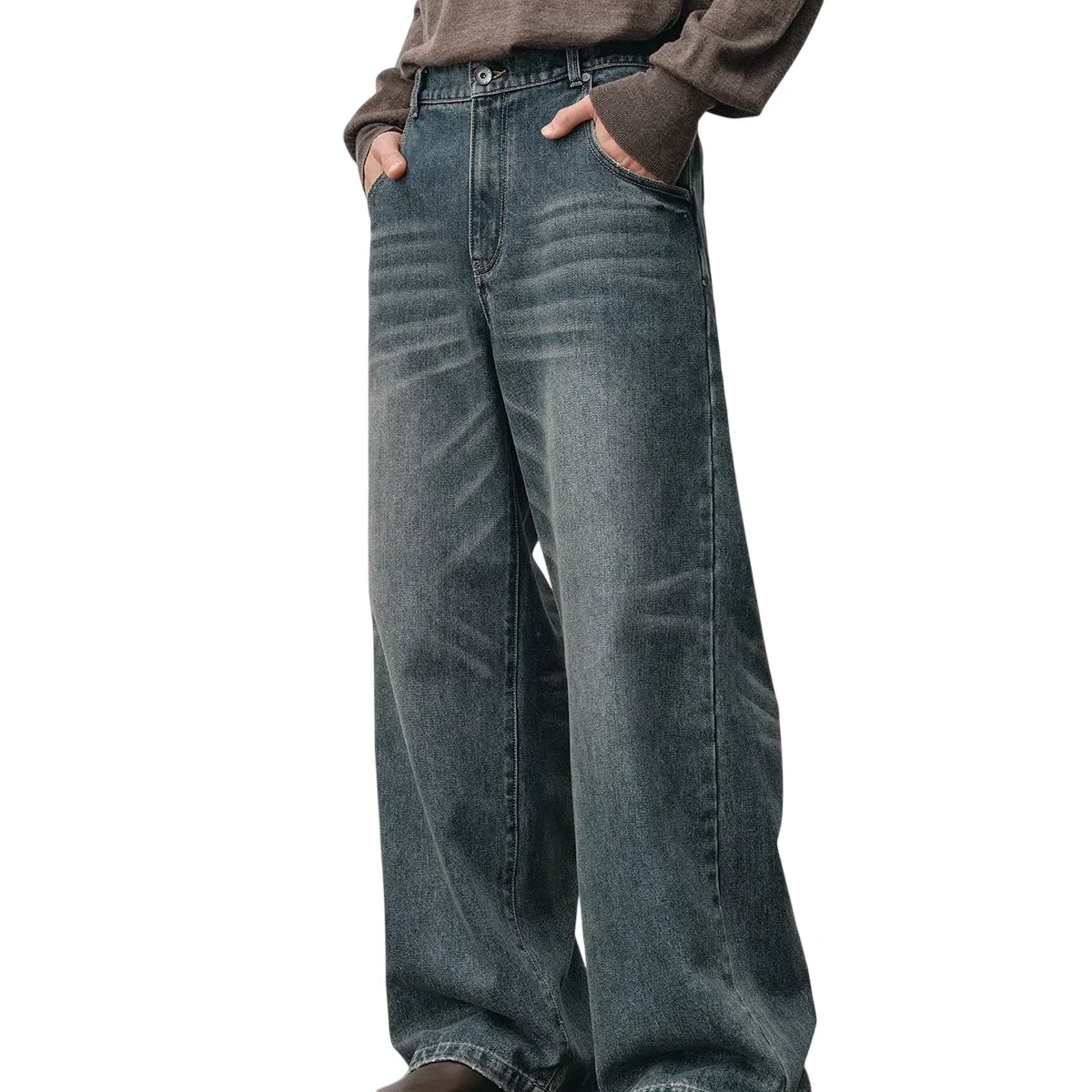 Elevate your casual wardrobe with these distressed straight-leg denim jeans, designed for both comfort and style. Featuring a medium to dark wash with hand-brushed whisker detailing, these jeans offer a relaxed, worn-in look. The classic five-pocket layout and visible front seams lend a timeless appeal, while the secure fly closure ensures ease of wear. Tailored in a loose, wide-leg fit, they are a versatile choice for everyday fashion. Designed for women seeking an effortlessly chic silhouette.