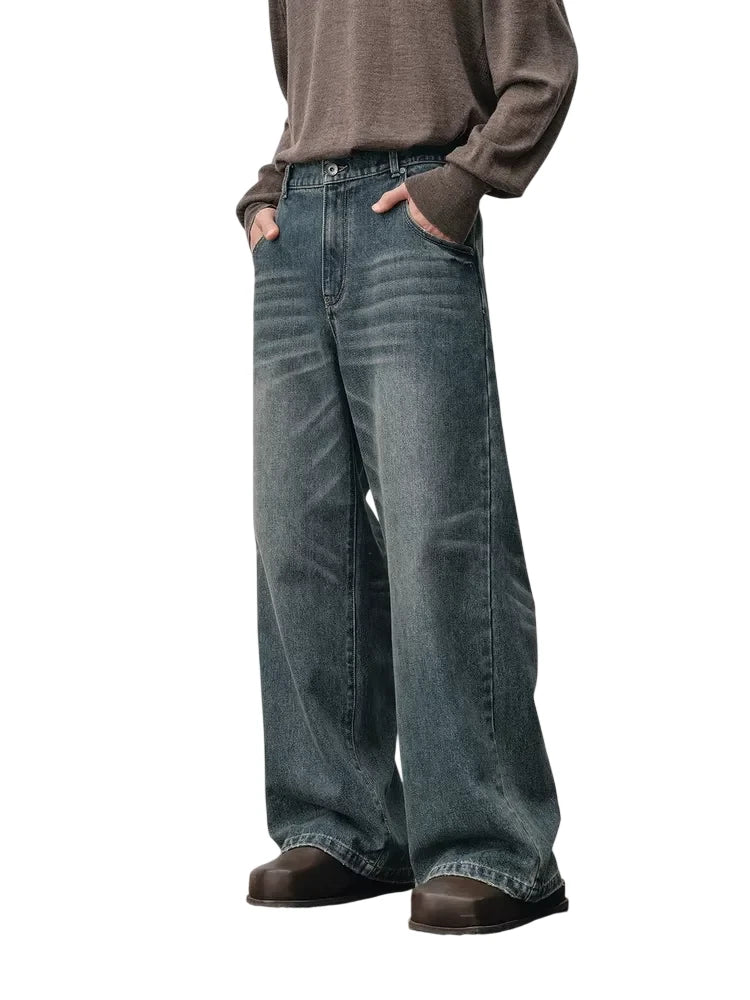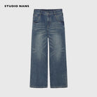 NANS Menswear Distressed Straight-Leg Denim Jeans with Whisker Wash