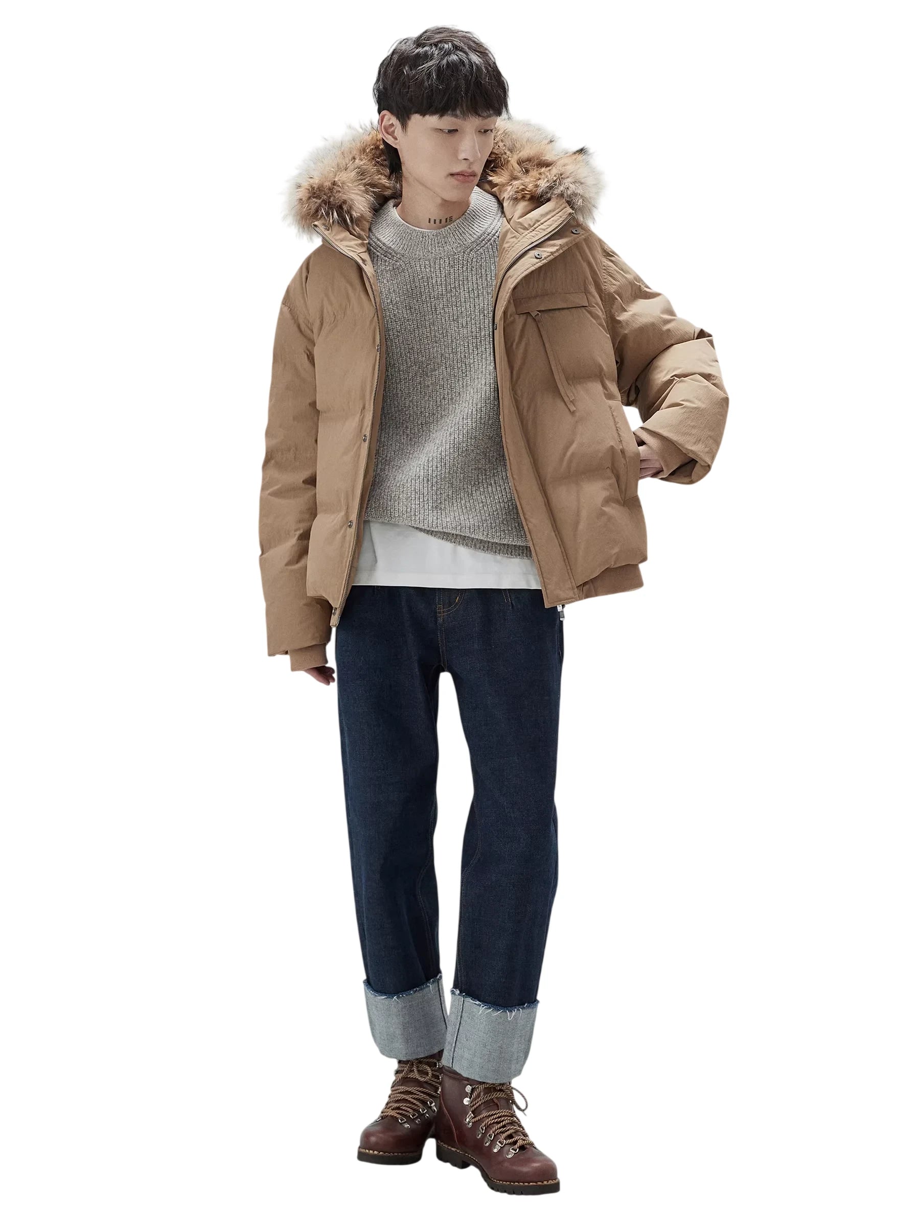 This men's heavyweight crewneck sweater is crafted from extra fine merino wool in a soft mélange knit, offering exceptional warmth and texture. Designed with a relaxed oversized silhouette, it features wide sleeves, slightly dropped shoulders, ribbed cuffs, and a ribbed hem. Ideal for autumn and winter layering, this sweater pairs effortlessly with casual staples like denim for a refined yet laid-back look.