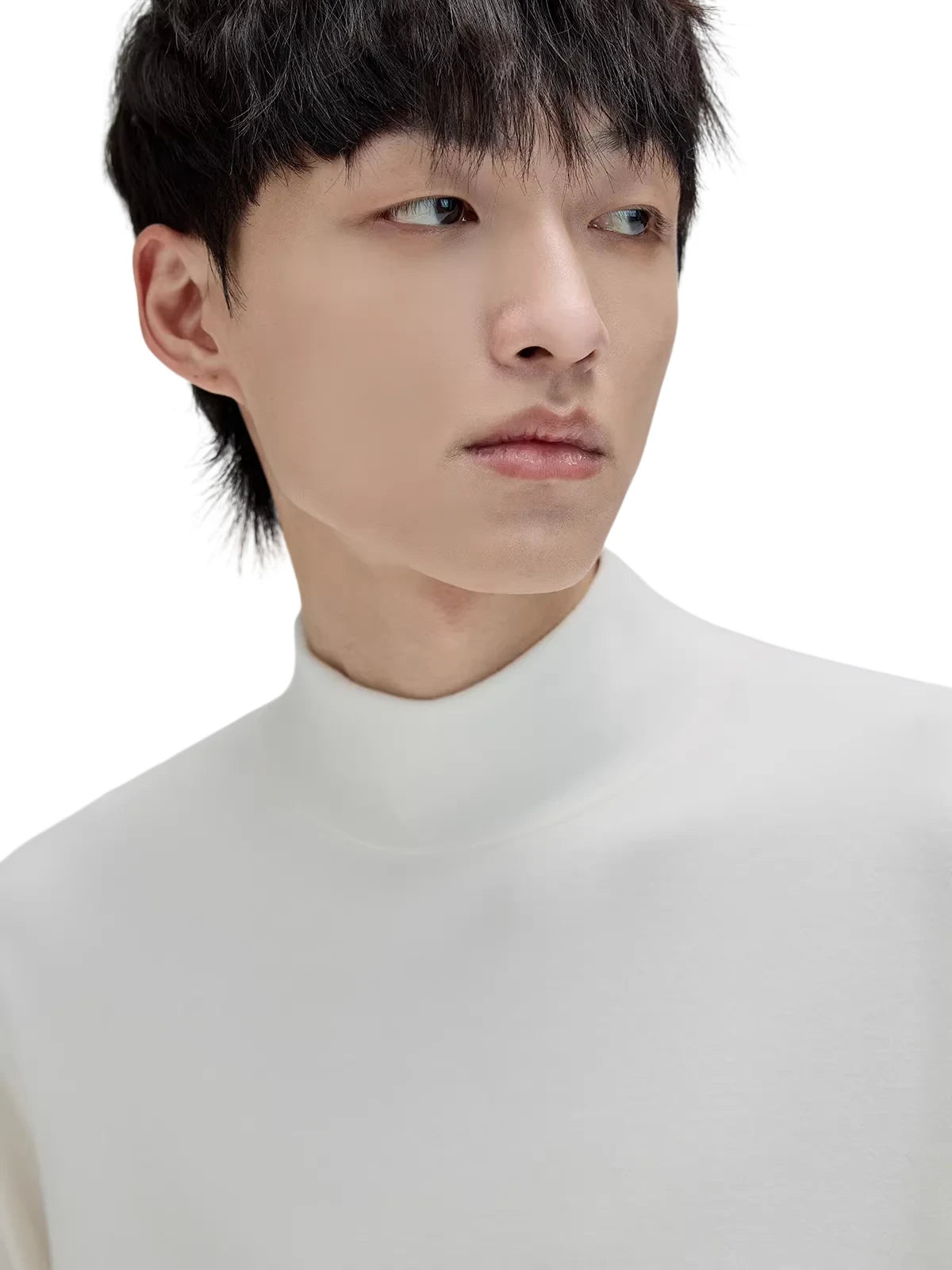 Stay warm and comfortable with this men's long sleeve tee, crafted from a soft acrylic fiber blend. Featuring a double-sided warm fleece construction and a foldable turtleneck design, this lightweight yet insulating top is ideal for layering during colder months. The basic and minimalistic look makes it a versatile addition to any wardrobe.
