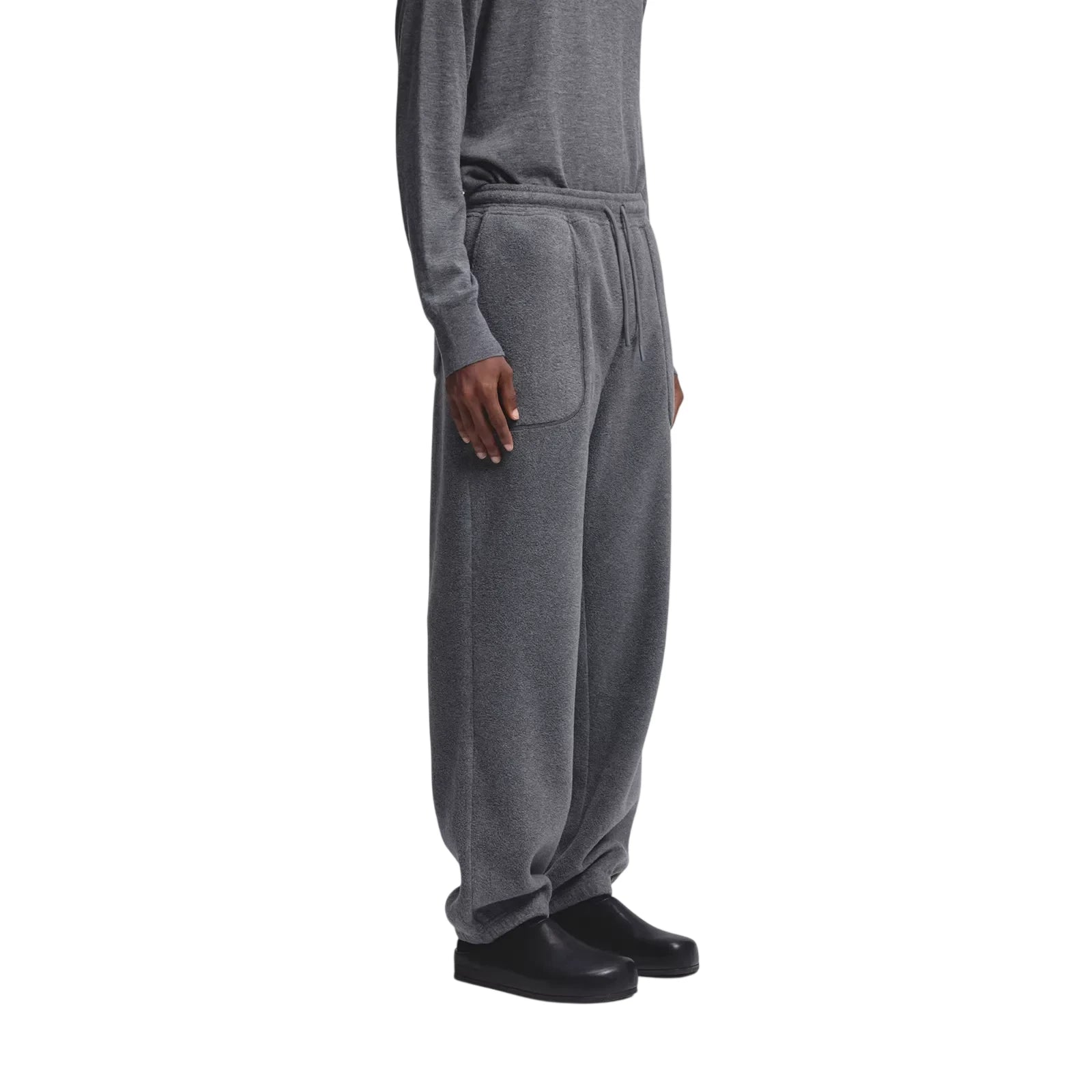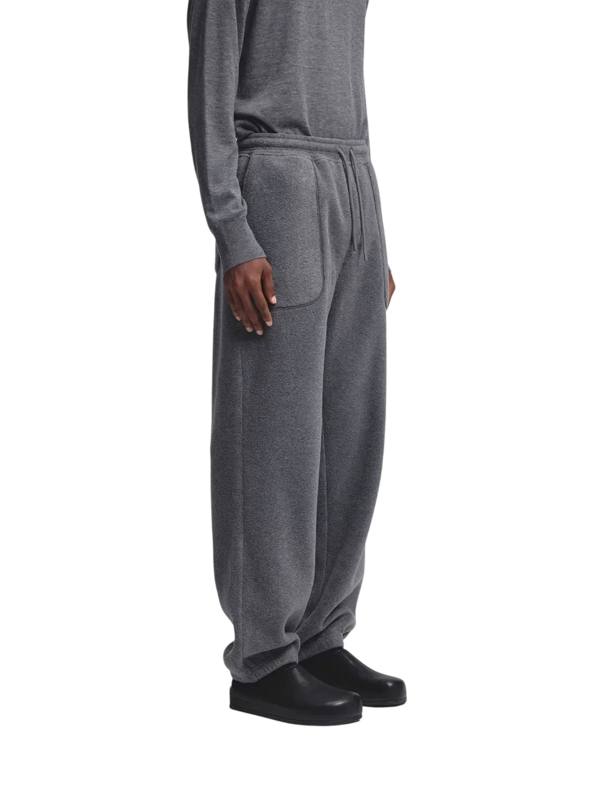 Stay comfortable and stylish with these men's fleece sweatpants featuring a cozy double-sided fabric construction. Designed for relaxed everyday wear, they offer a loose fit with a straight-leg cut and cuffed hems for a casual aesthetic. Functional elements include a drawstring elastic waistband for customized comfort and two large front patch pockets. Ideal for lounging or weekend outings, these quilted sweatpants deliver warmth and laid-back appeal.