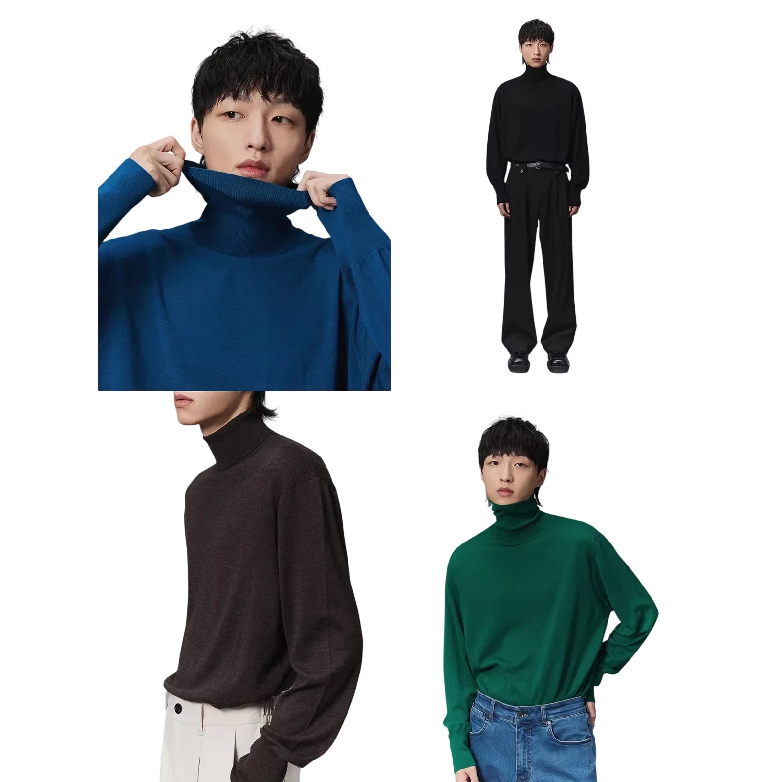 NANS Menswear Merino Wool Lightweight Turtleneck Base Layer