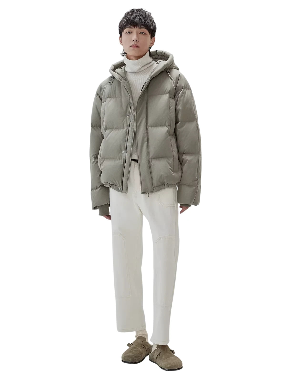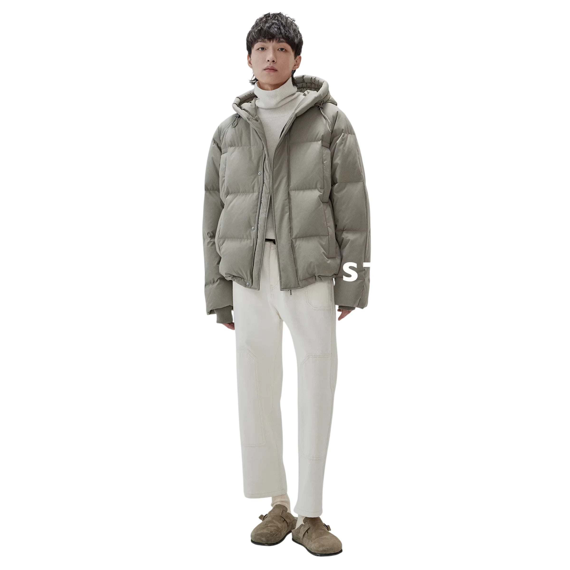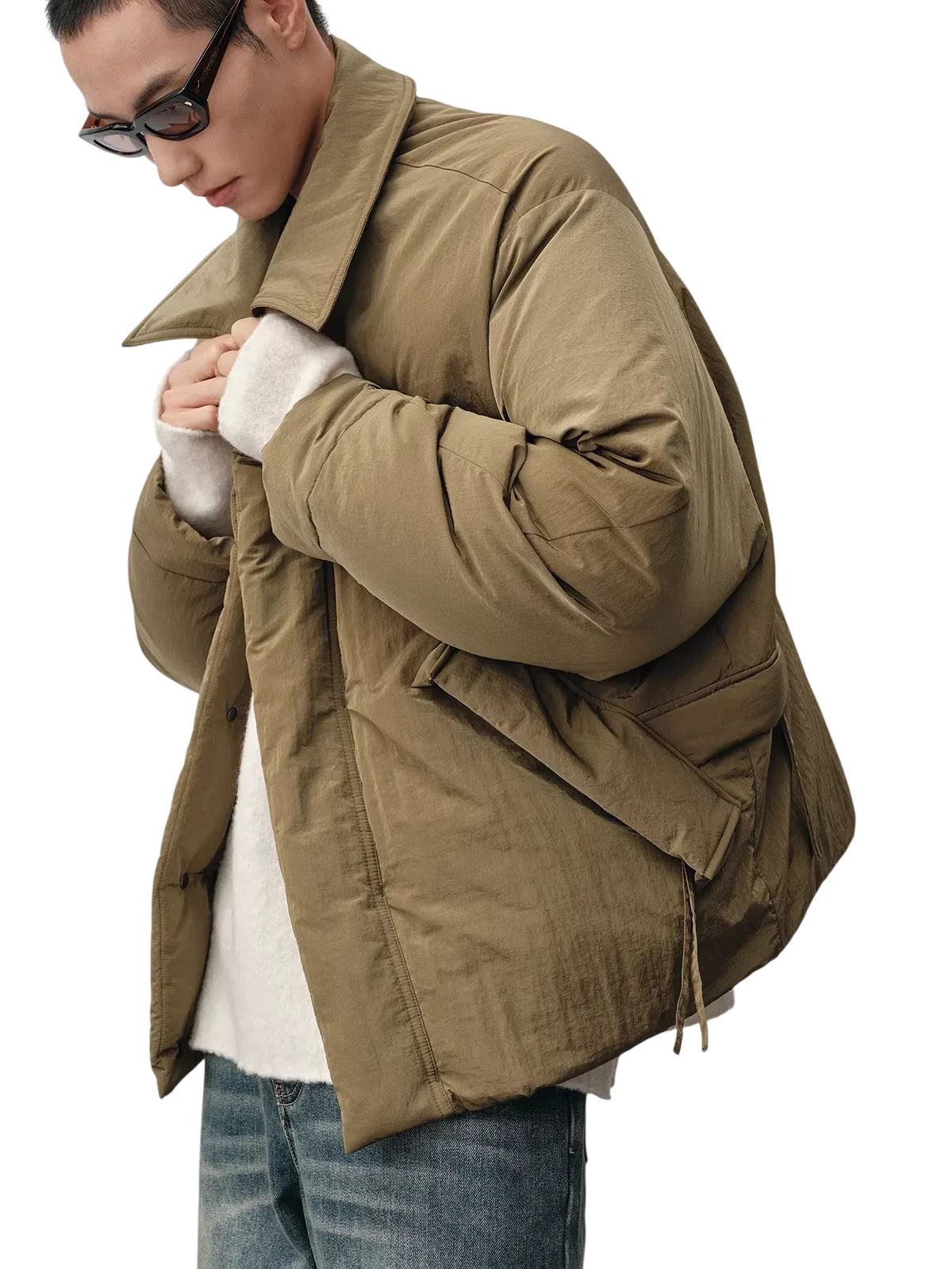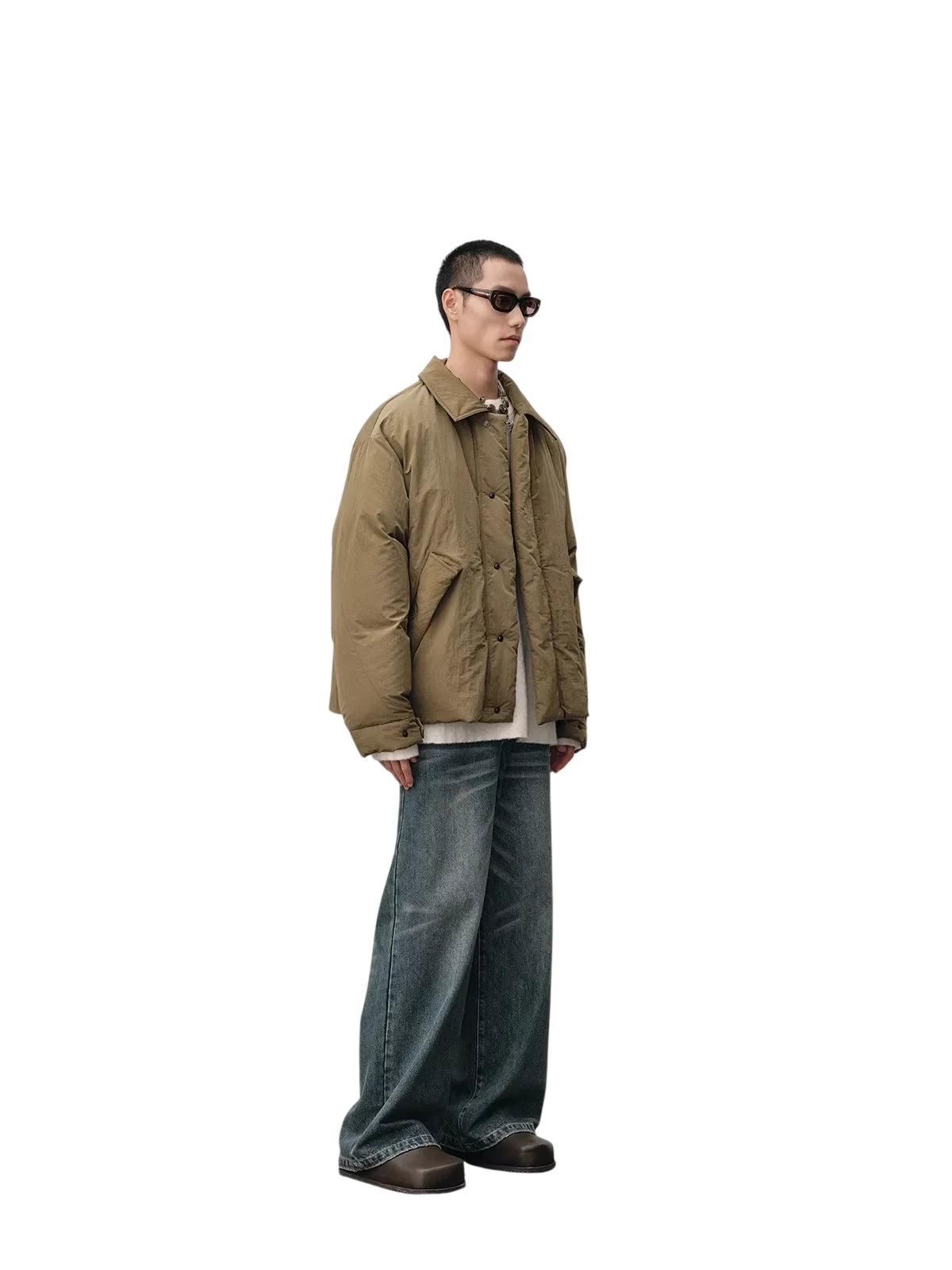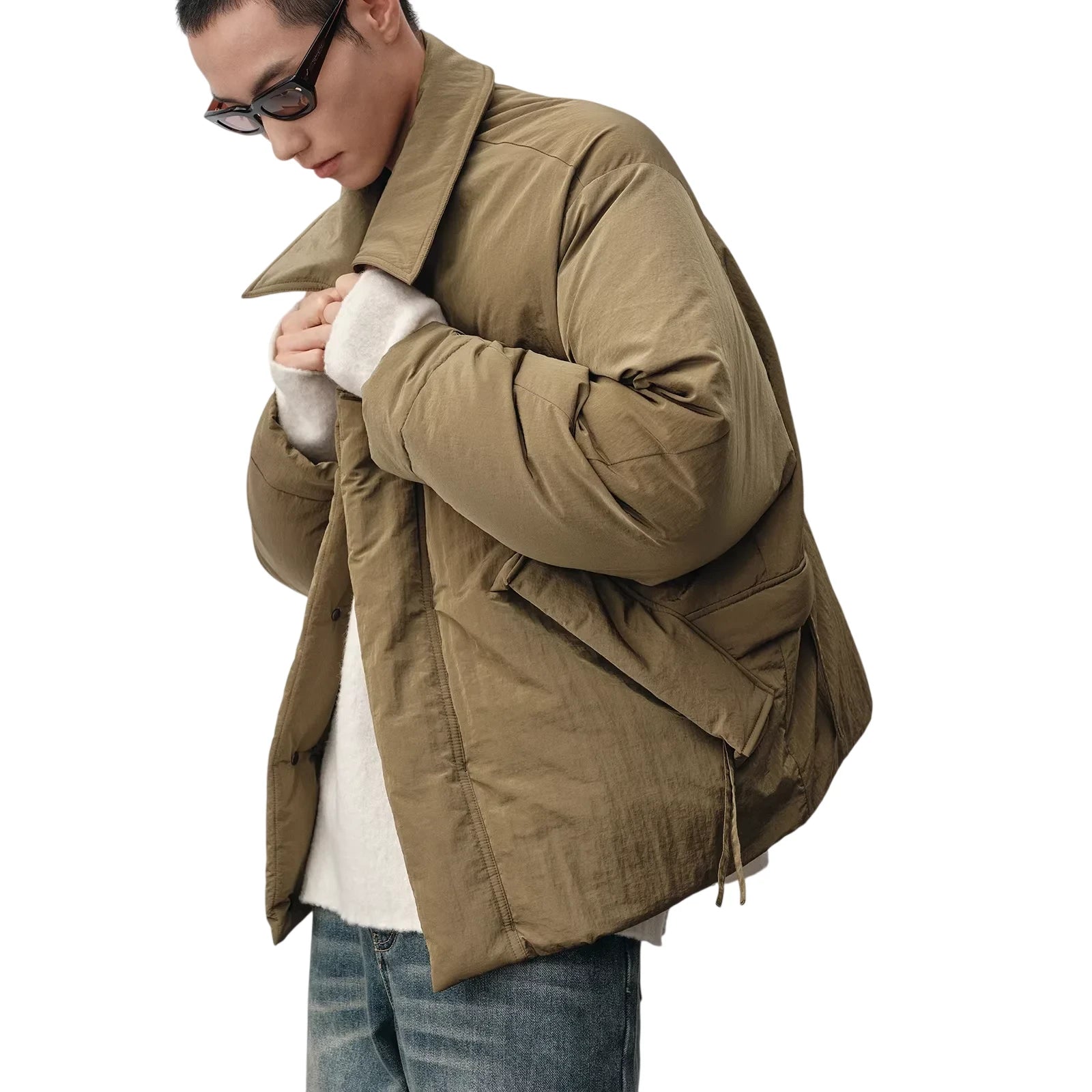NANS Menswear Heavyweight Kimono-Style Down Jacket with Magnetic Placket and Thumbholes
