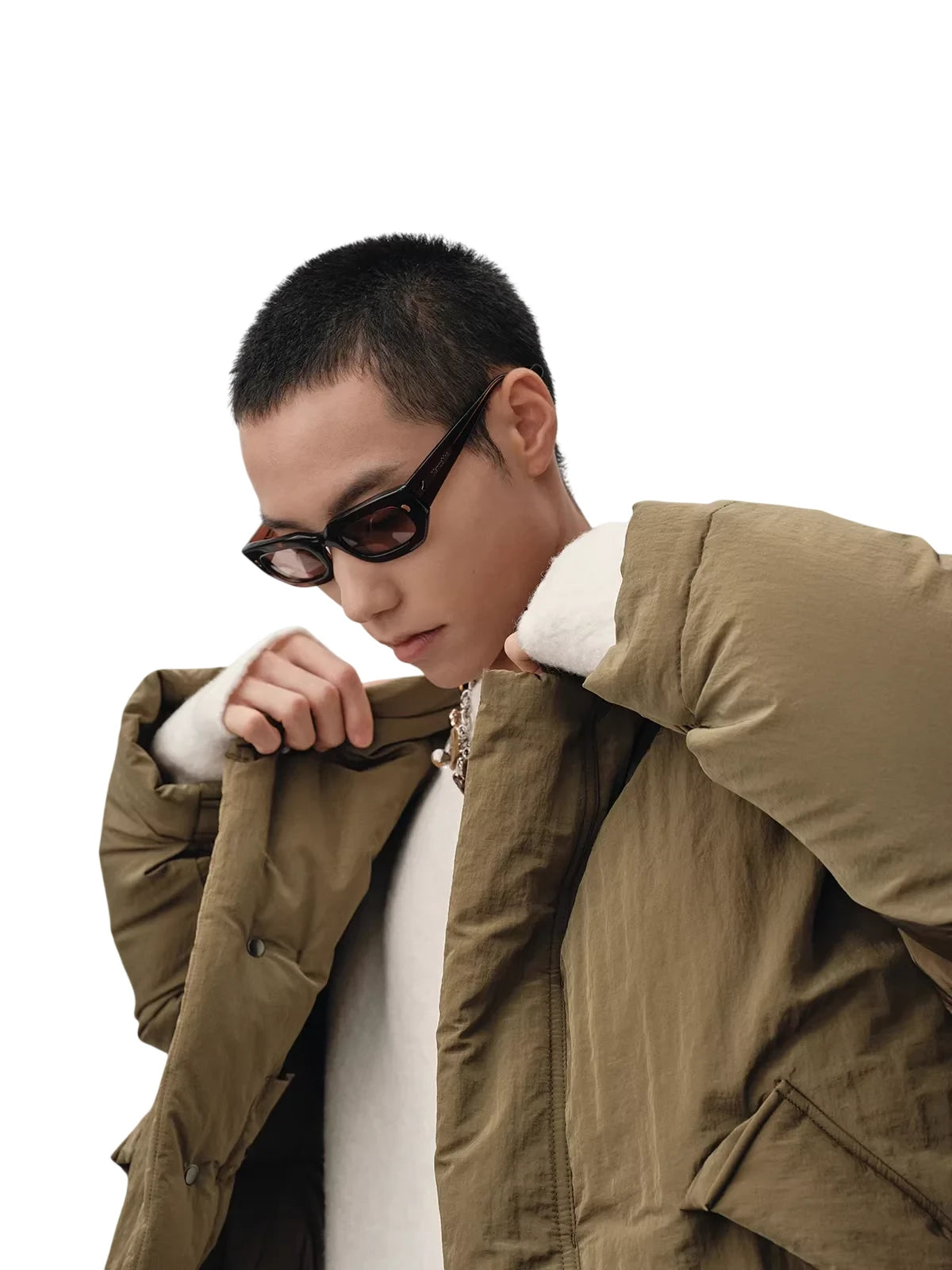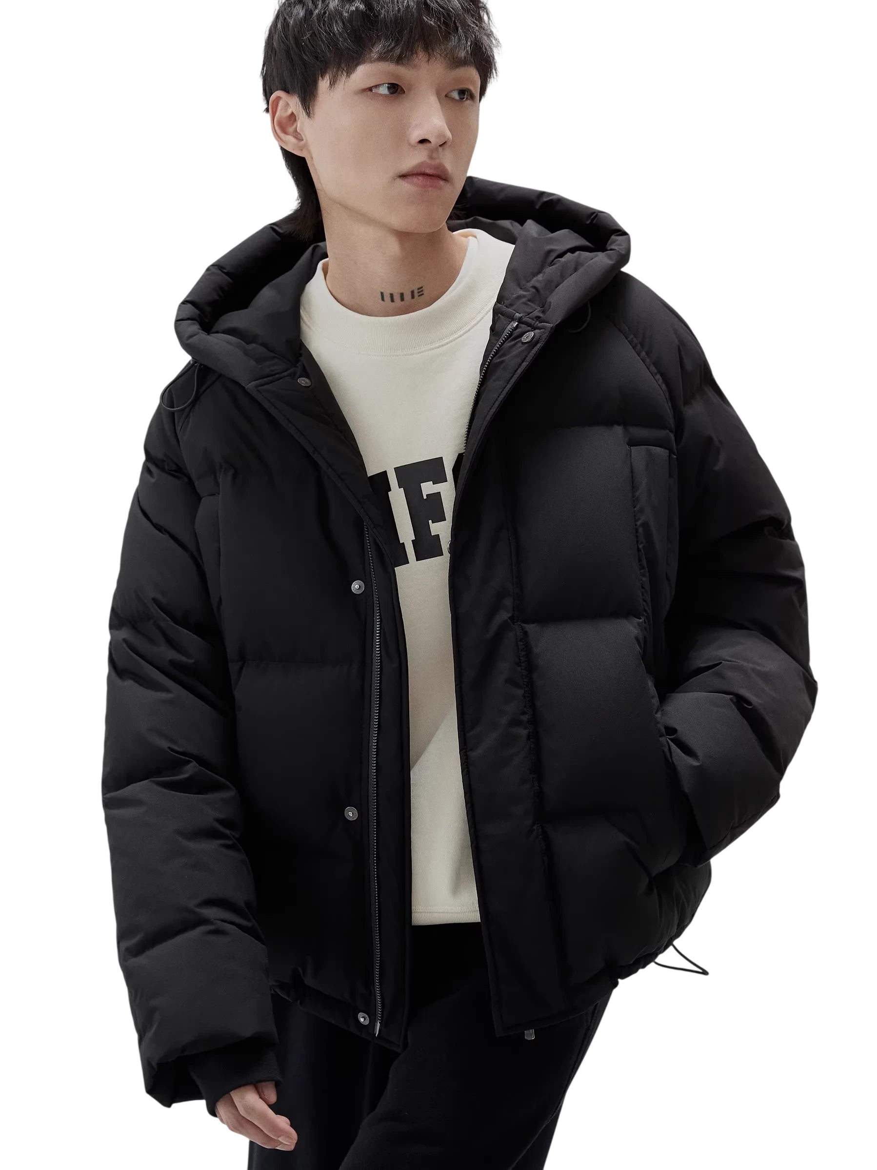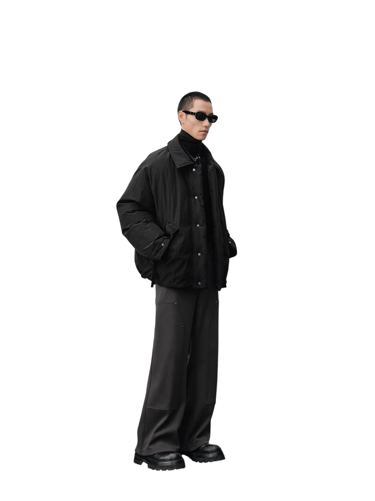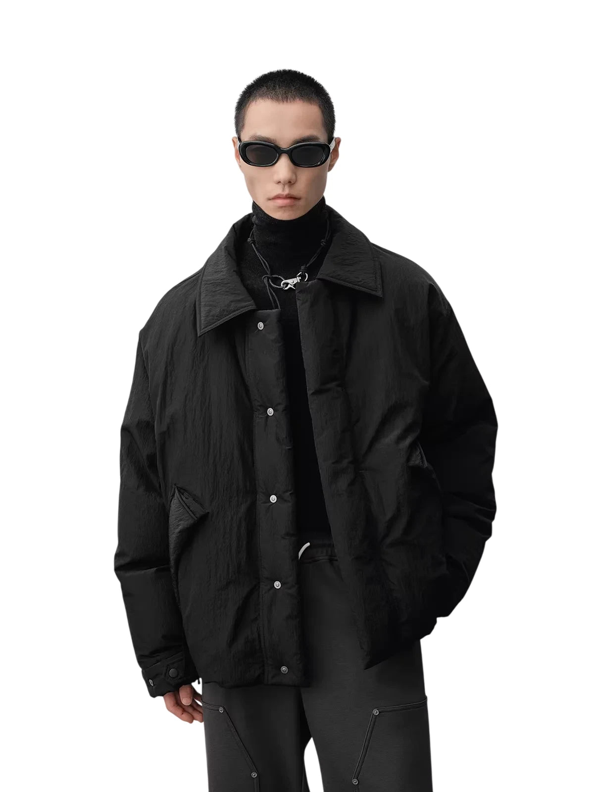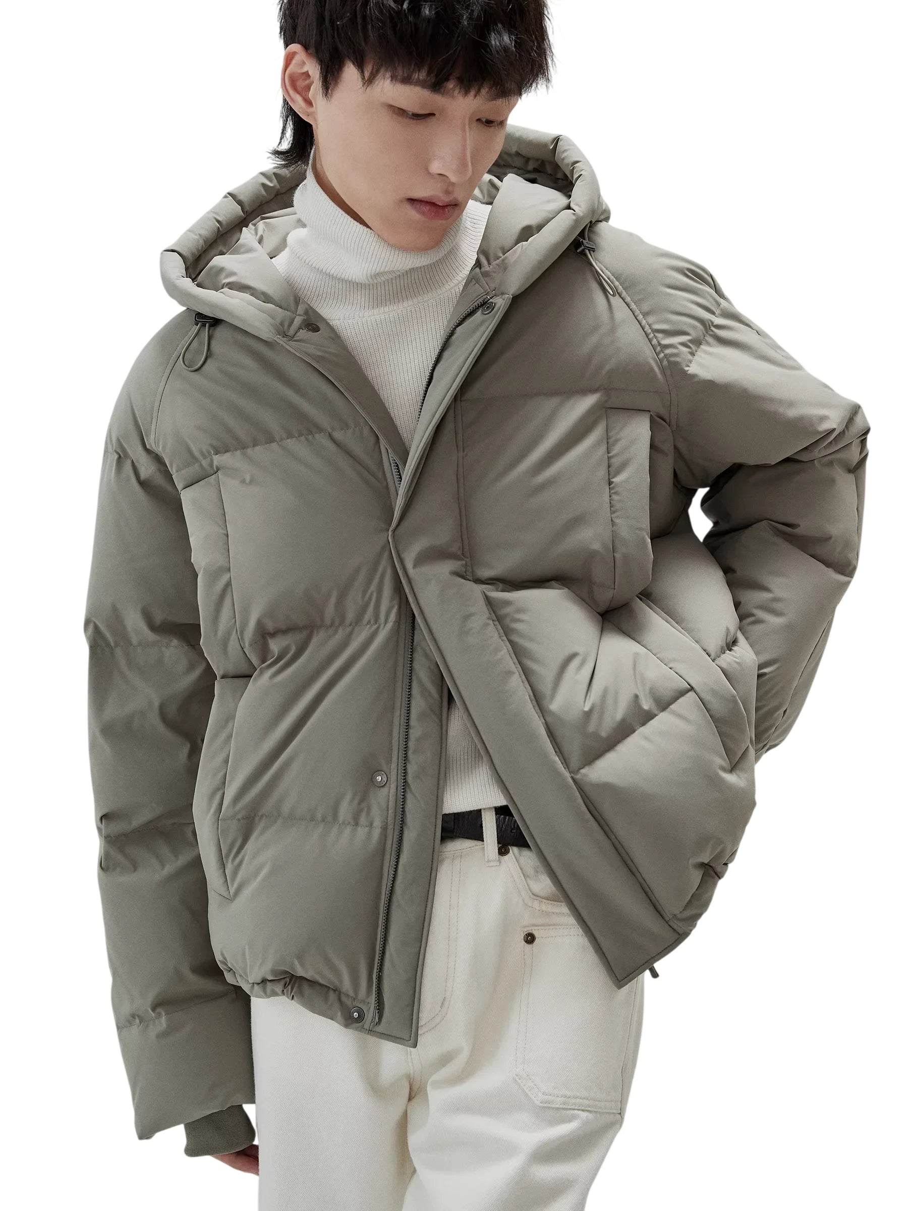 NANS Menswear Heavyweight Kimono-Style Down Jacket with Magnetic Placket and Thumbholes