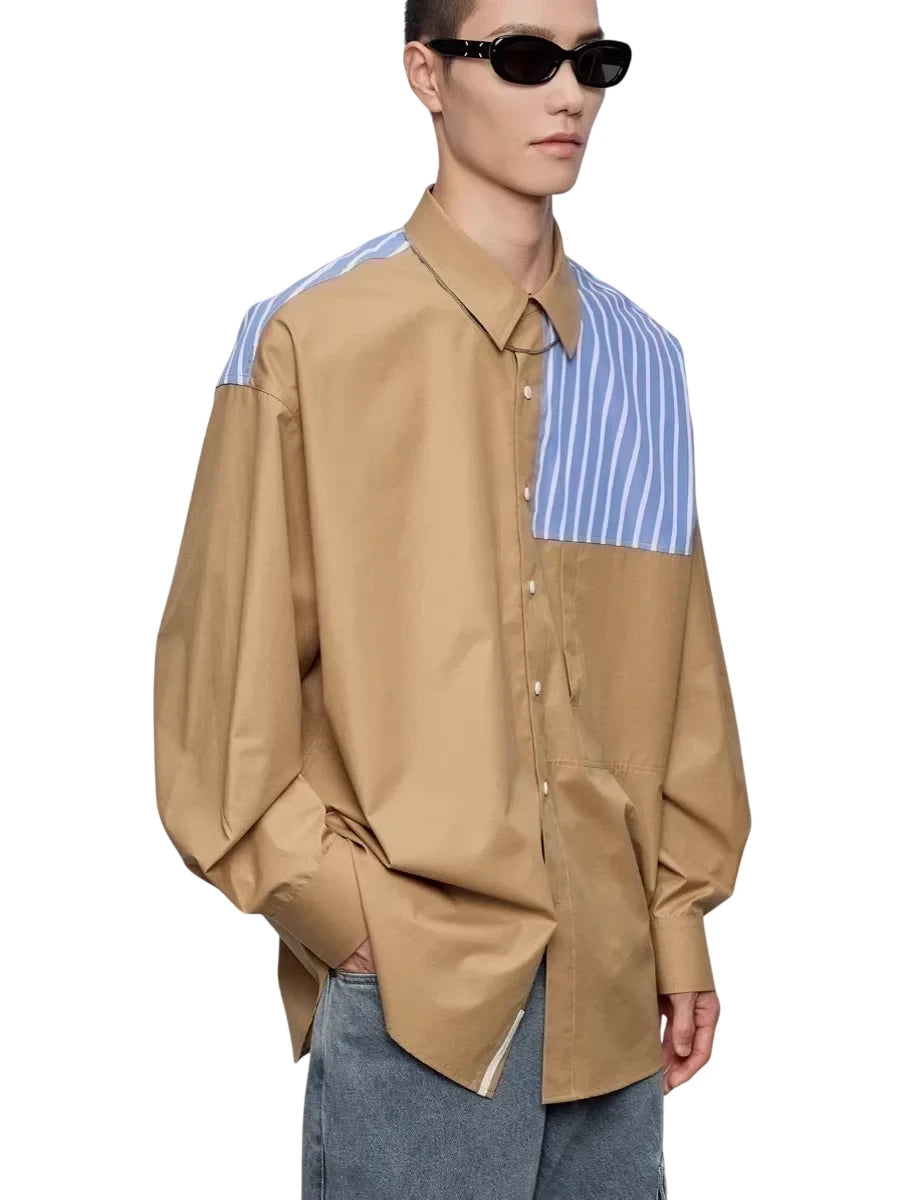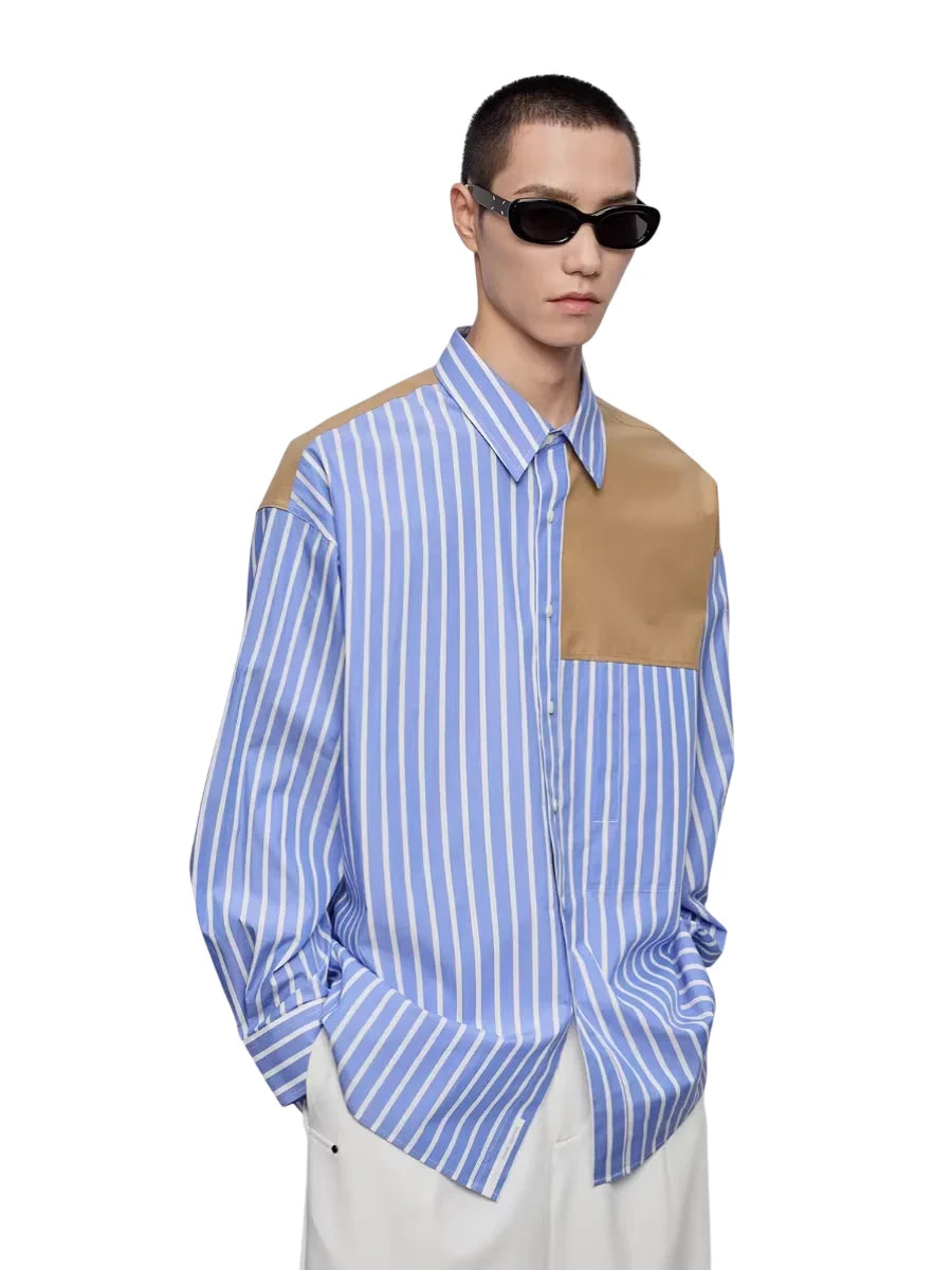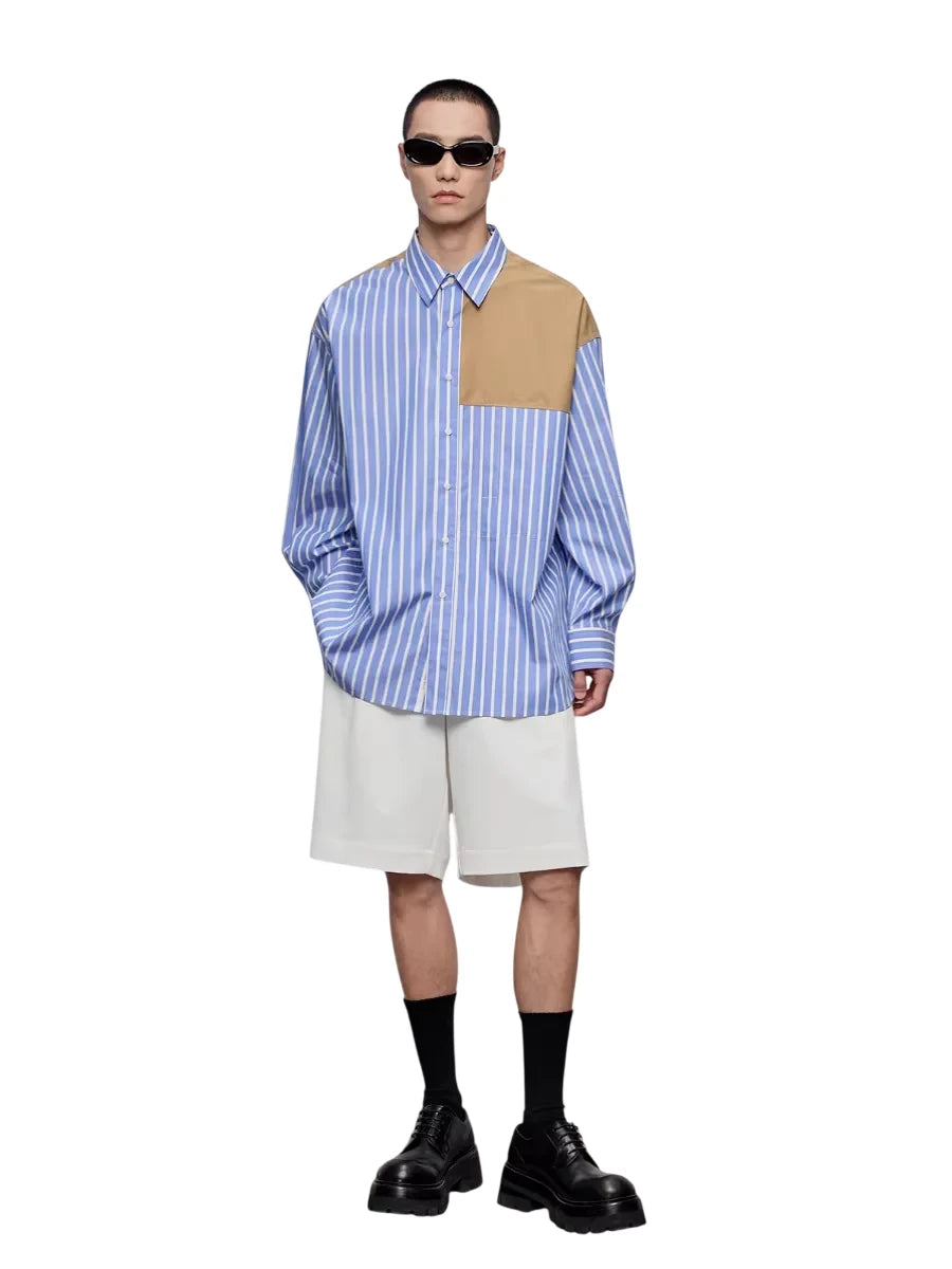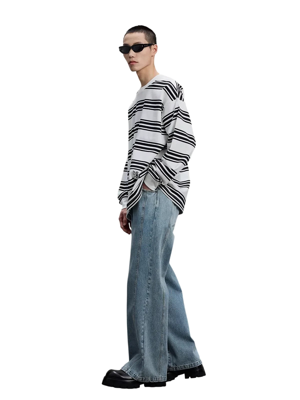 NANS Menswear Men's Striped Textured Slouchy Collar Long Sleeve Tee
