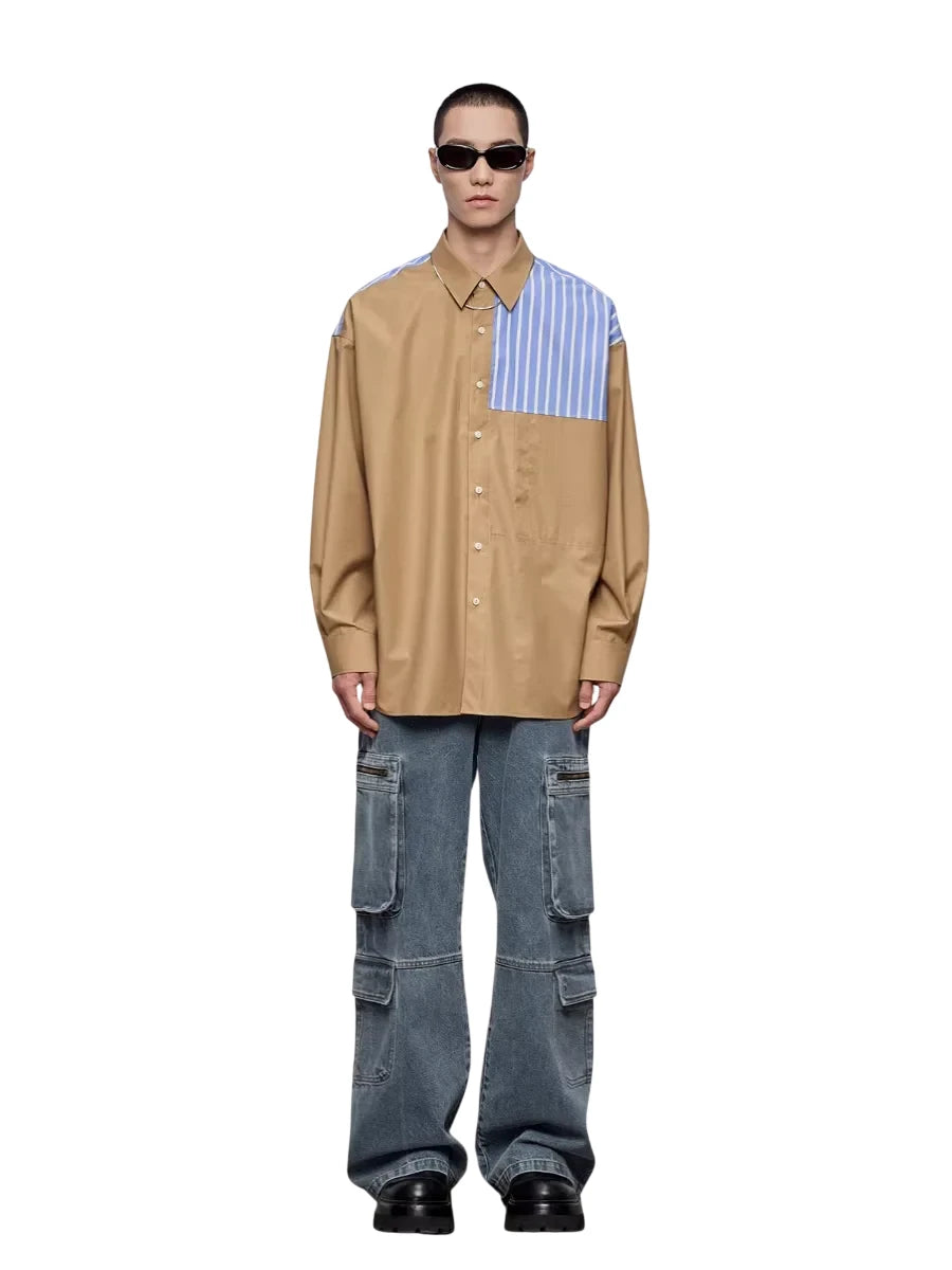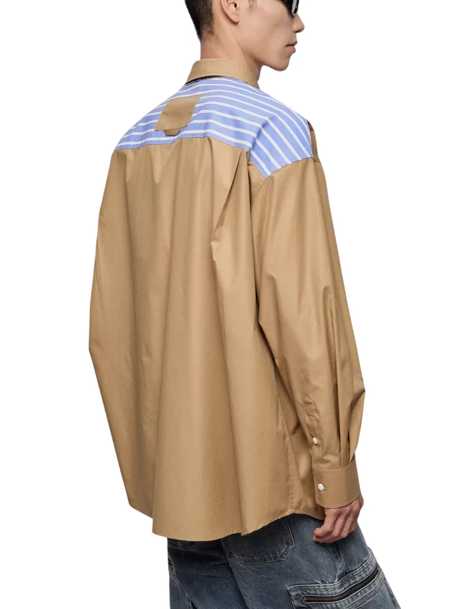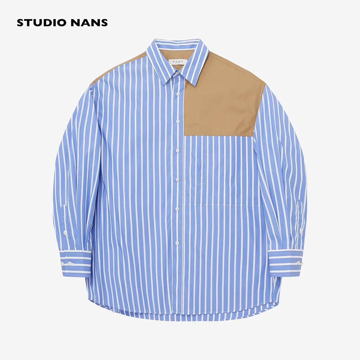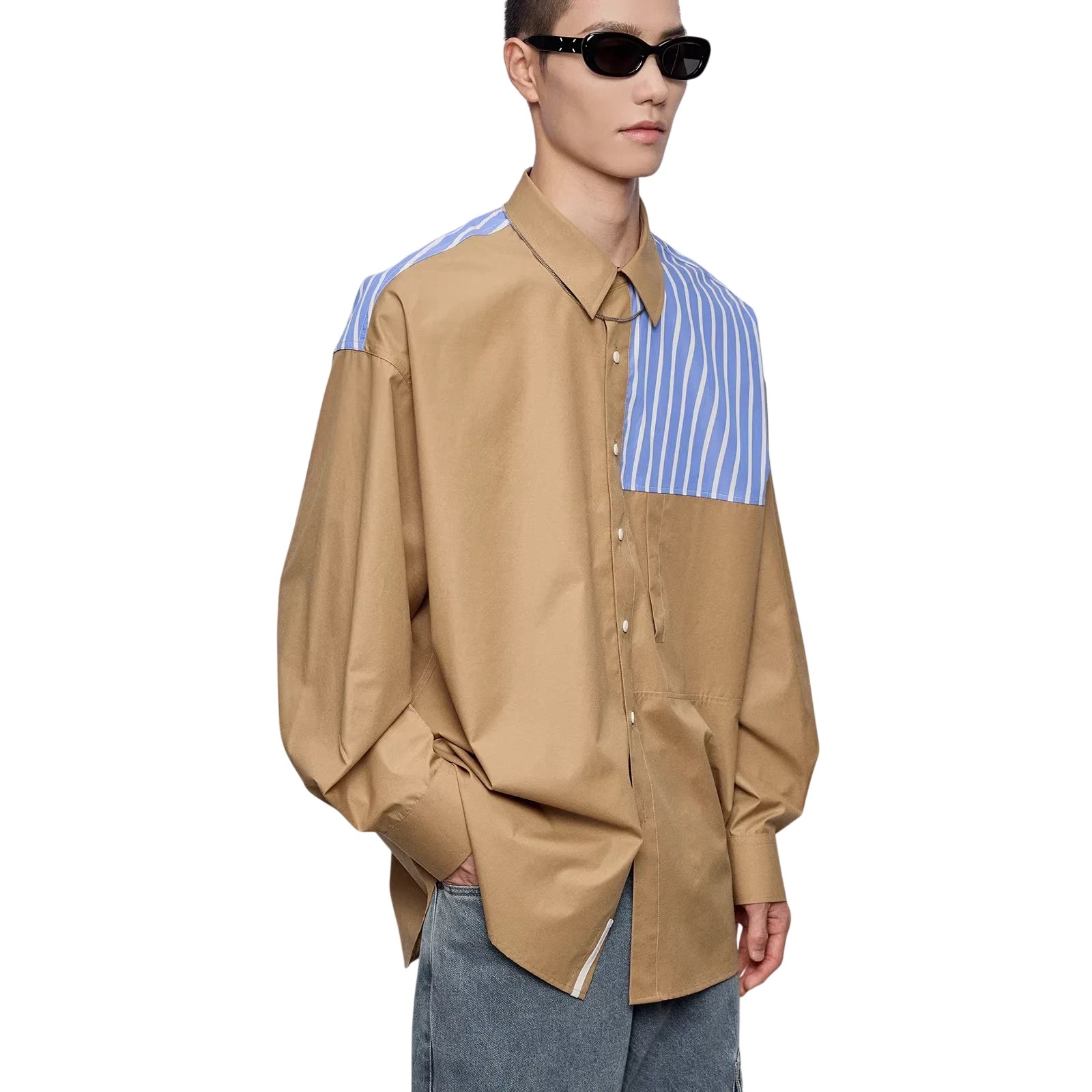 NANS Menswear Men's Striped Textured Slouchy Collar Long Sleeve Tee