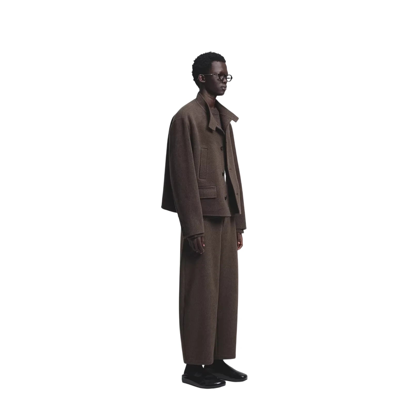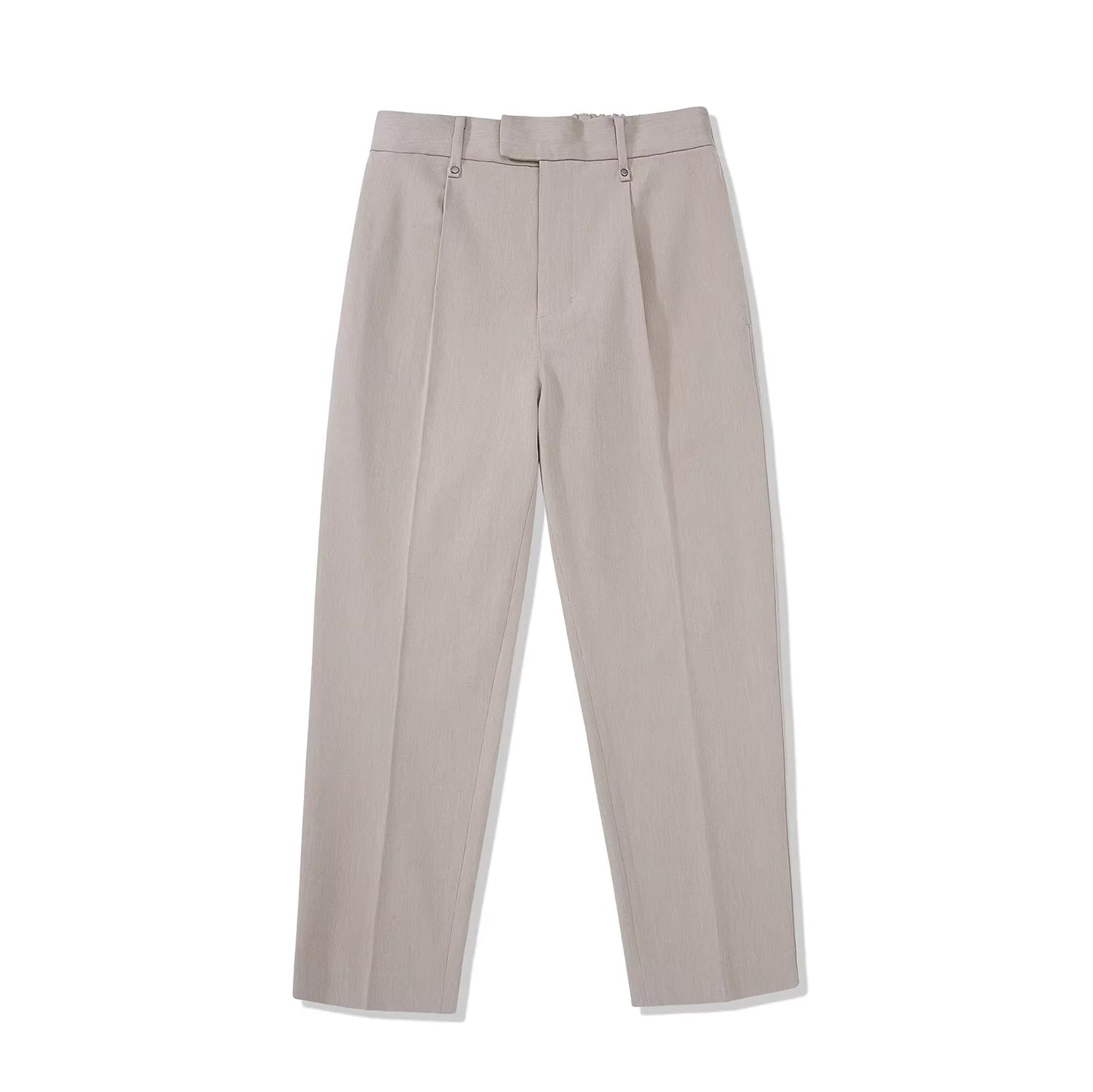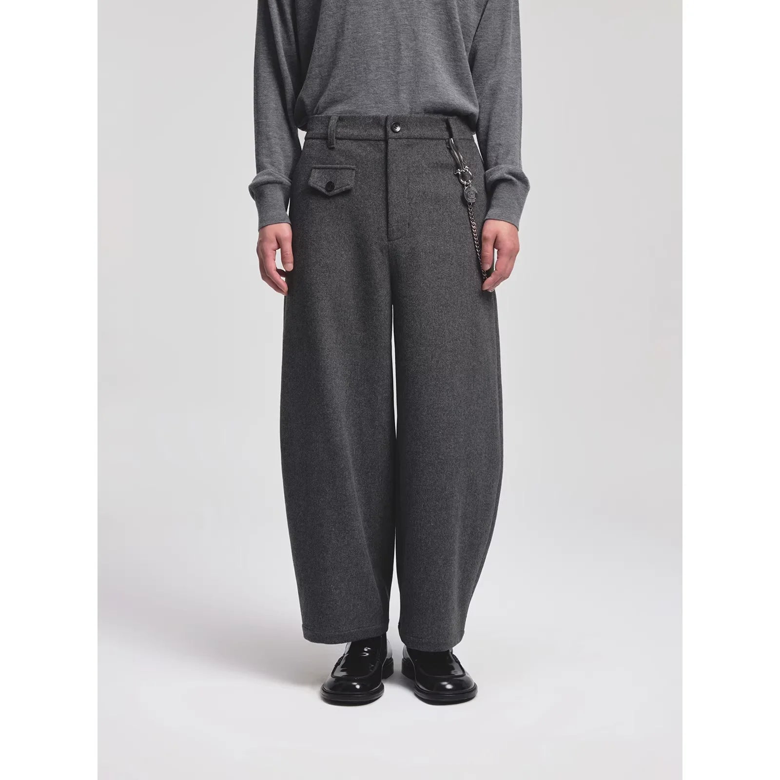 NANS Menswear Men's Wool Blend Curved-Leg Trousers with Flap Pocket