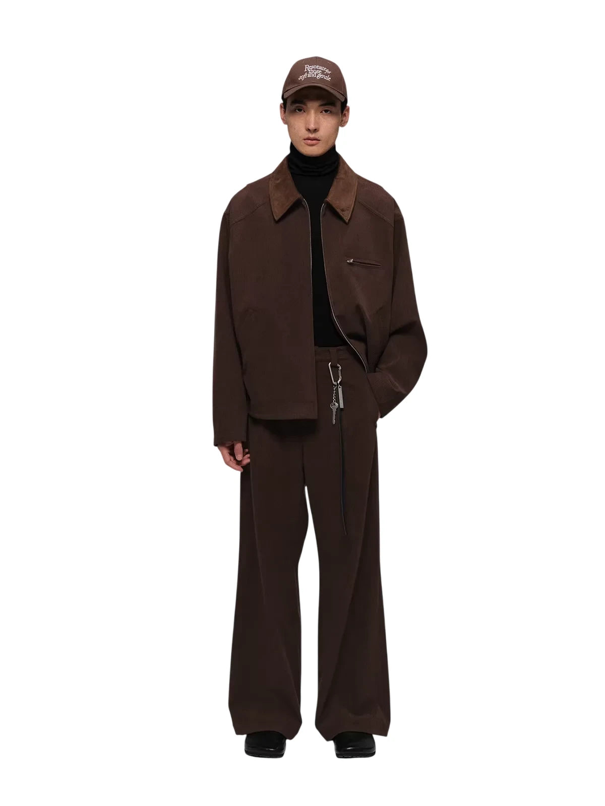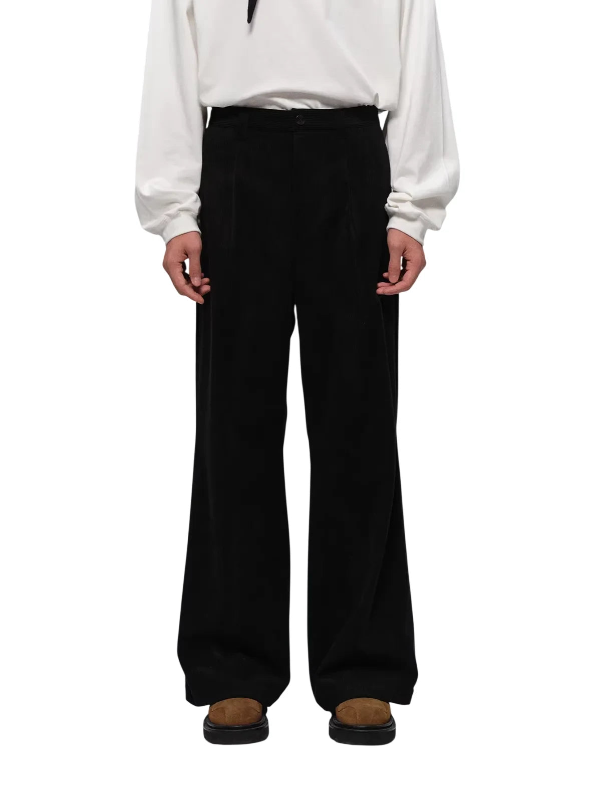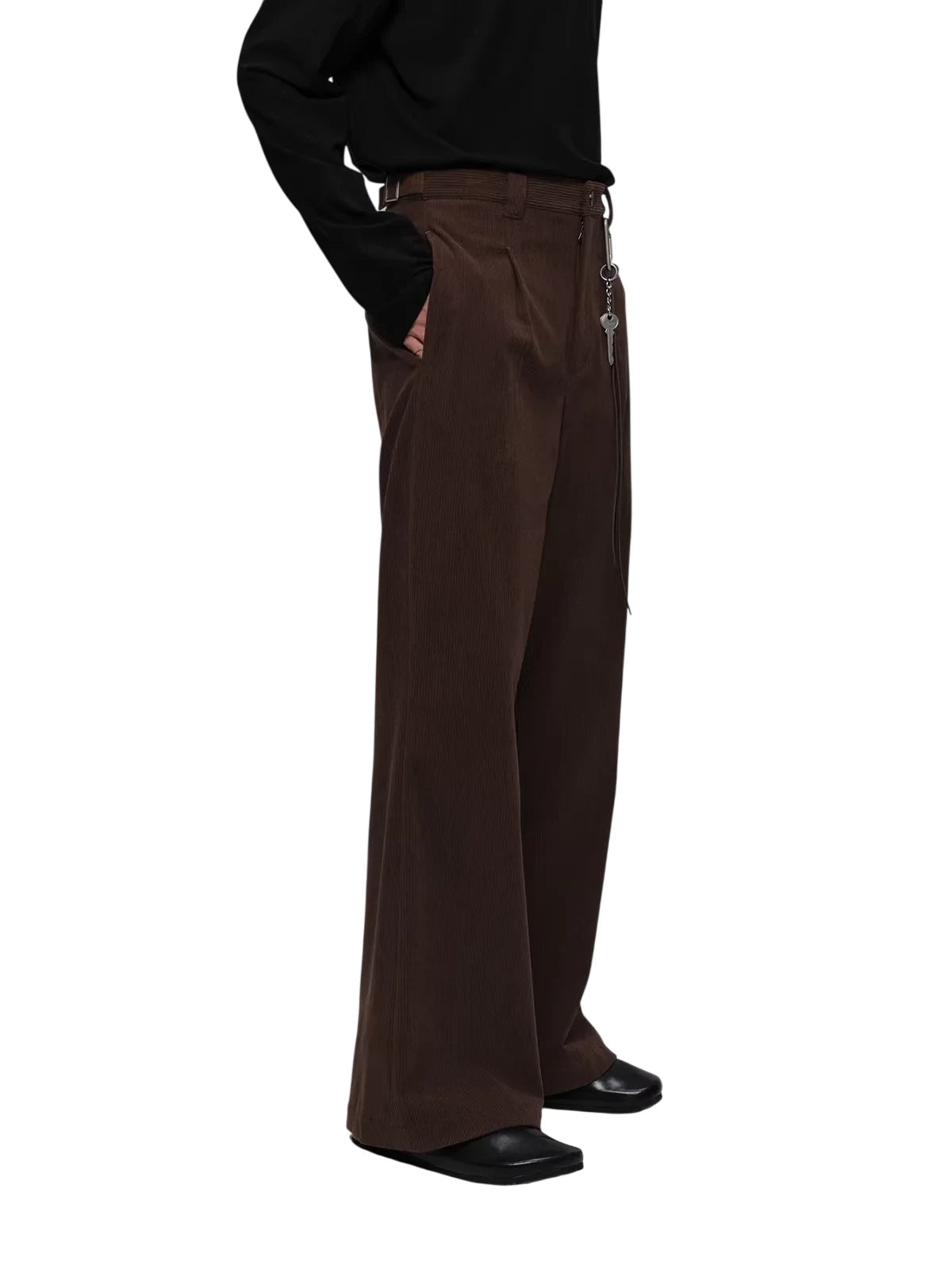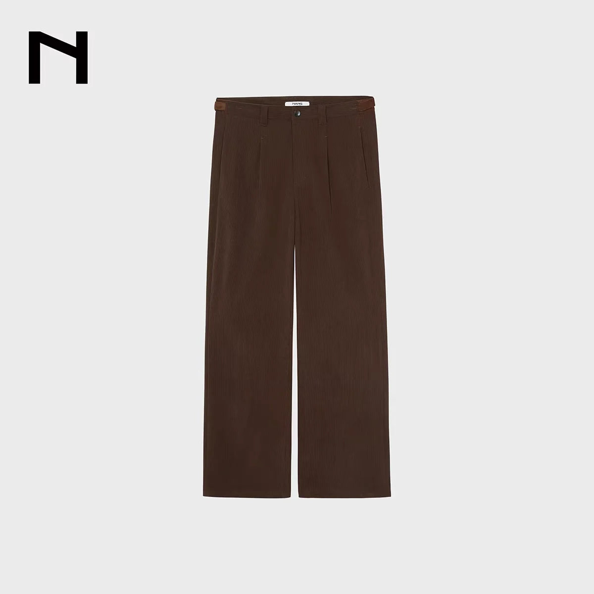 NANS Menswear Men's Wool Blend Curved-Leg Trousers with Flap Pocket