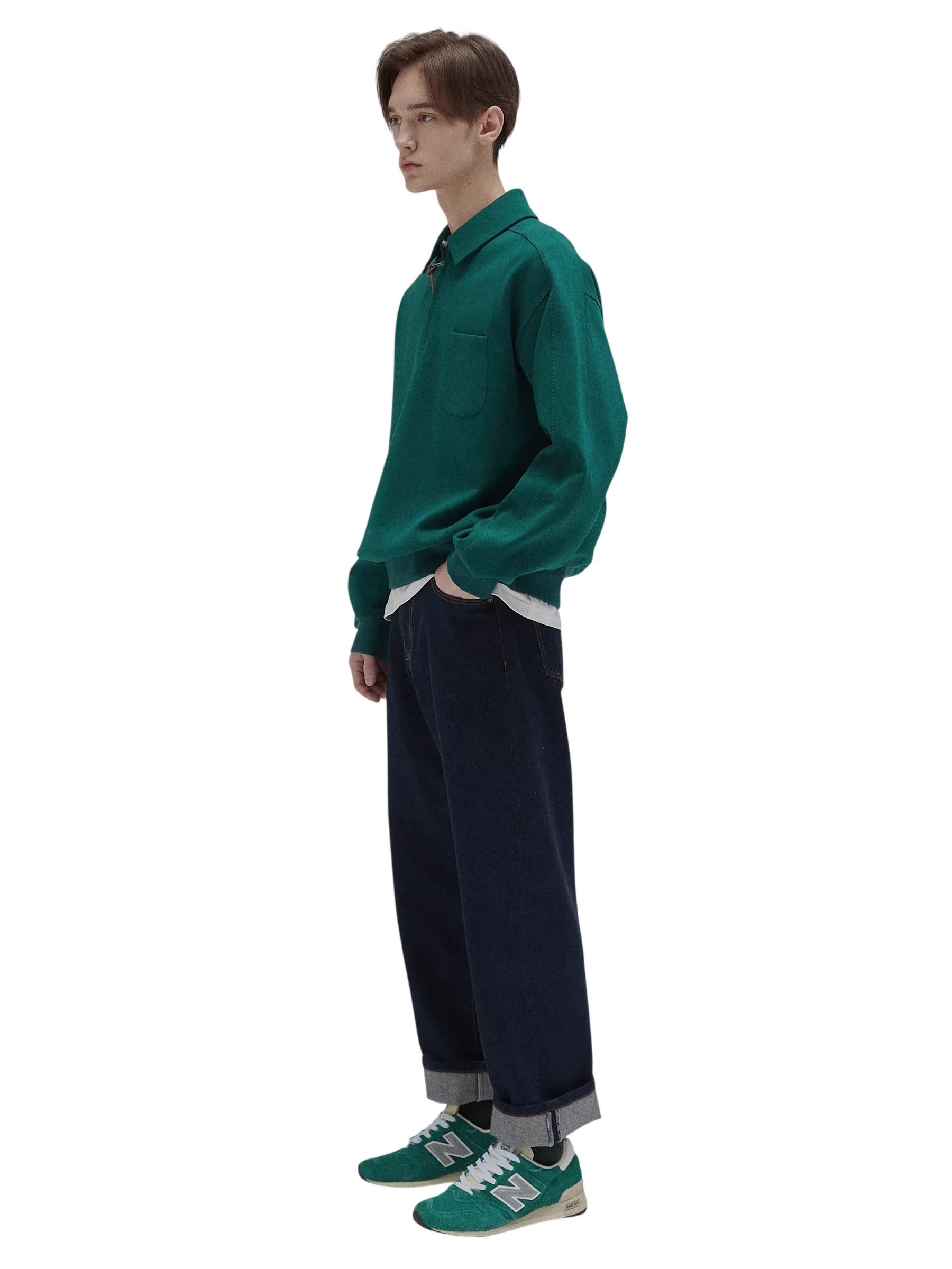 NANS Menswear Heavyweight Zip Polo Sweatshirt with Pocket