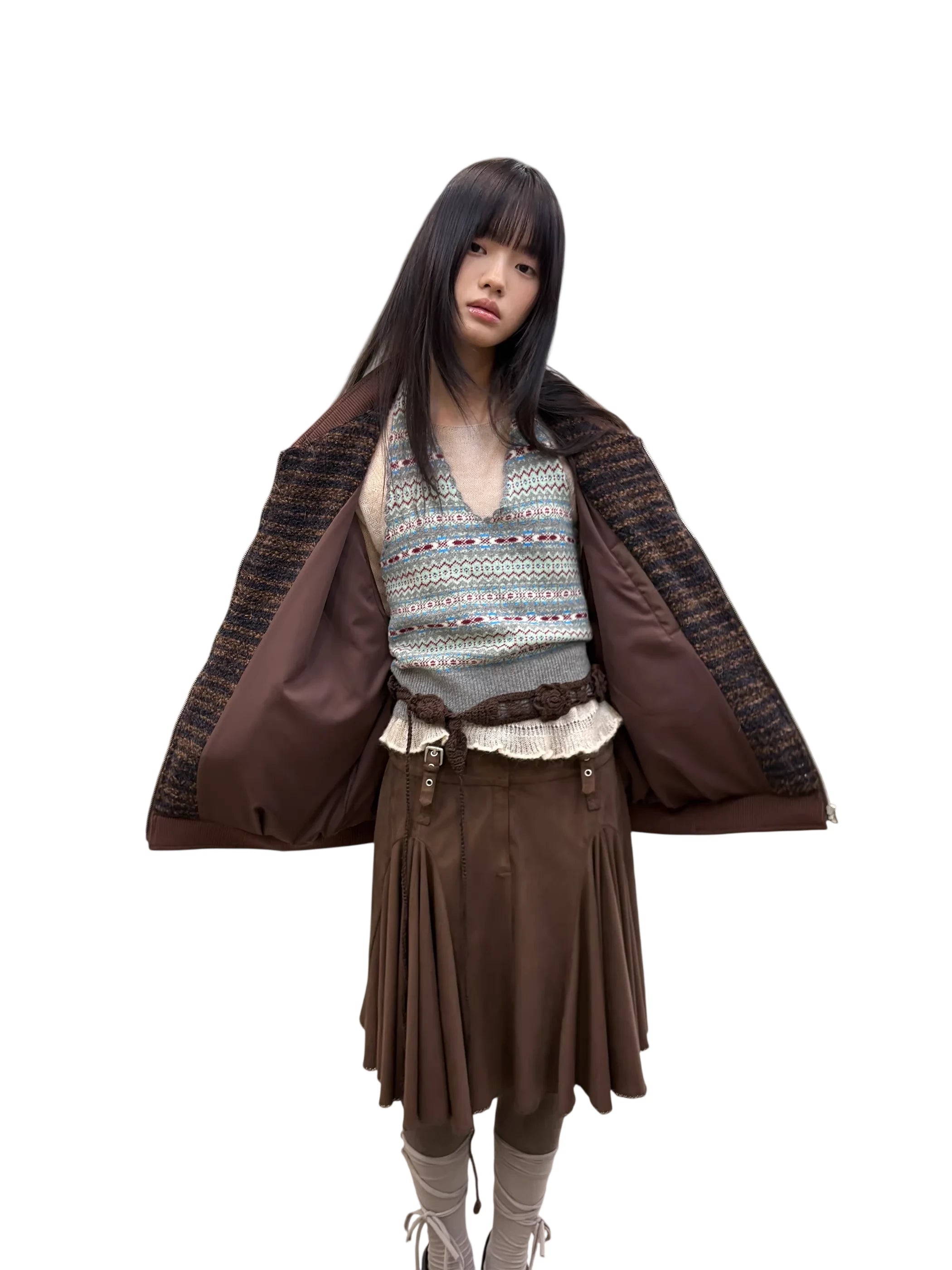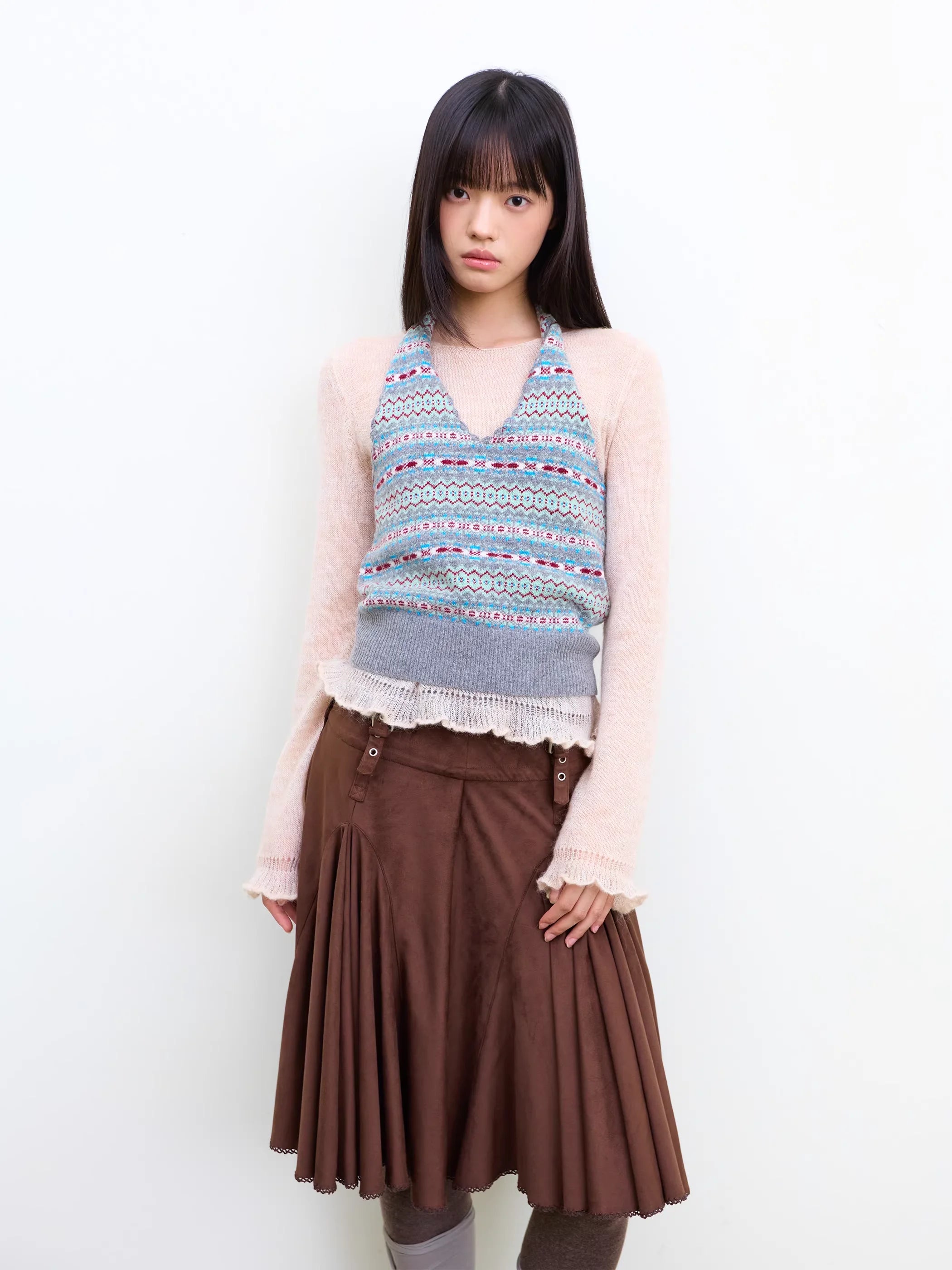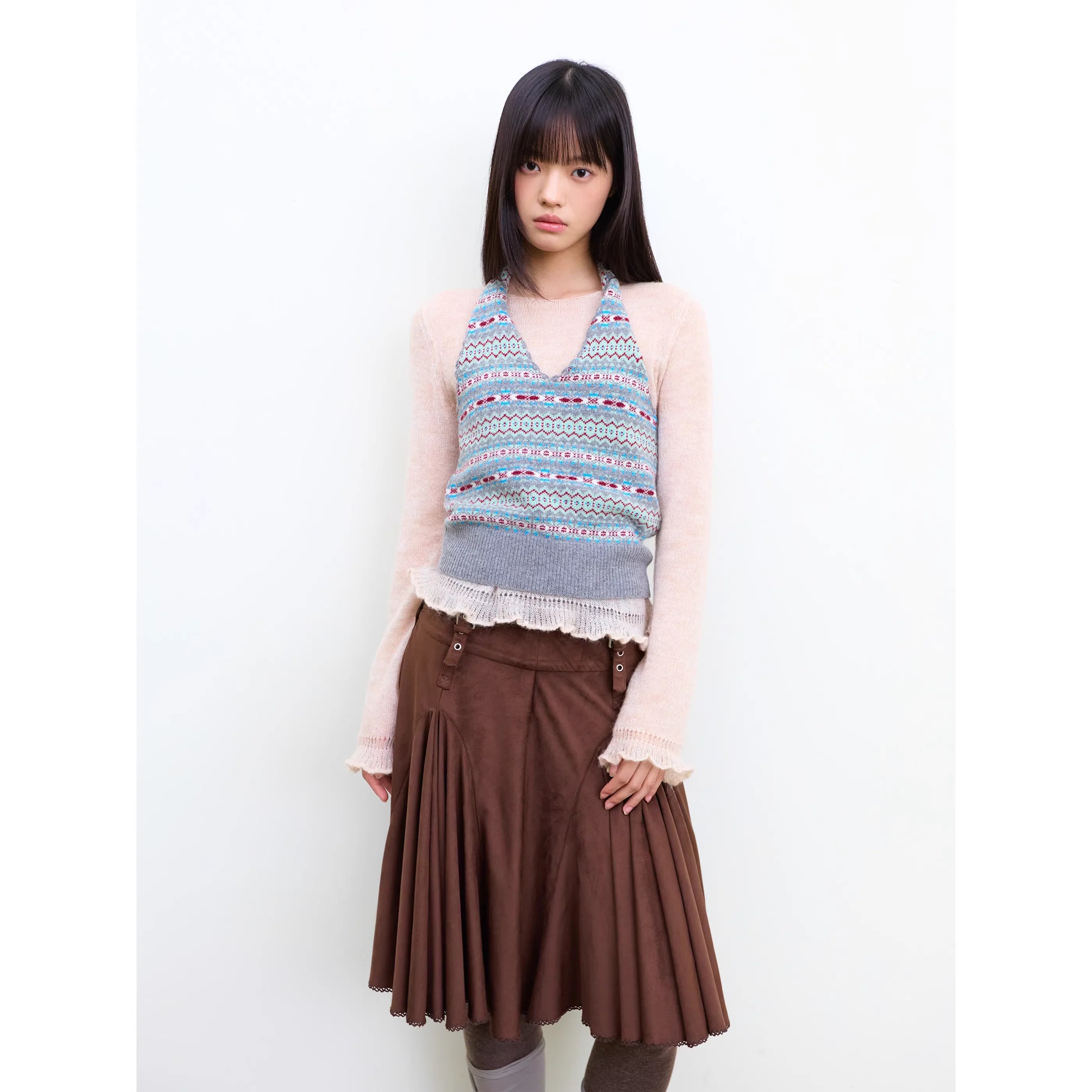 NeverSeez Fair Isle Jacquard Knit Halter Camisole with Lace Trim