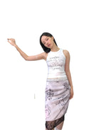 NeverSeez Lace Trim Graphic Print Skirt