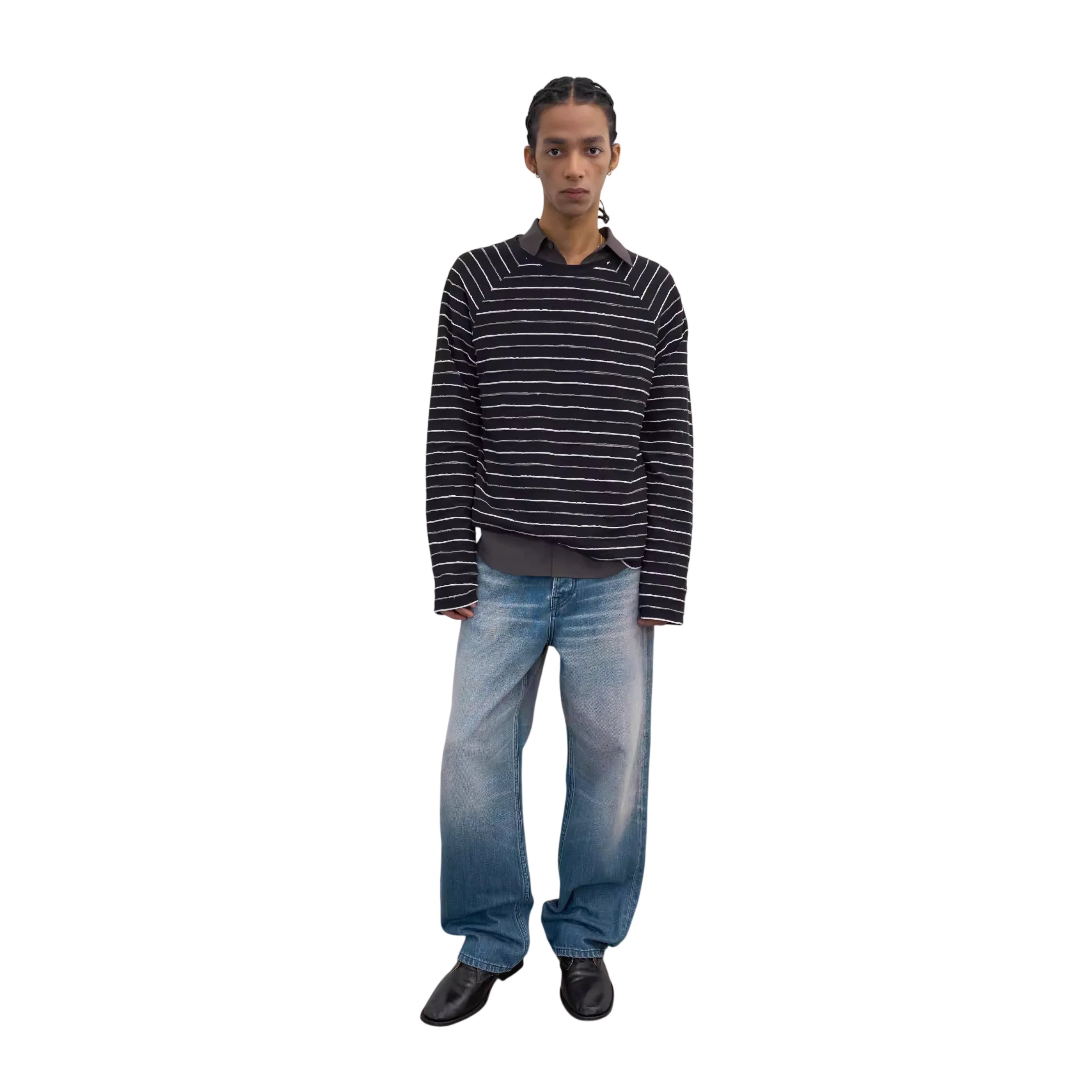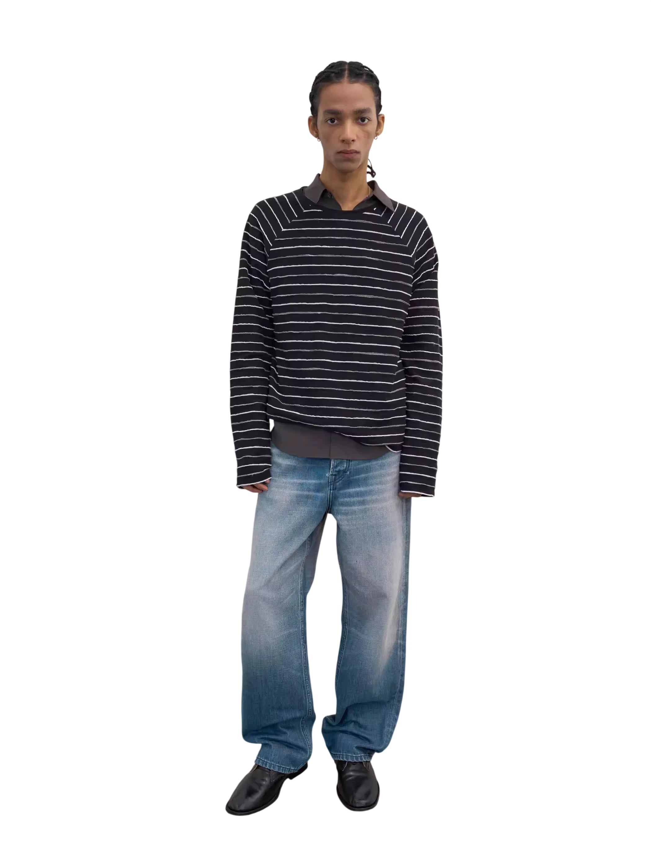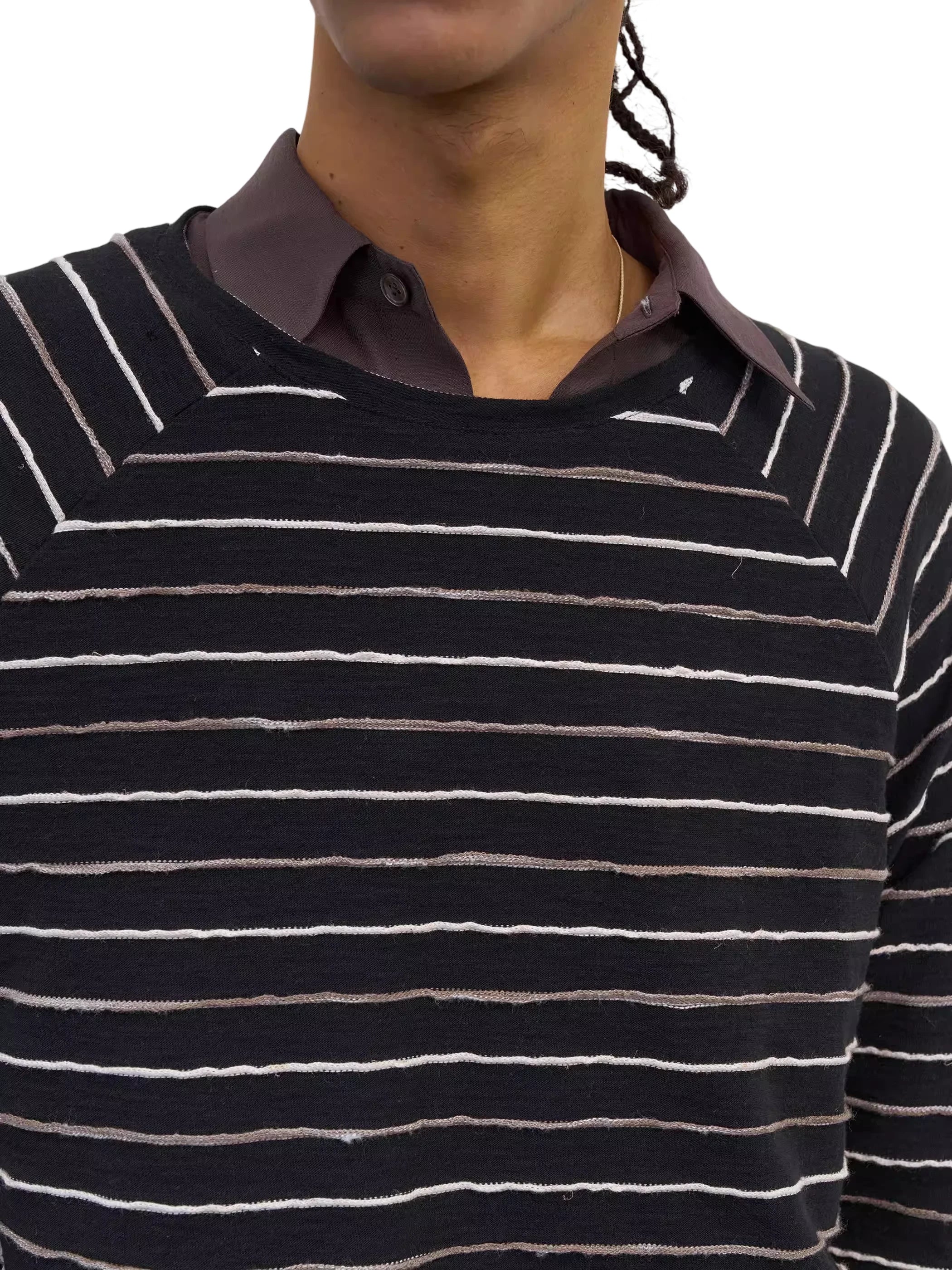 This men's long sleeve shirt features a subtle horizontal stripe pattern and is crafted from a breathable linen-blend fabric for a lightweight, textured feel. Designed in black with white stripes, it offers a casual, layered look that's perfect for relaxed, everyday wear. Pair it effortlessly with jeans or chinos for an easygoing, urban-inspired style.