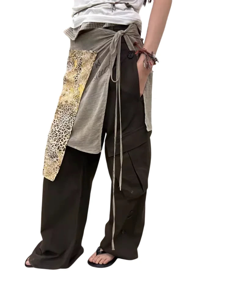 NeverSeez Wide-Leg Slanted Pocket Cargo Pants