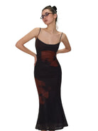 Amee Vintage Spaghetti Strap Mesh Bodycon Maxi Dress