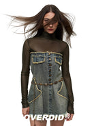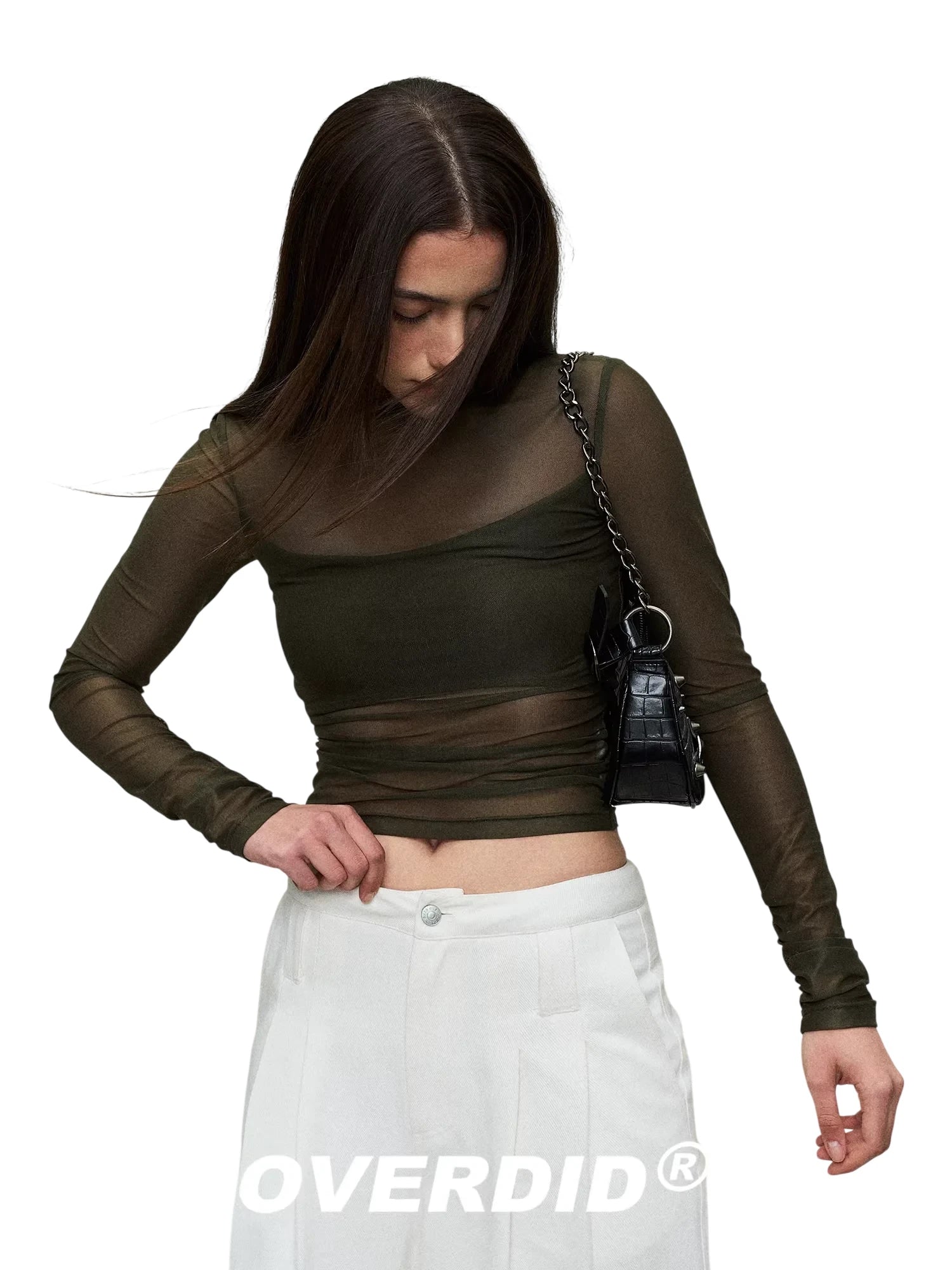 Elevate your style with this chic, slim-fit turtleneck top designed for women. Crafted from lightweight sheer mesh fabric, this long-sleeve top offers a modern layered look by revealing a coordinating inner crop top underneath. Perfect for adding a fashionable edge to your outfit, whether paired with high-waisted pants or skirts for a sleek silhouette.