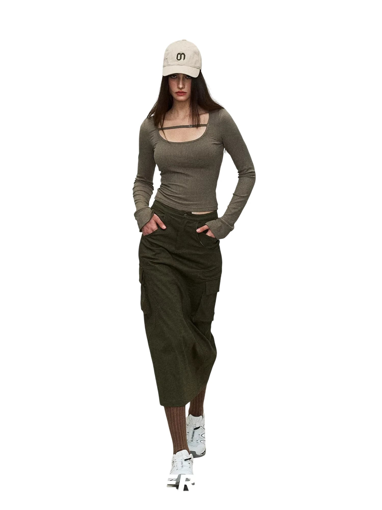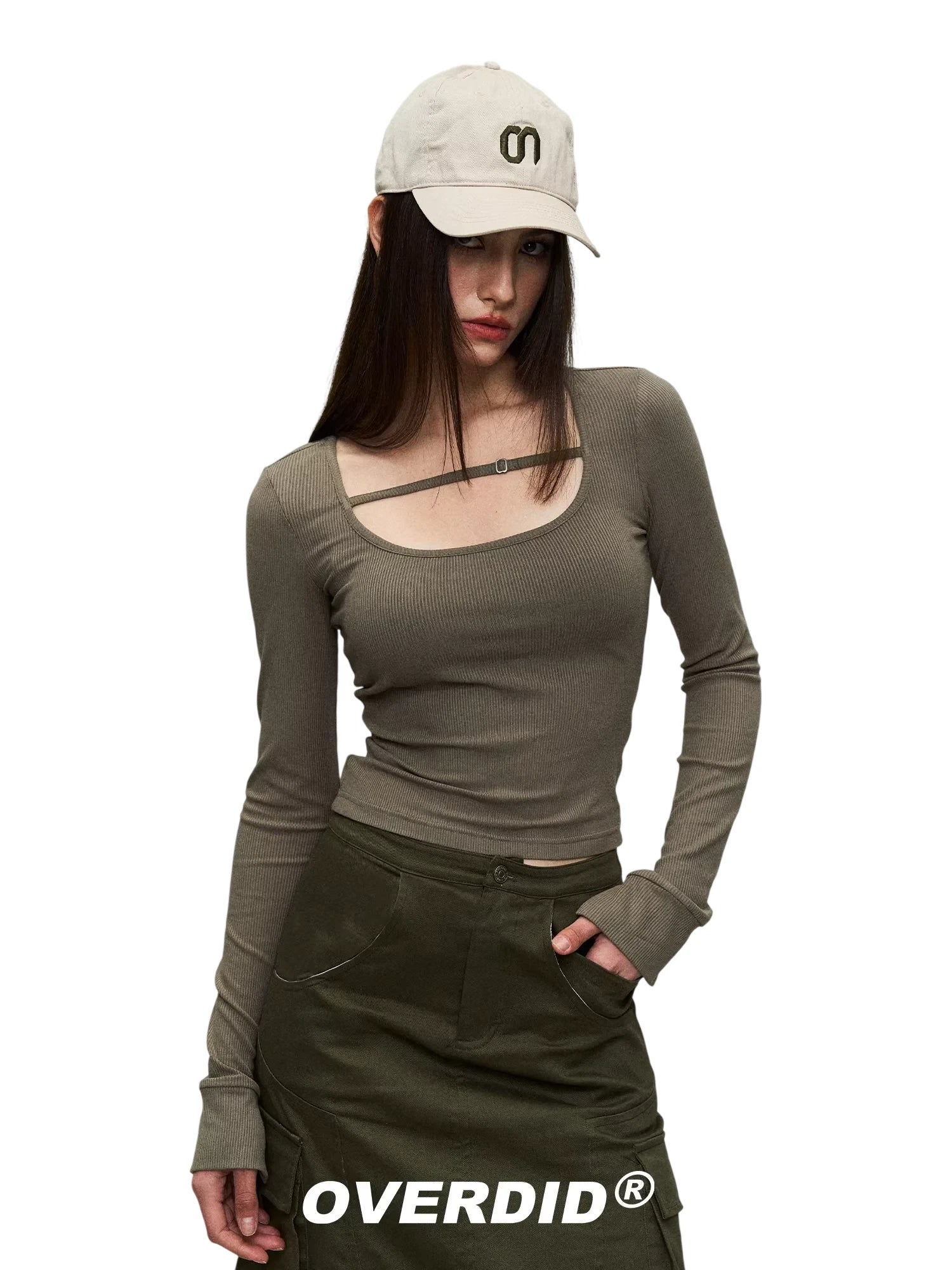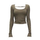 Elevate your everyday style with this vintage-inspired women's slim-fit long sleeve T-shirt. Designed with a ribbed texture and a unique square neckline, this top includes a stylish strap detail that adds a touch of flair. The fitted silhouette flatters the figure, making it perfect for pairing with high-waisted skirts or jeans. Ideal for layering or wearing on its own, this long sleeve top offers both comfort and chic appeal.