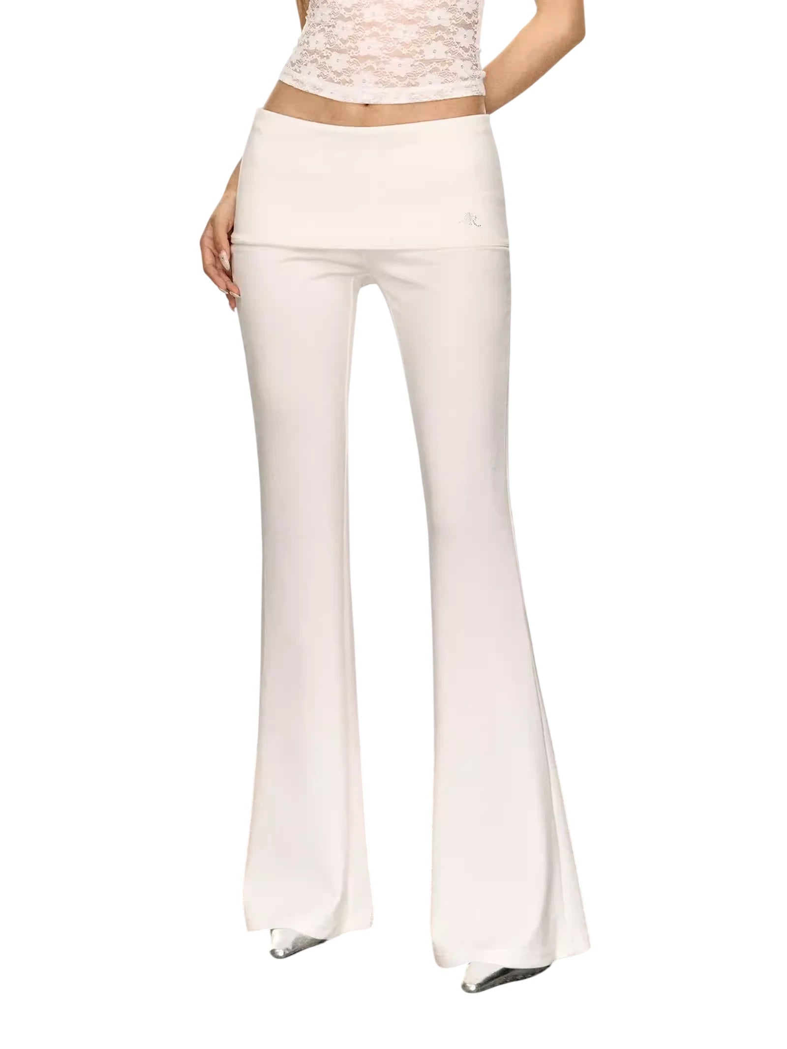 ARISEISM Women's White Flared Fold-over Waist Yoga Pants