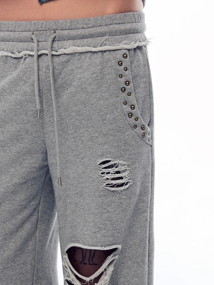 BeerBro Distressed Washed Ripped Wide-Leg Sweatpants