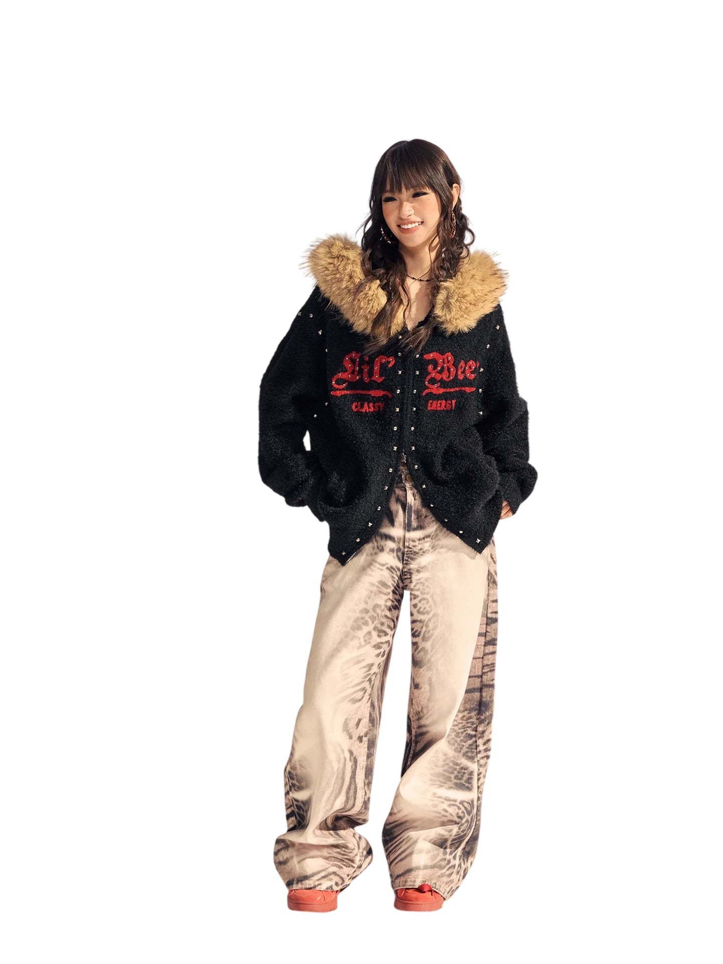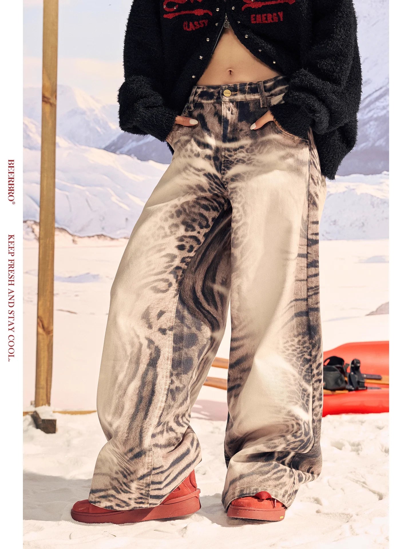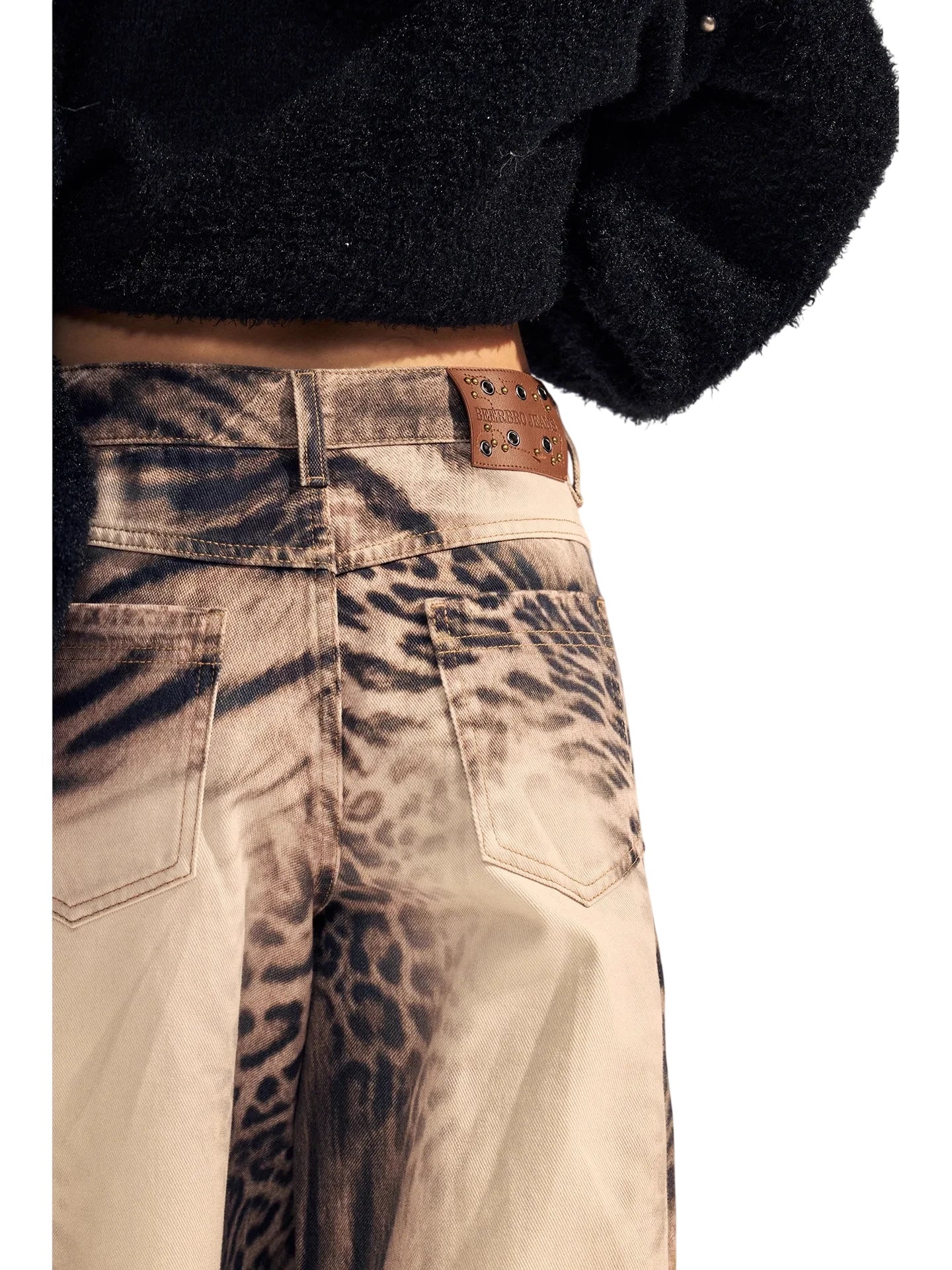 Elevate your streetwear style with these women's high-waisted wide-leg pants, featuring a striking mix of vintage-inspired leopard and zebra prints. Crafted from soft washed cotton, these pants offer a relaxed, straight-leg fit perfect for casual wear. Belt loops and a classic button zipper closure provide a secure fit, while the front pockets add a functional touch. A bold choice for fashion-forward looks.