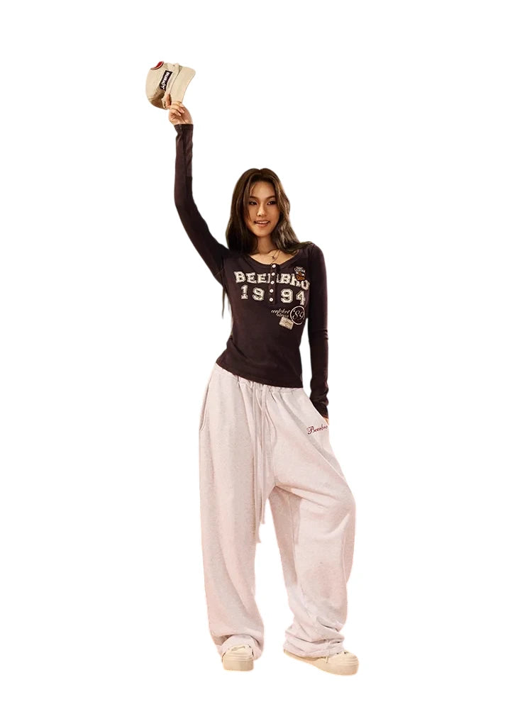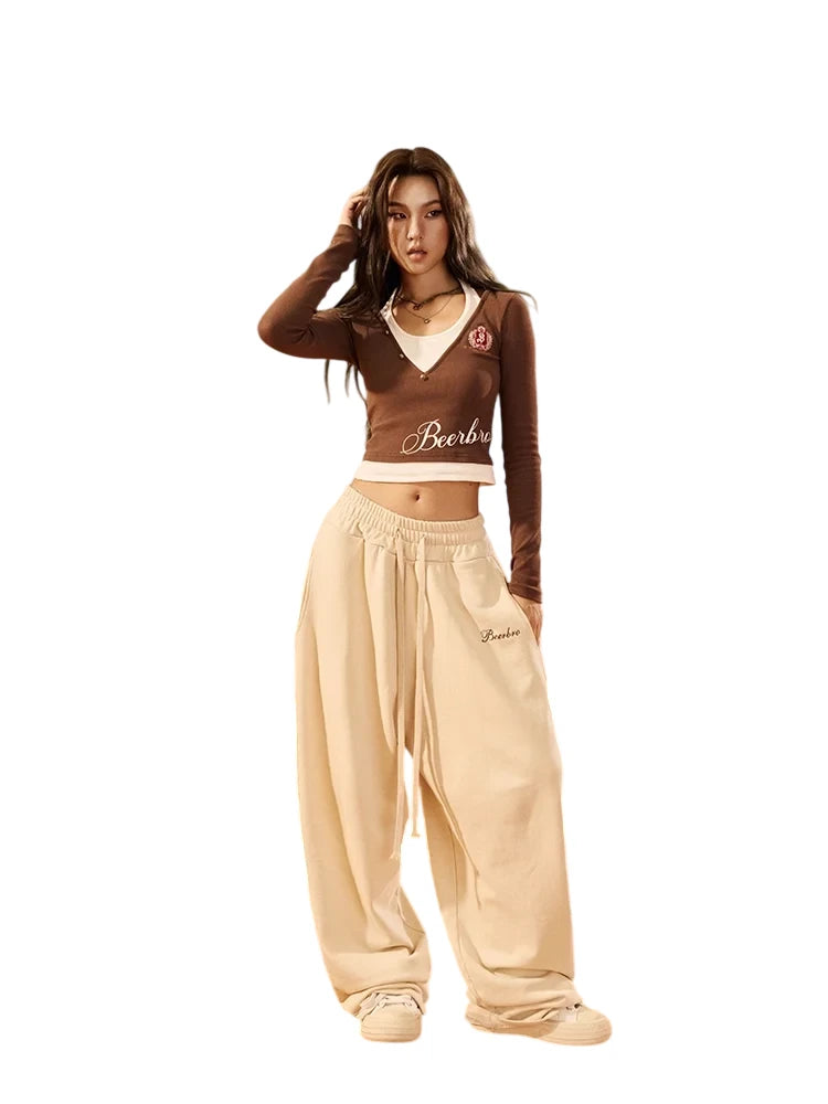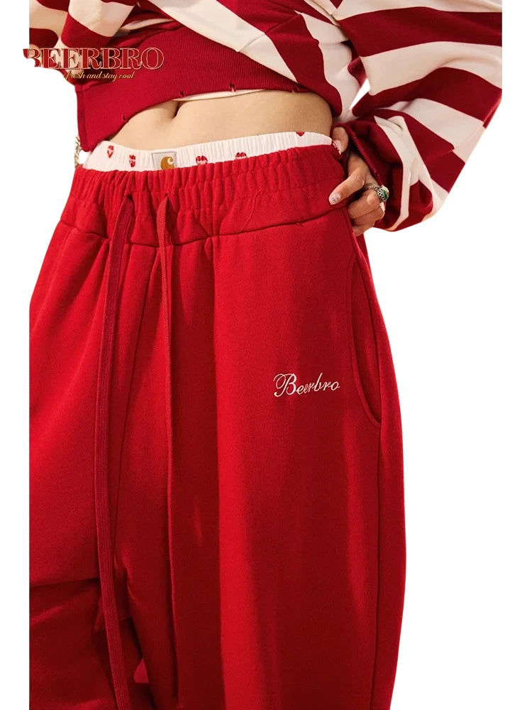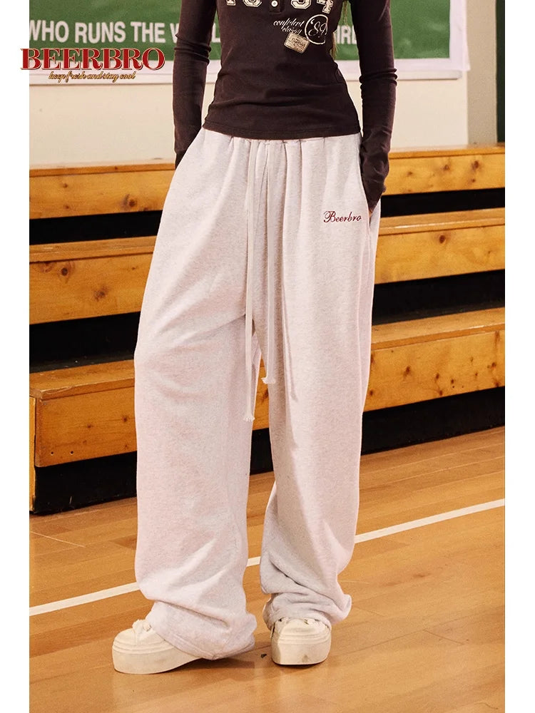 BeerBro Women's Casual Drawstring Wide-Leg Sweatpants