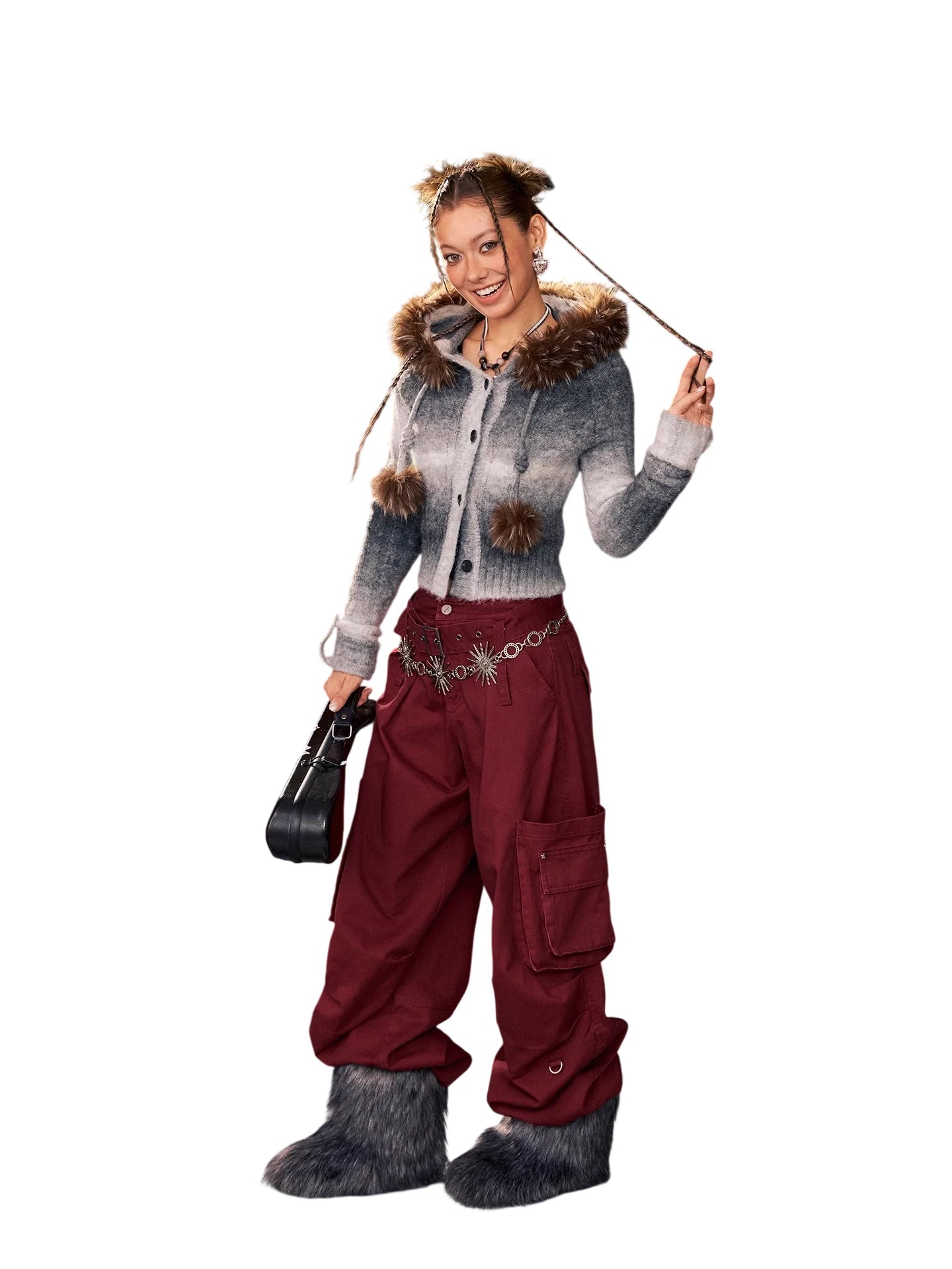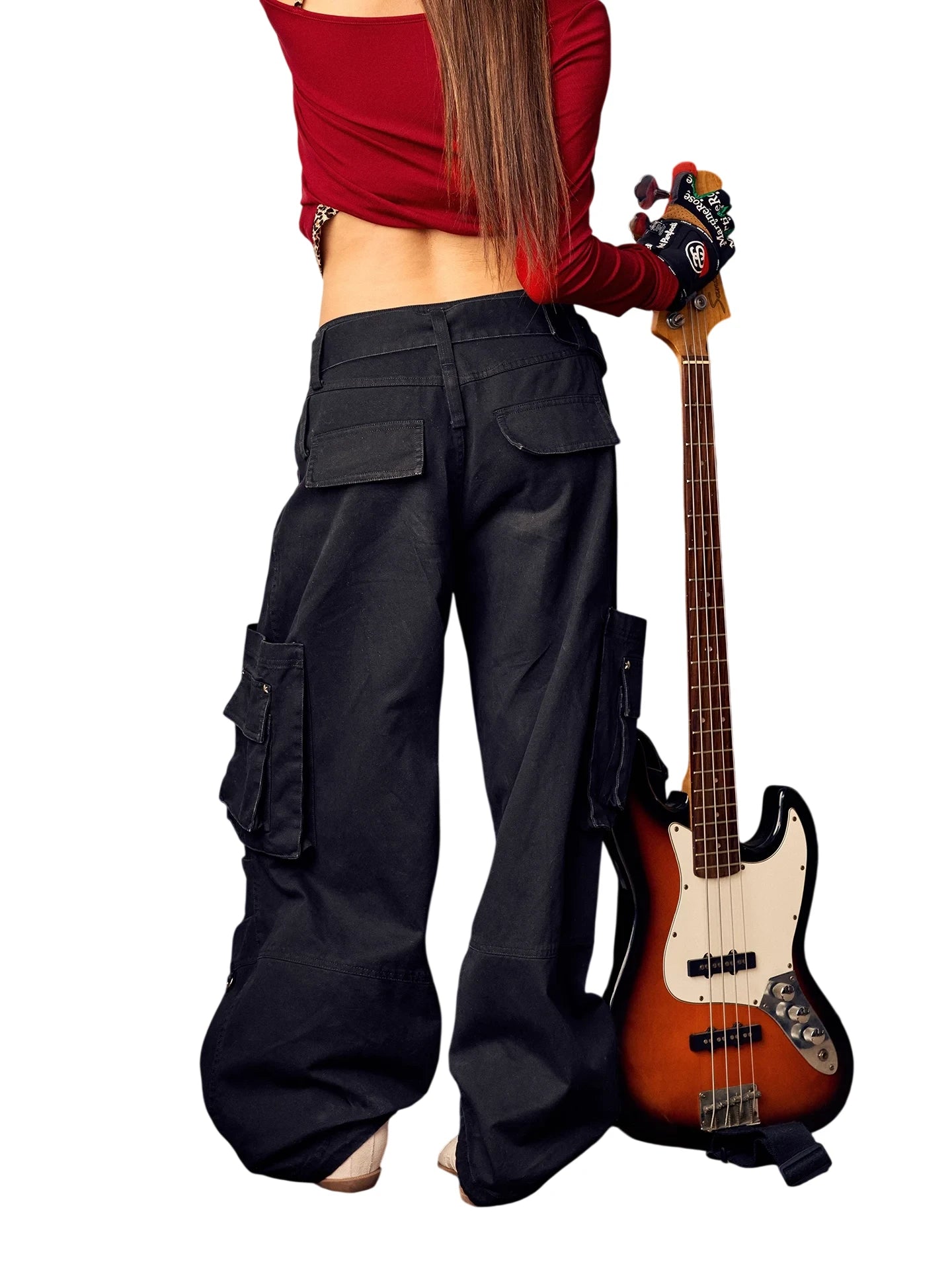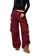 Elevate your casual streetwear look with these women's cargo pants crafted from 100% cotton for breathable comfort. Featuring a wide waistband and multiple utility pockets, these straight-leg pants offer a relaxed, oversized fit ideal for everyday wear. A stylish square belt buckle adds a bold touch, while the slouchy silhouette brings a laid-back, edgy appeal. Perfect for pairing with sneakers and your favorite cropped top.