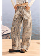 BeerBro Women's Leopard Print Distressed Loose Straight Jeans