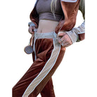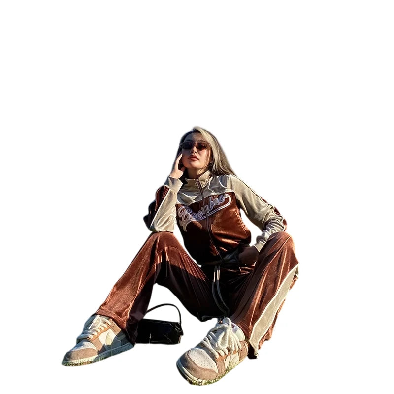 BeerBro Women's Velvet Tracksuit Set - High Waist Pants and Retro Track Jacket