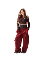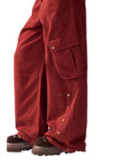 BeerBro Women's Washed Cotton Wide-Leg Cargo Pants