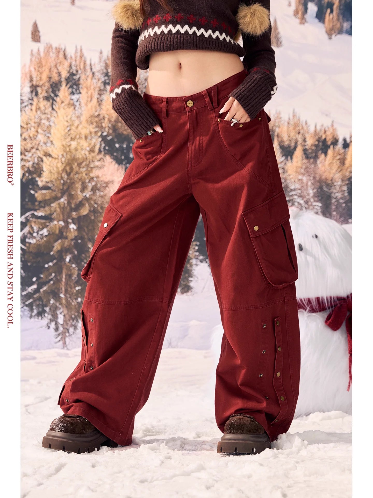 Stay stylish and comfortable with these high-waisted, loose-fitting cargo pants for women. Made from durable all-cotton fabric, these pants feature a washed finish and relaxed wide-leg cut that’s perfect for casual wear in cooler seasons. Designed with utility in mind, they include multiple flap pockets and side-leg button detailing for adjustable width and added flair.