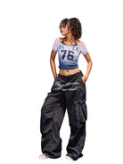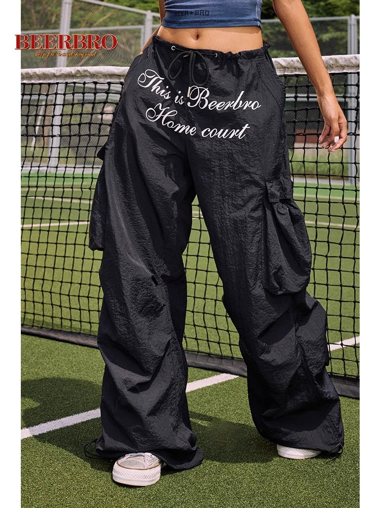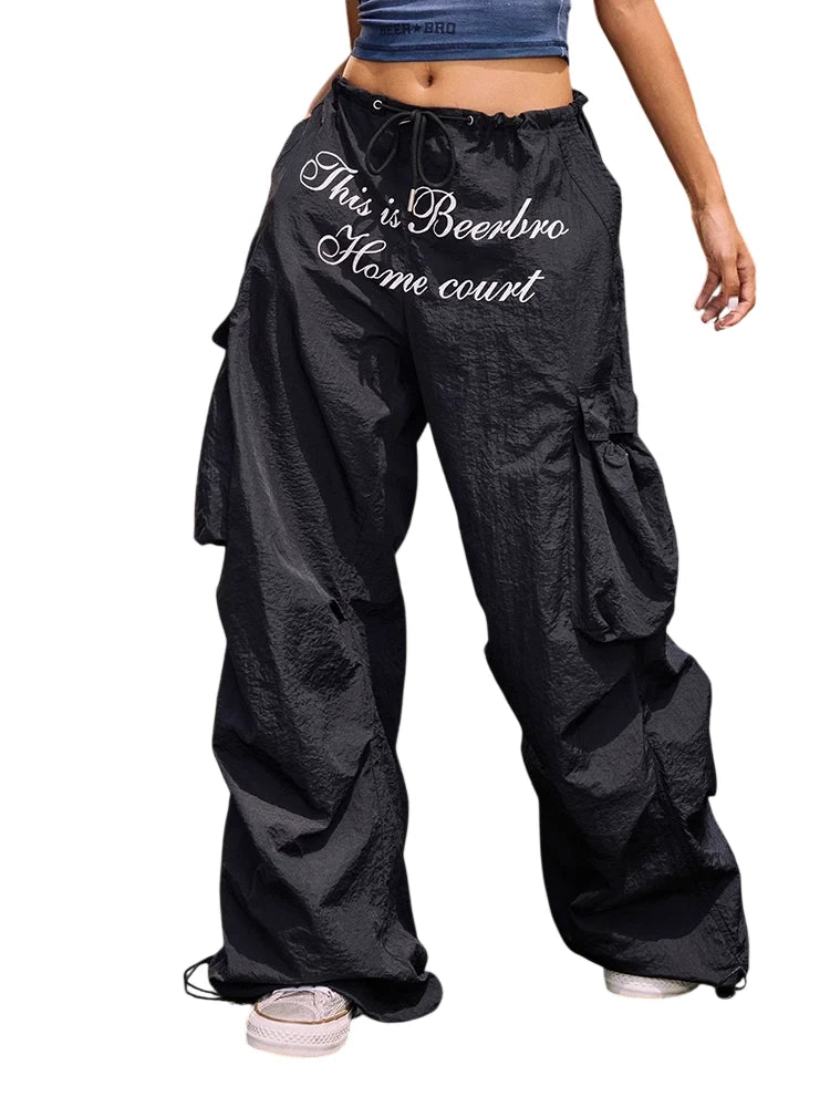 BeerBro Women's Y2K Style Loose Cargo Pants with Graphic Print