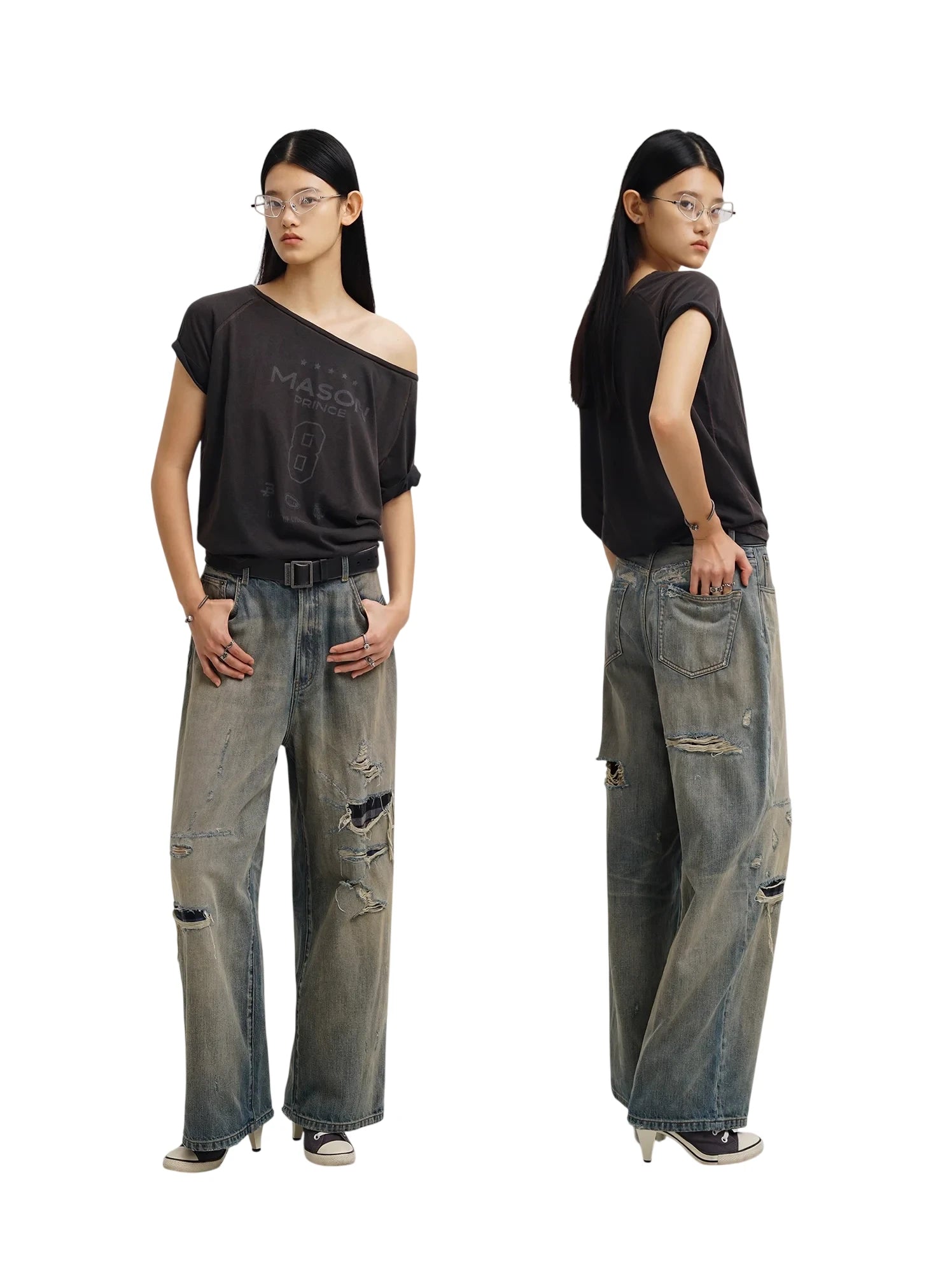 MASONPRINCE Distressed Patchwork Wide-Leg Jeans