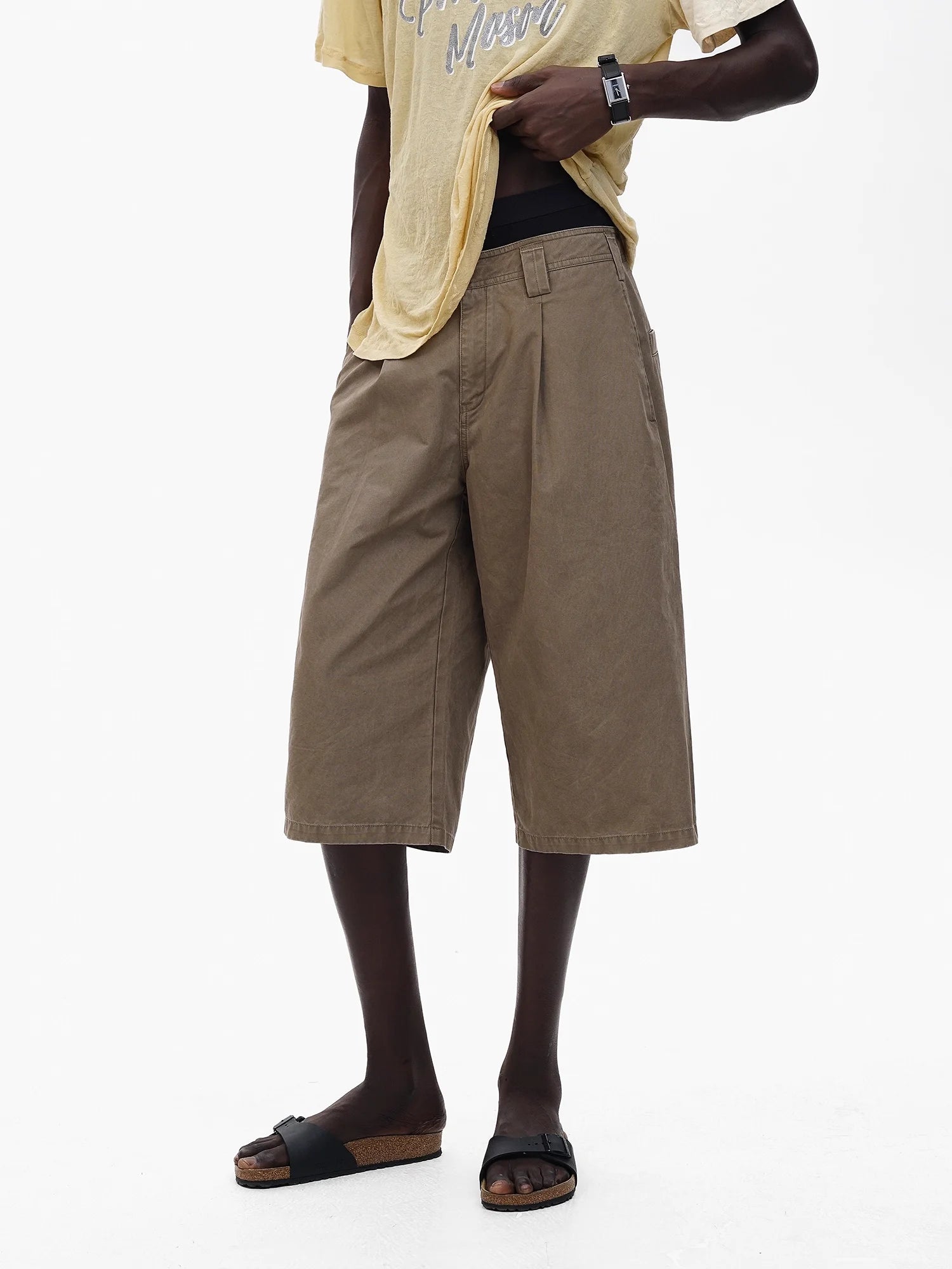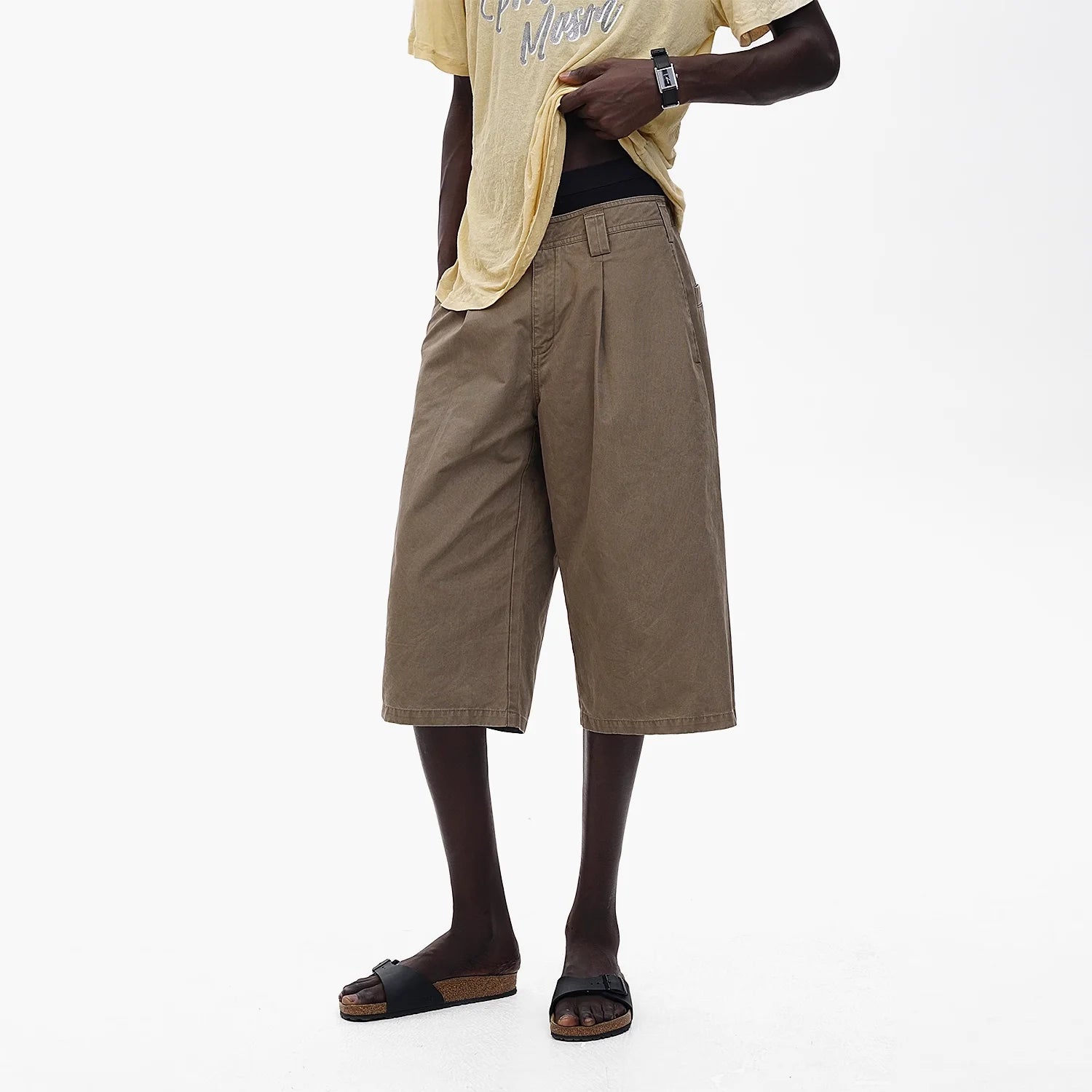 Designed for warm-weather comfort and effortless streetwear style, these men's knee-length shorts feature a relaxed fit and a soft, faded brown finish. The pleated front adds a subtle touch of structure, while functional side pockets and belt loops enhance practicality. Ideal for casual days, these shorts pair easily with your favorite tees and sandals for a laid-back summer look.