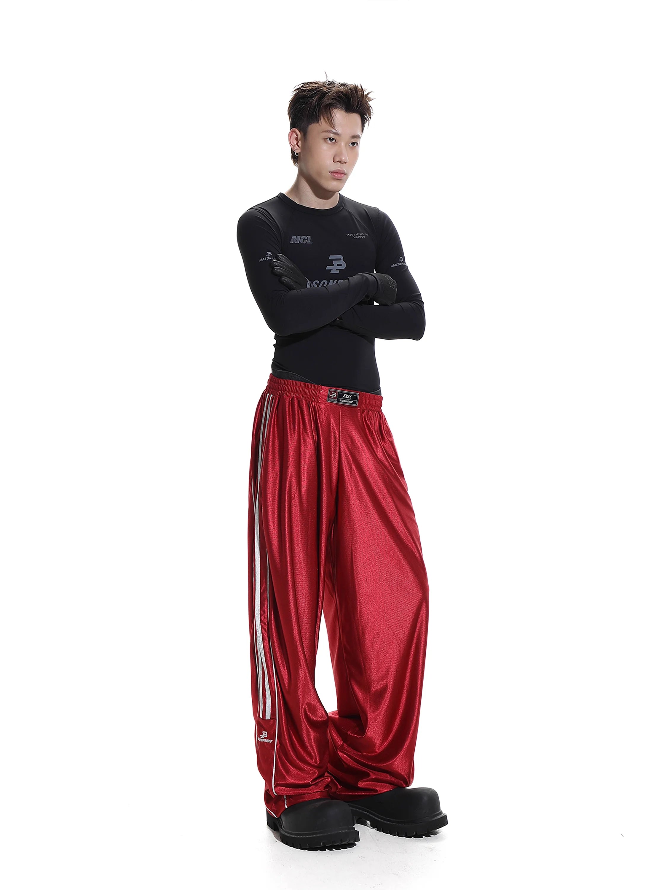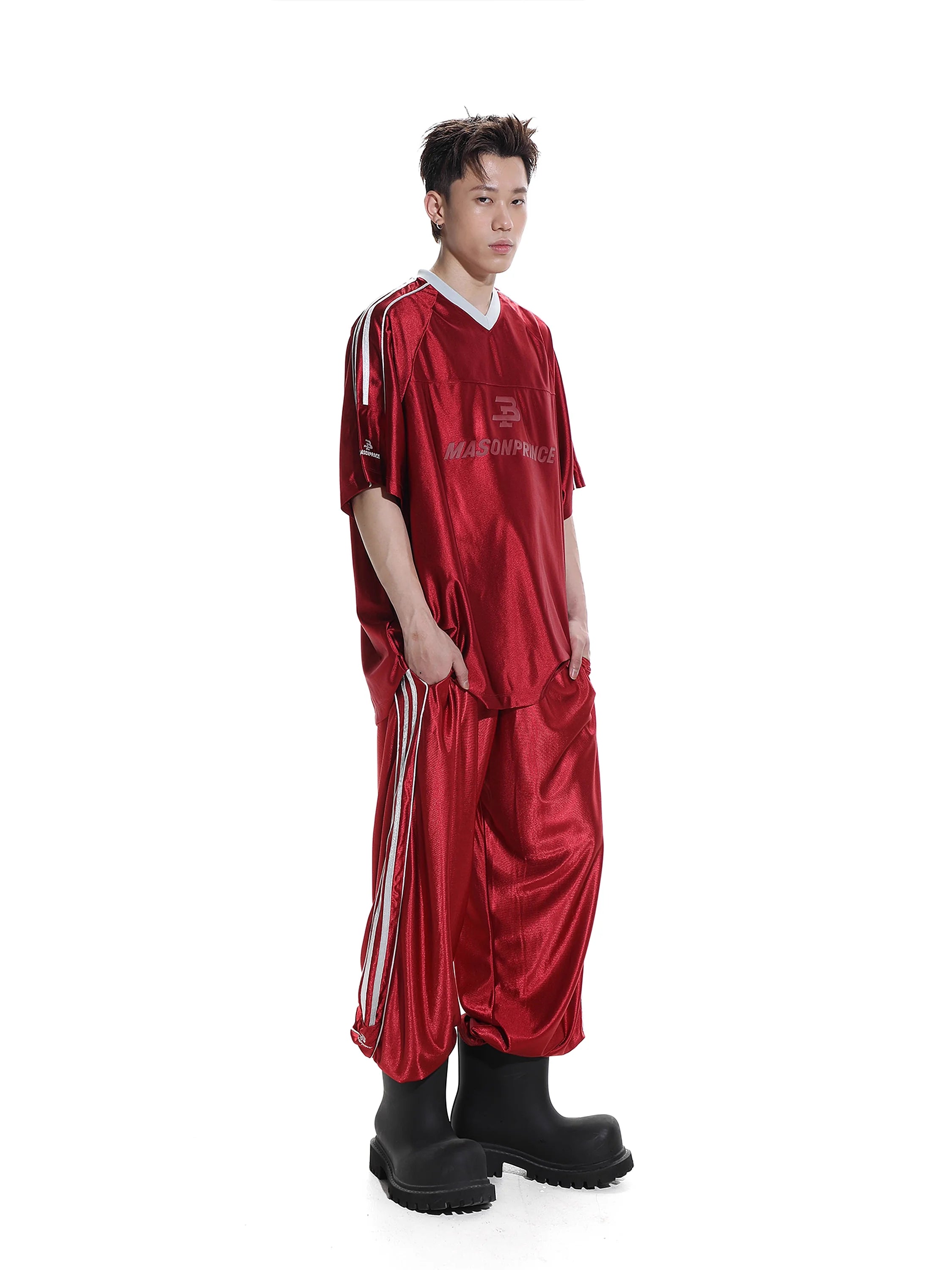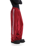 MASONPRINCE Glossy Maroon Track Pants with Silver Stripes for Men