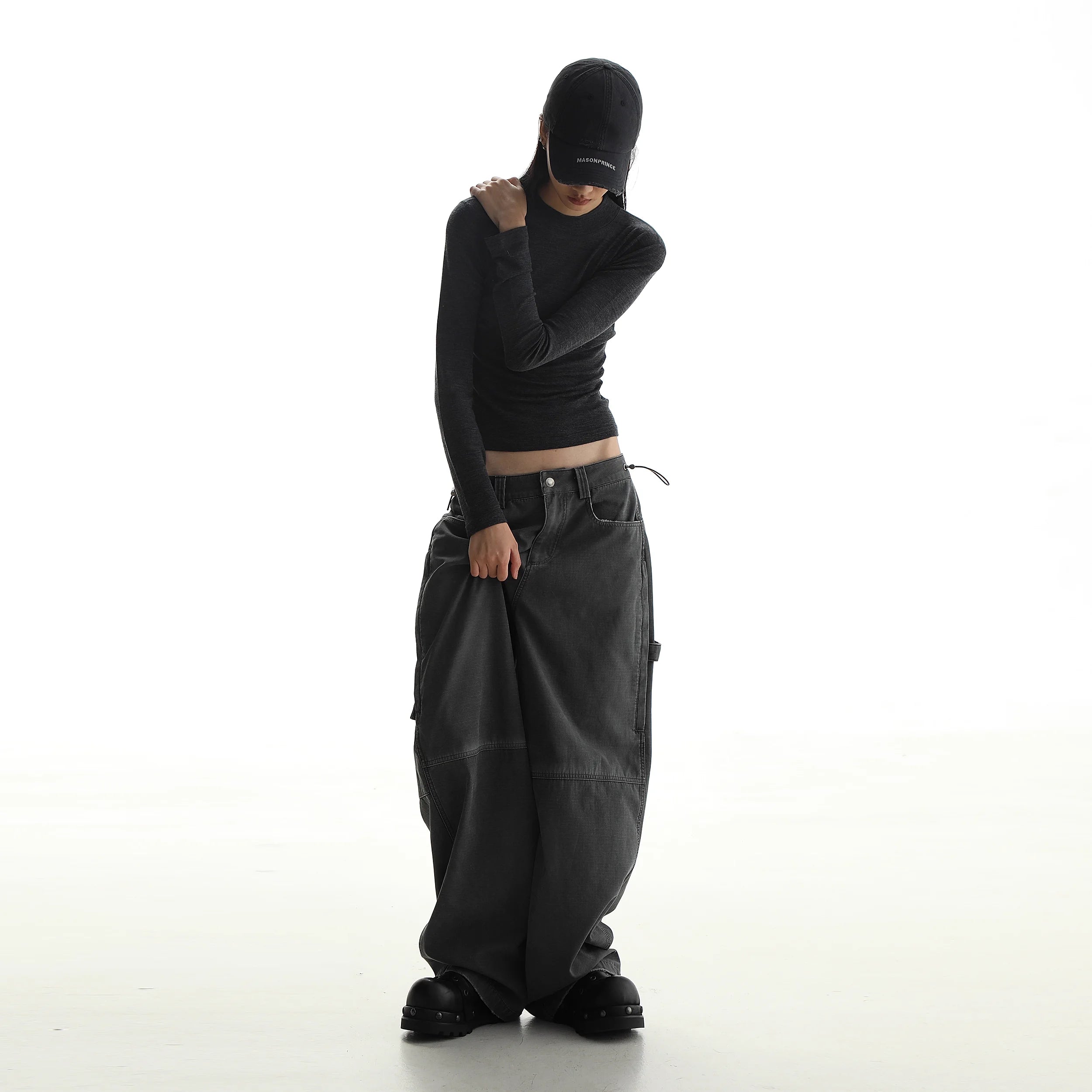 Make a bold statement with these vintage-inspired wide-leg cargo jeans. Designed for a standout silhouette, these ultra-loose, dark-washed denim pants feature exaggerated leg widths, stitch detailing, and large utilitarian pockets for an edgy, streetwear look. Perfect for a confident and casual vibe, they pair effortlessly with fitted tops and sneakers.