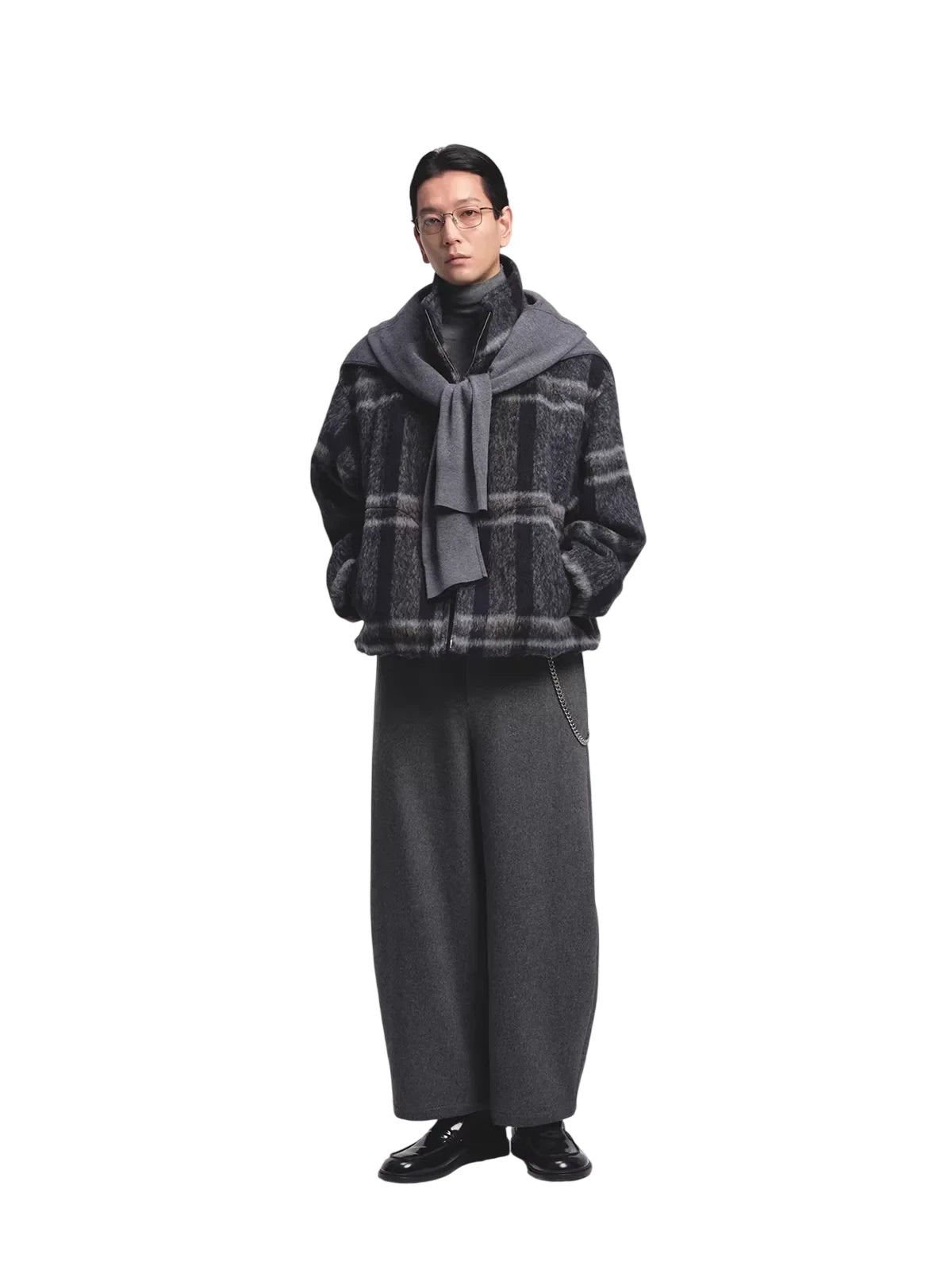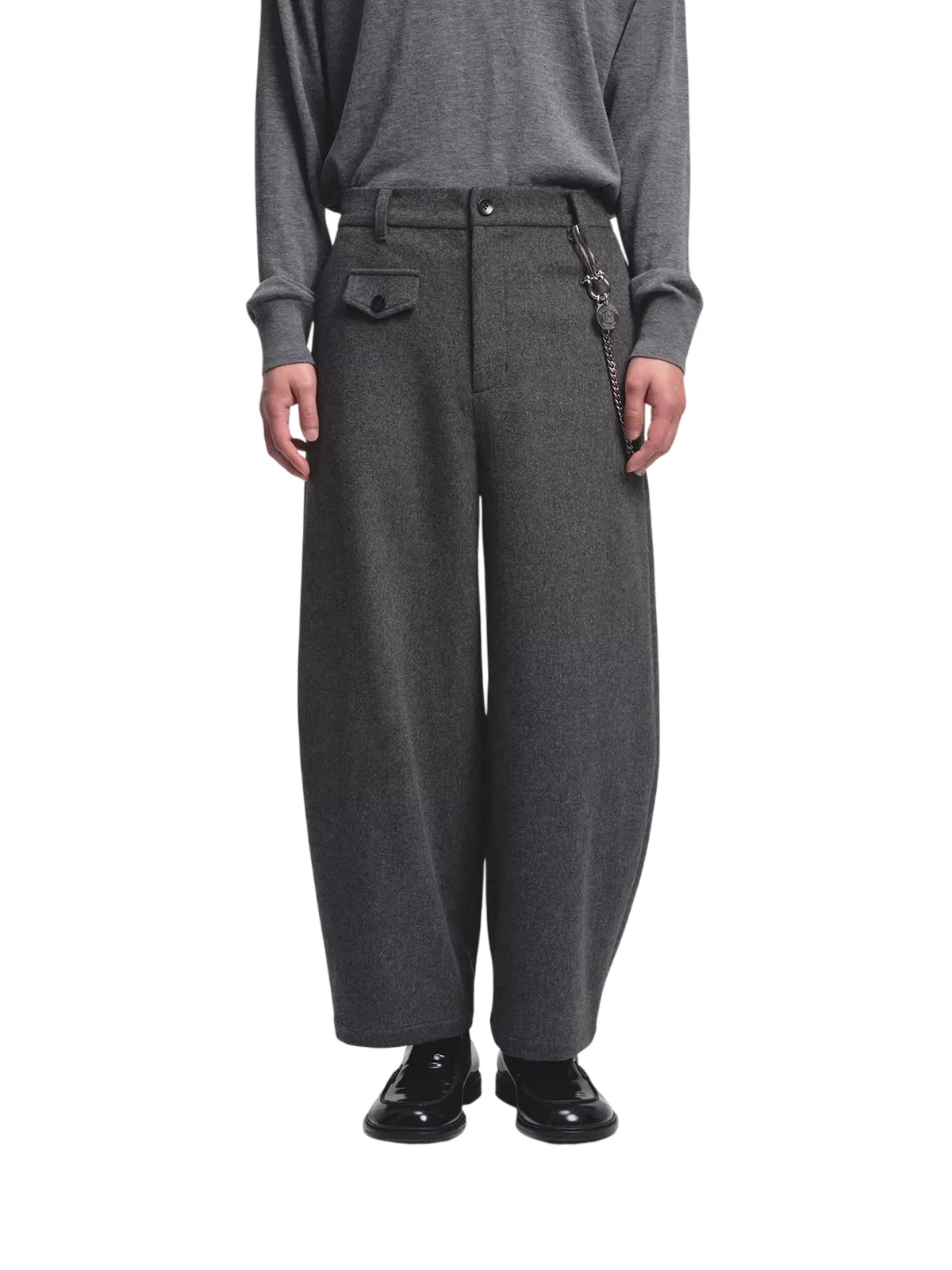NANS Menswear Men's Wool Blend Curved-Leg Trousers with Flap Pocket