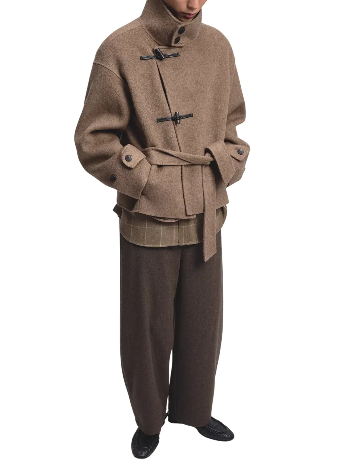 Elevate your wardrobe with these men's heavyweight wool blend trousers, crafted for both comfort and refined style. Featuring a high-rise, semi-elastic waistband and a tailored wide-leg silhouette, these trousers offer a contemporary take on a classic design.
