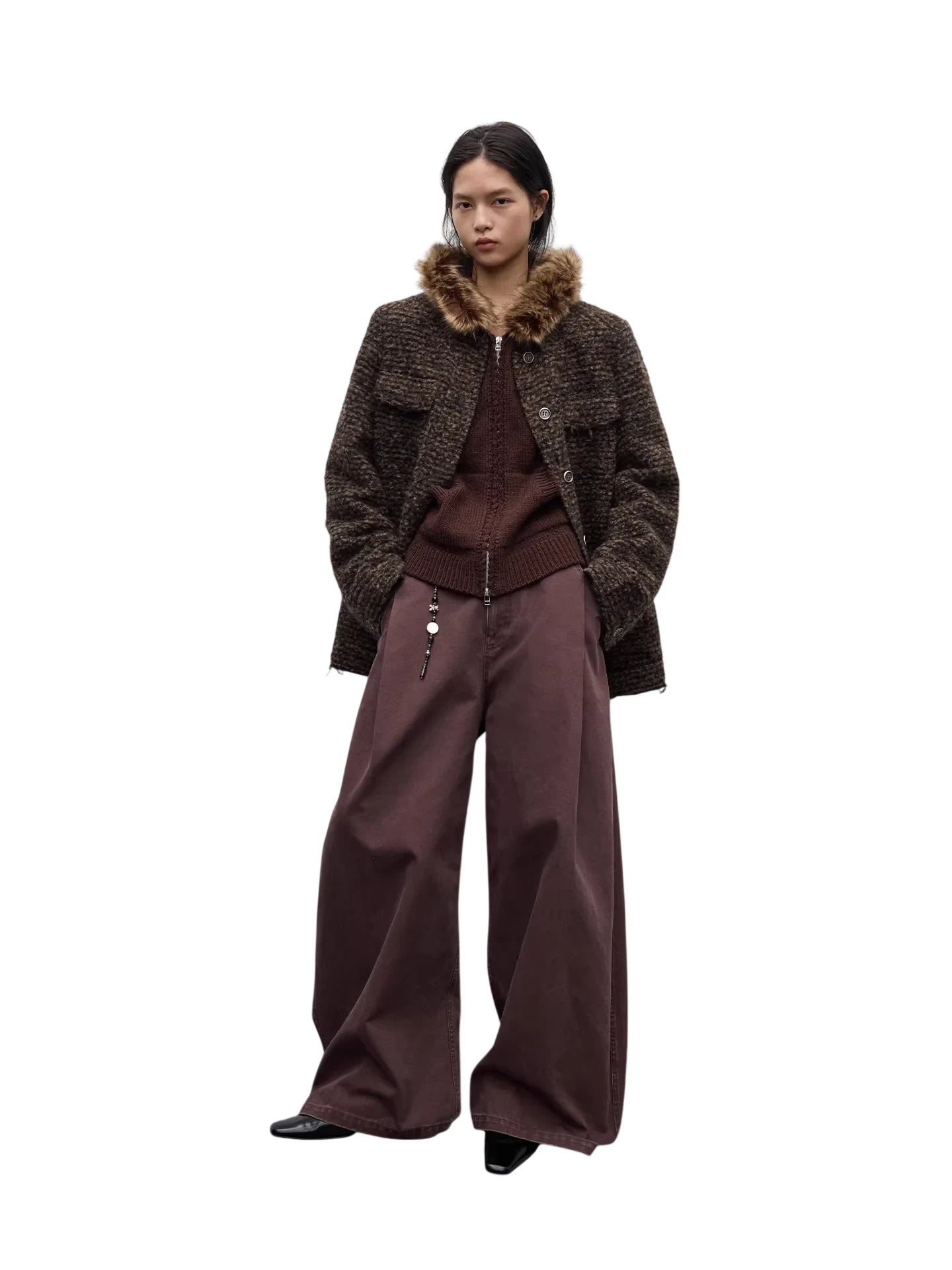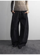 Elevate your autumn wardrobe with these women's heavyweight cotton casual pants. Featuring a textured, faded wash for a vintage-inspired look, these high-waisted pants offer a relaxed O-shaped silhouette and a single pleat design for added comfort and style. Ideal for layering in cooler weather, they pair effortlessly with knits and overcoats for a cozy, seasonal ensemble.