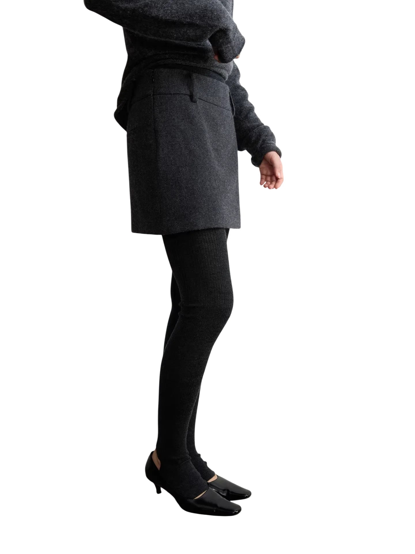Stay stylish and warm this winter with these wool blend A-line skirt pants. Featuring an asymmetrical hem and a subtle side slit design, these short skirt pants combine the elegance of a skirt with the comfort of shorts, making them a versatile addition to your cold-weather wardrobe.
