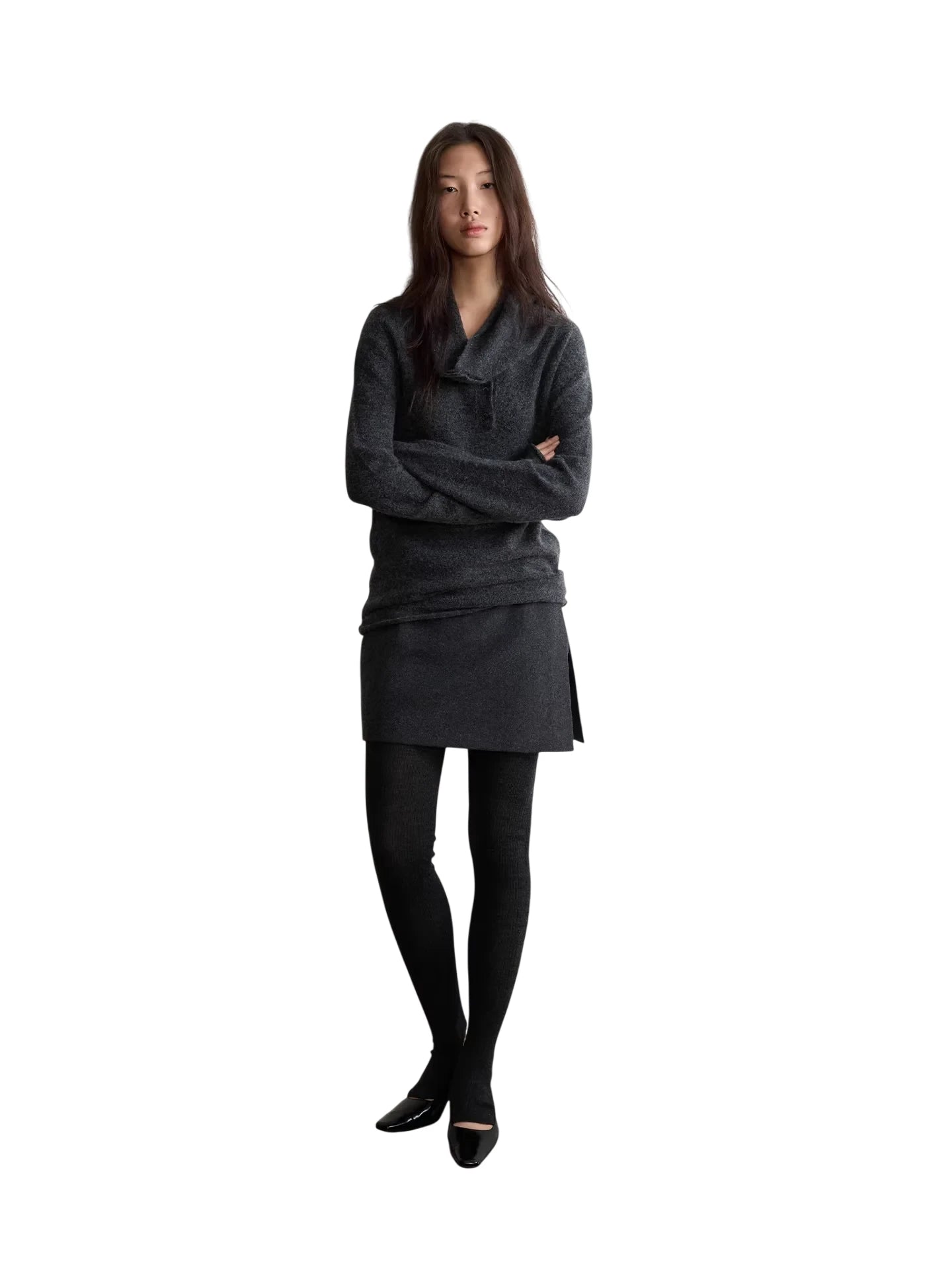 Perfect for layering, this piece pairs beautifully with tights, boots, and cozy outerwear for a chic winter outfit. Designed for women who value comfort and modern fashion, the textured fabric and structured silhouette make it ideal for both casual and semi-formal occasions.