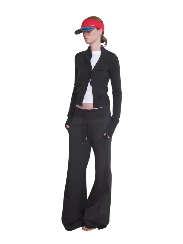 RARELY ALIKE Wide Waist Flared Ribbed Sweatpants - Black, Light Gray, Charcoal Gray