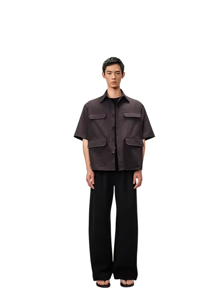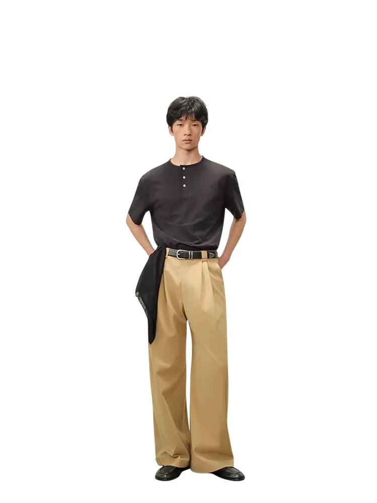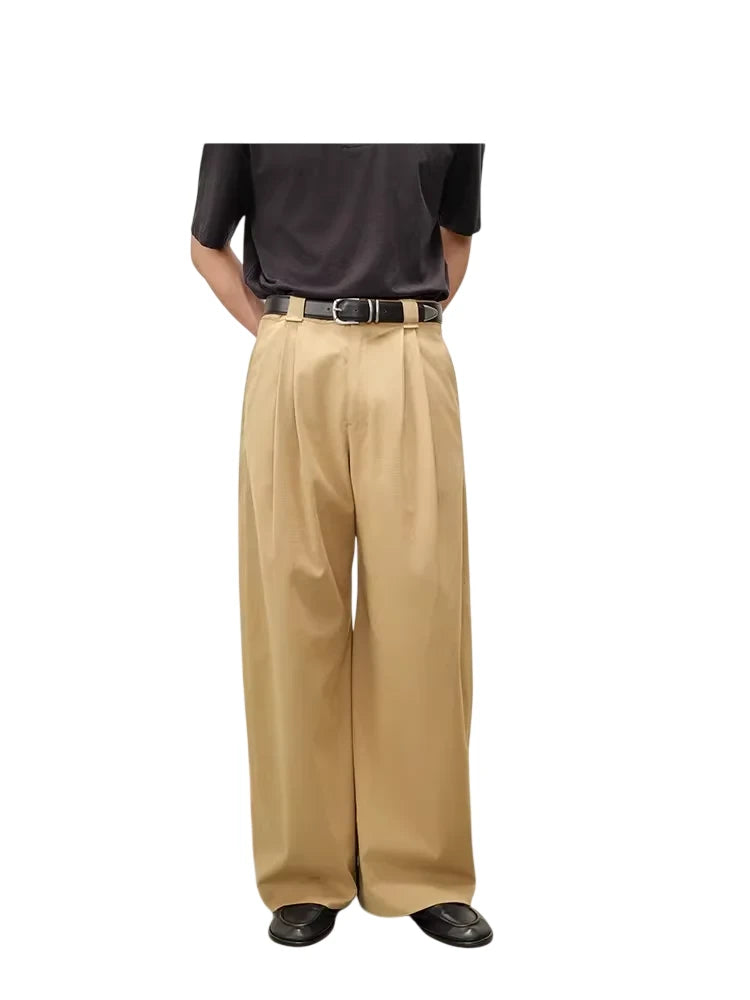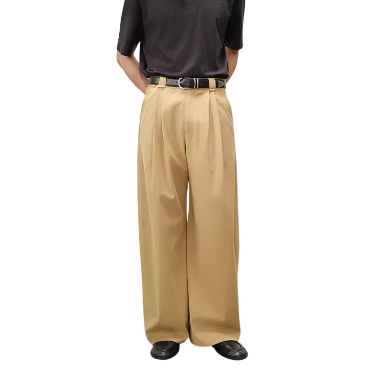Elevate your wardrobe with these men's wide-leg trousers crafted from a breathable linen-cotton blend. Featuring double front pleats and 3D tailoring, these high-waisted pants offer a loose, draped fit for all-day comfort. Inspired by paratrooper military style, their refined silhouette makes them ideal for smart-casual or semi-formal occasions. Pair them effortlessly with shirts or tees for a polished look.
