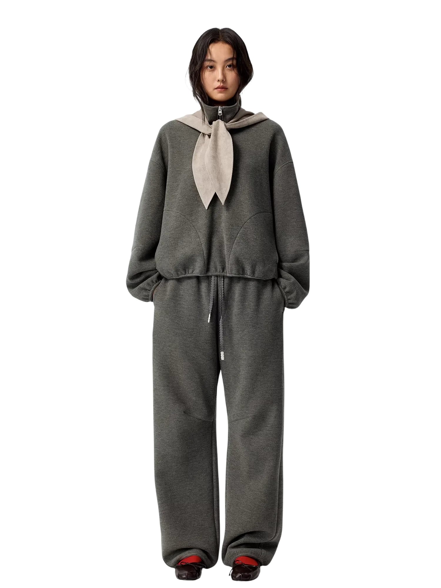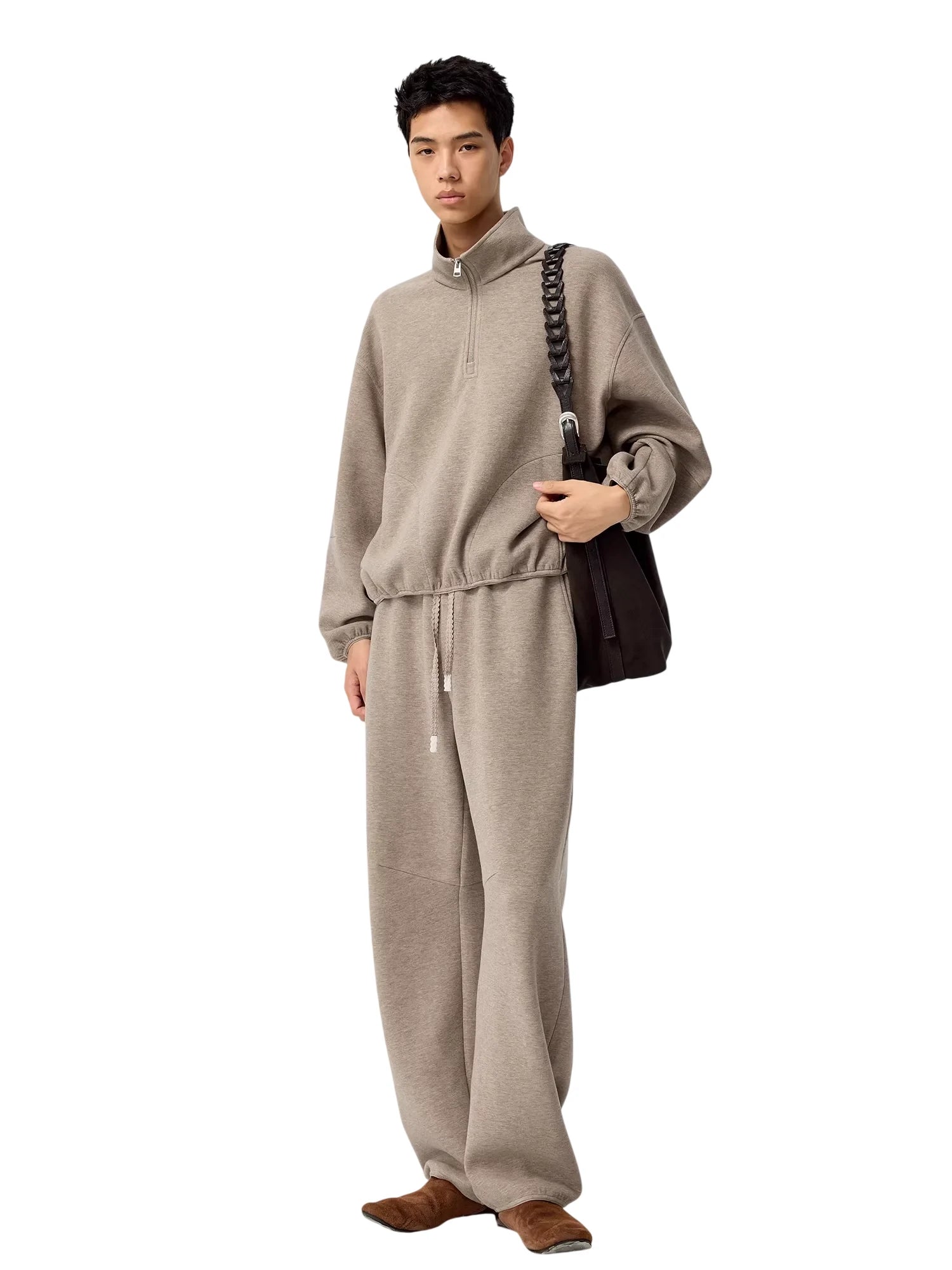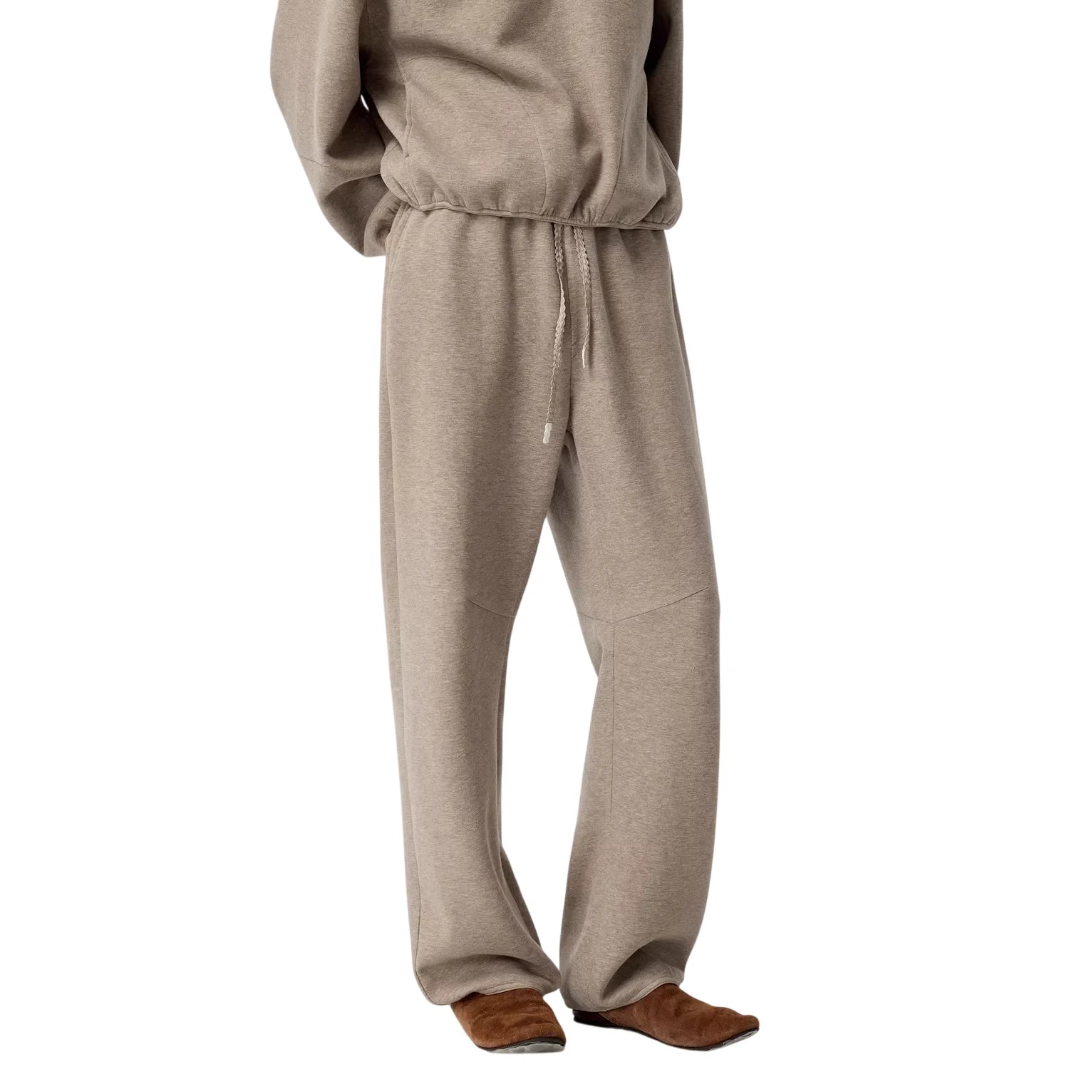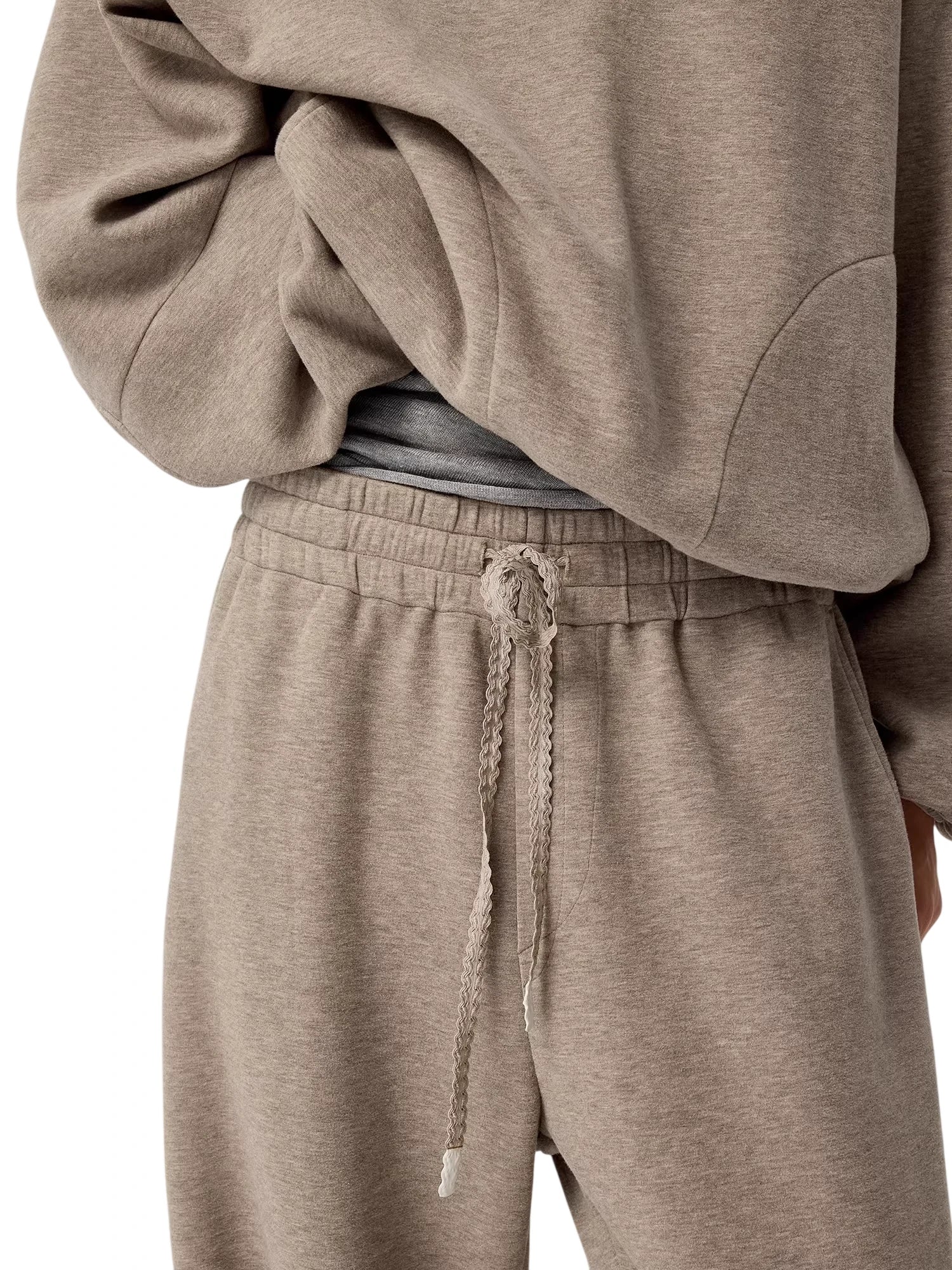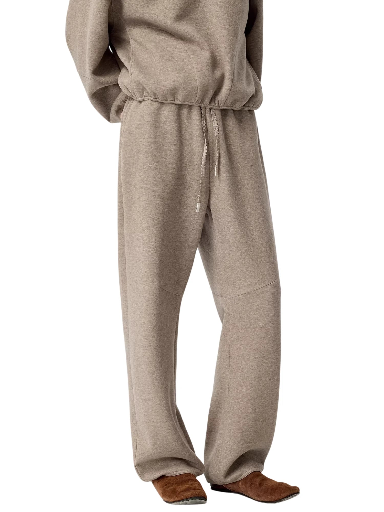 Designed for ultimate comfort, these men's fleece sweatpants offer a relaxed, straight-leg fit ideal for lounging or casual wear. Made from soft, cloud-like fabric, they feature an elastic waistband with an adjustable drawstring for a customizable fit. Visible seam detailing above the knees adds subtle structure, while the wide leg openings gently cuff at the hem, offering a modern yet laid-back look.