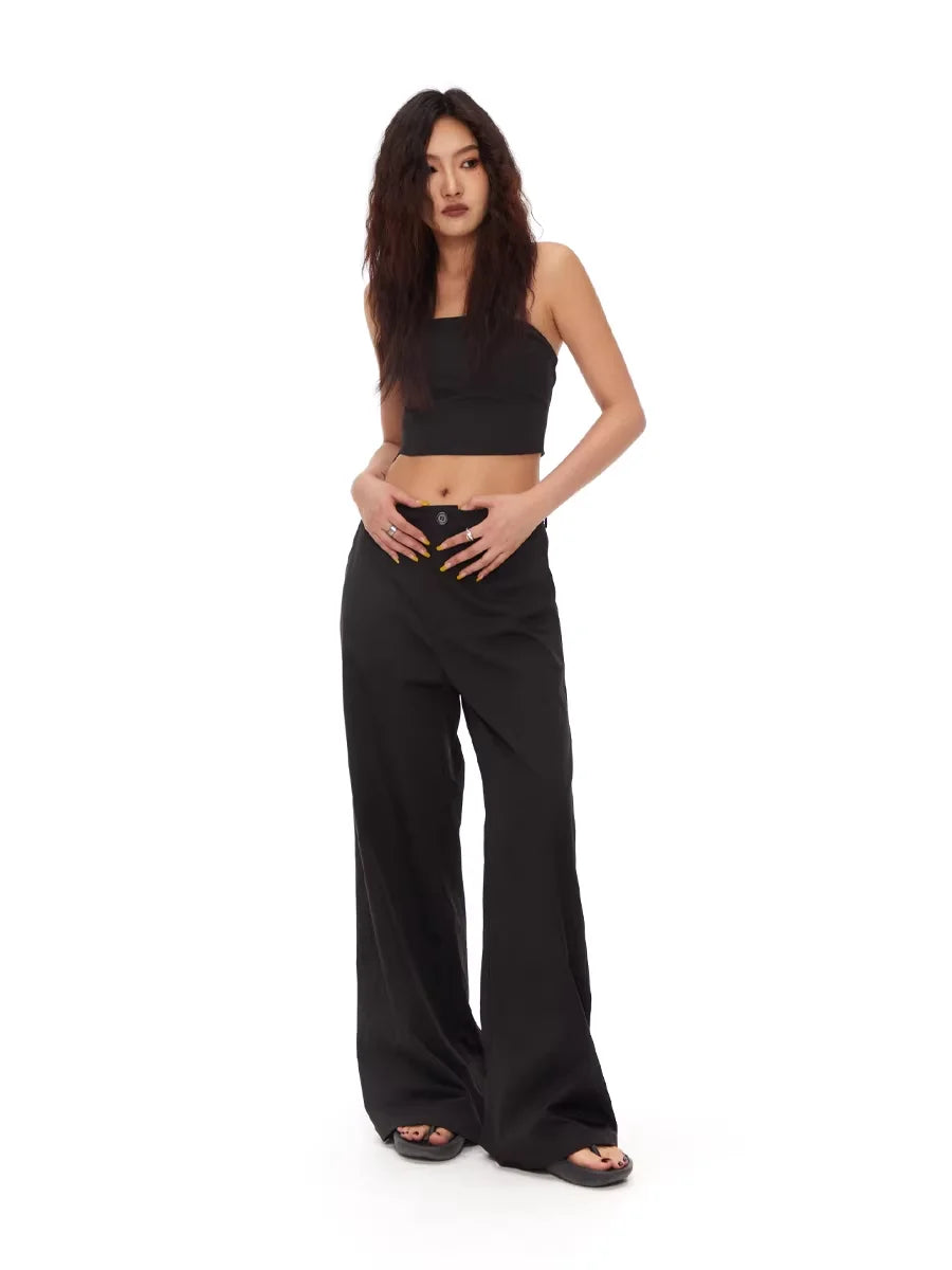 THELIGHT OFFICIAL Women's Black Wide-Leg High-Waist Trousers