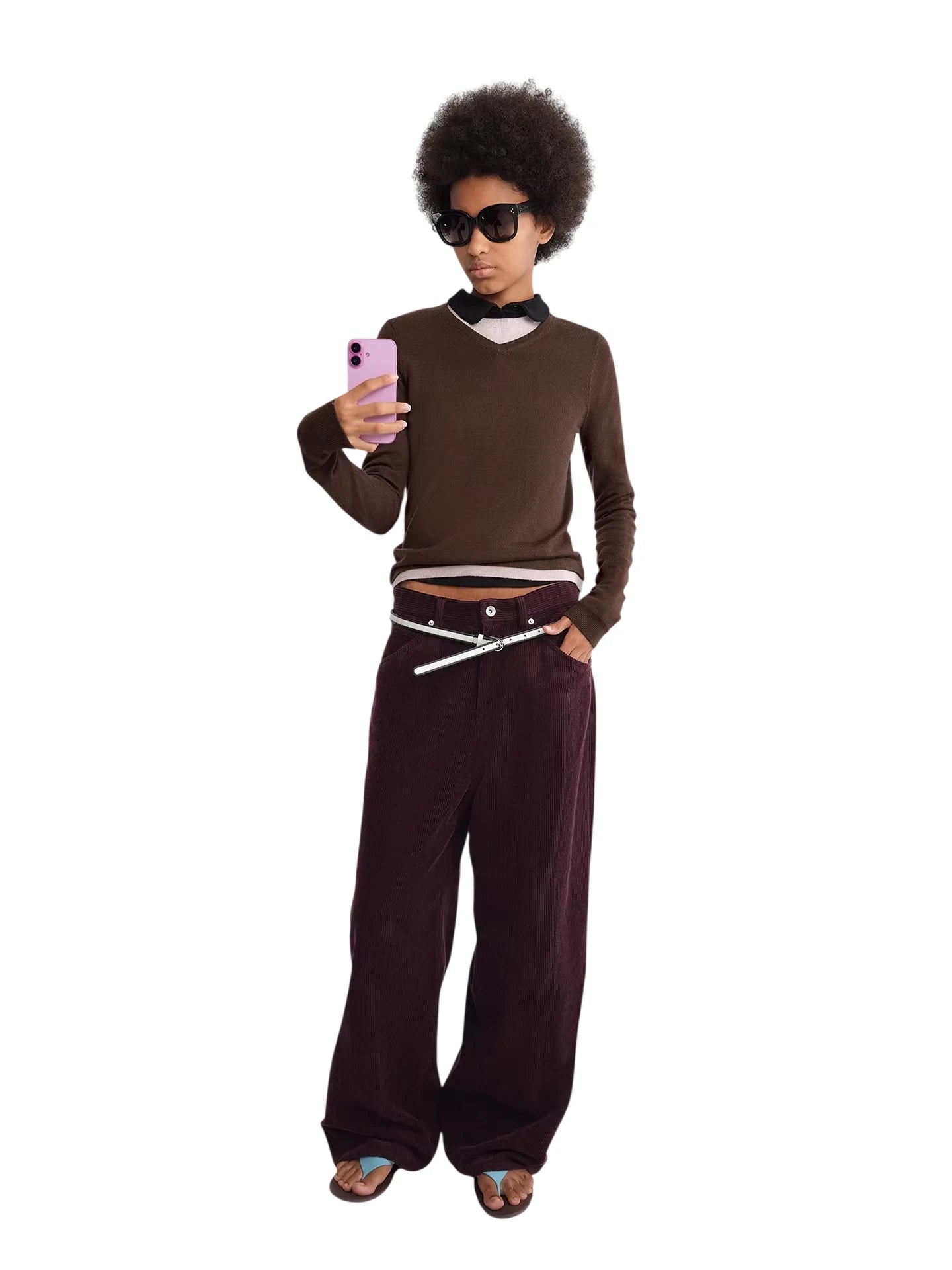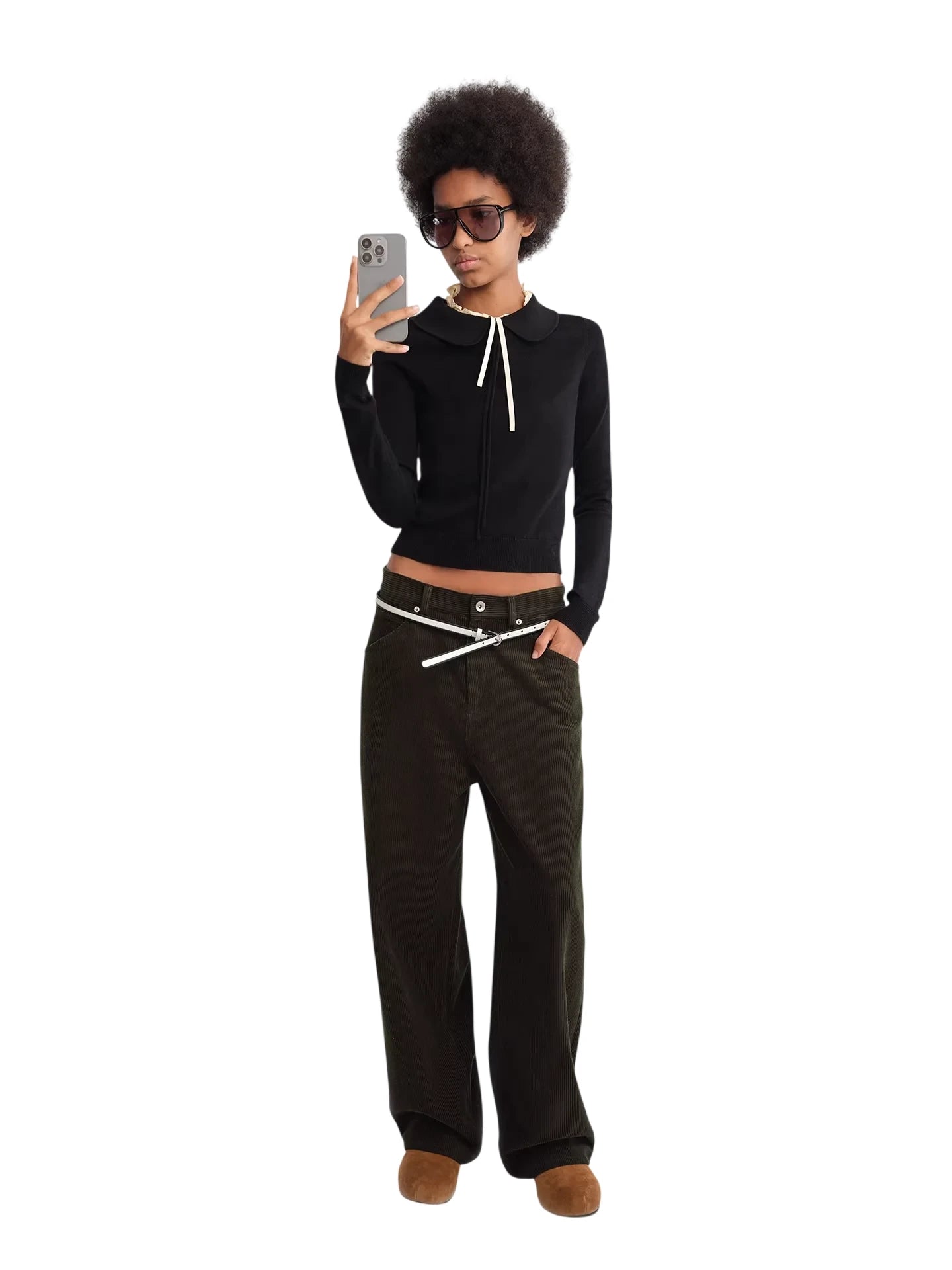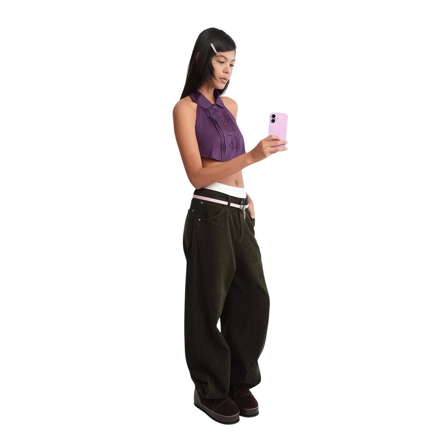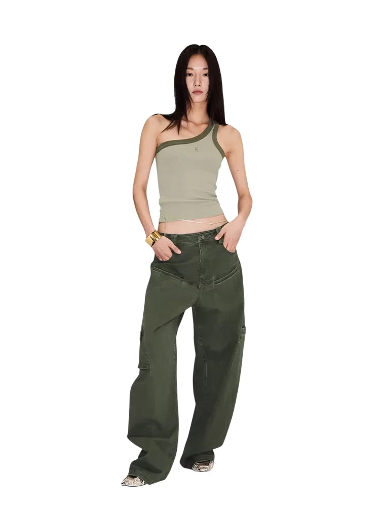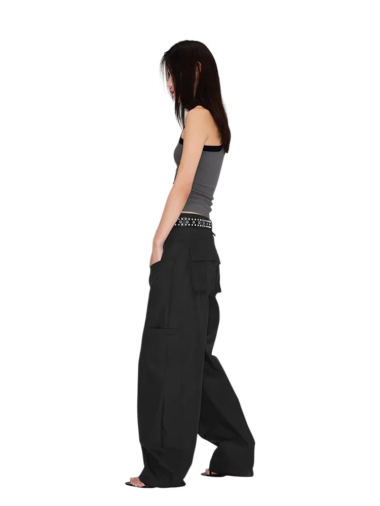 RARELY ALIKE Double Waistband Patchwork Wide-Leg Cargo Pants
