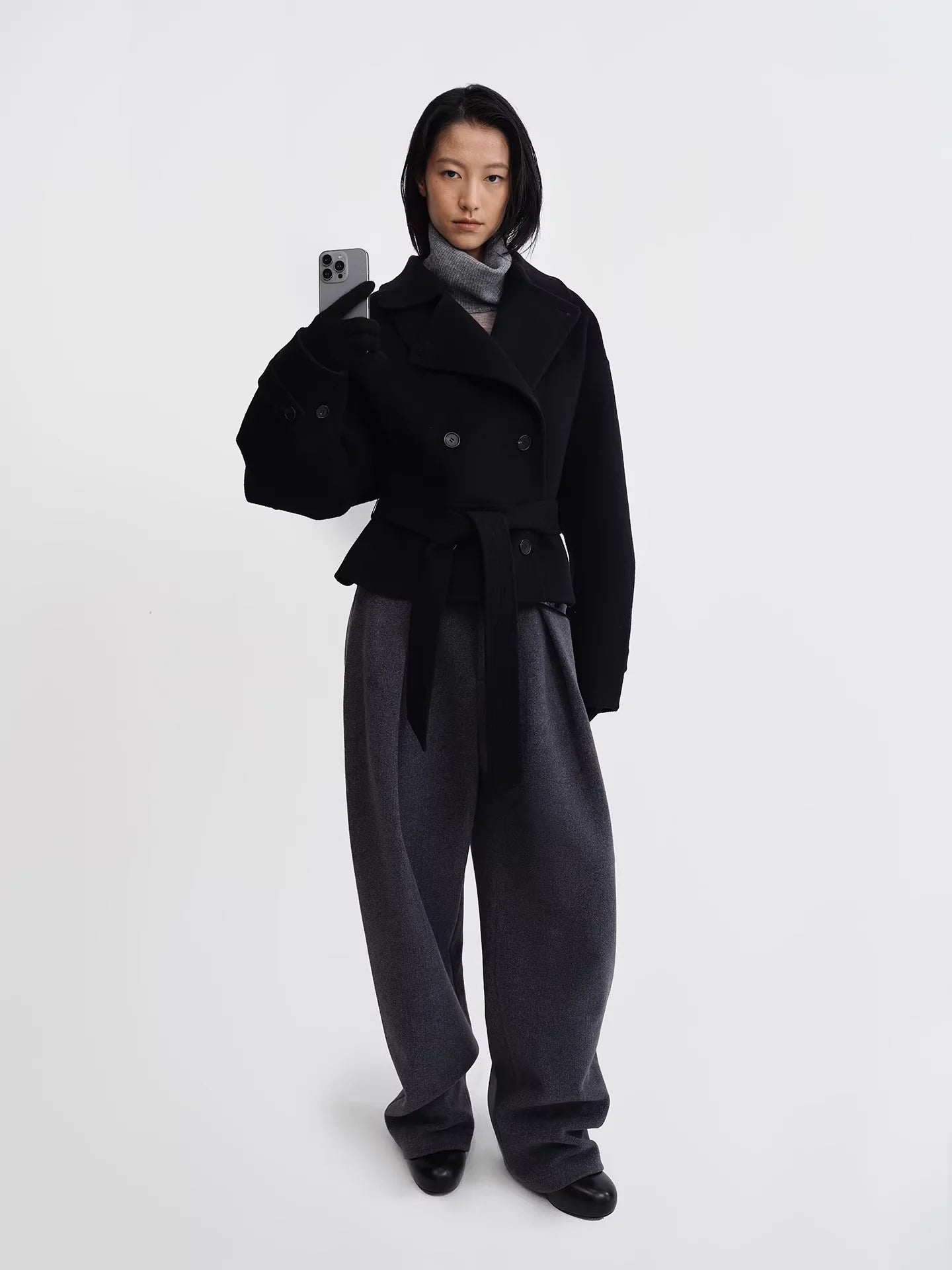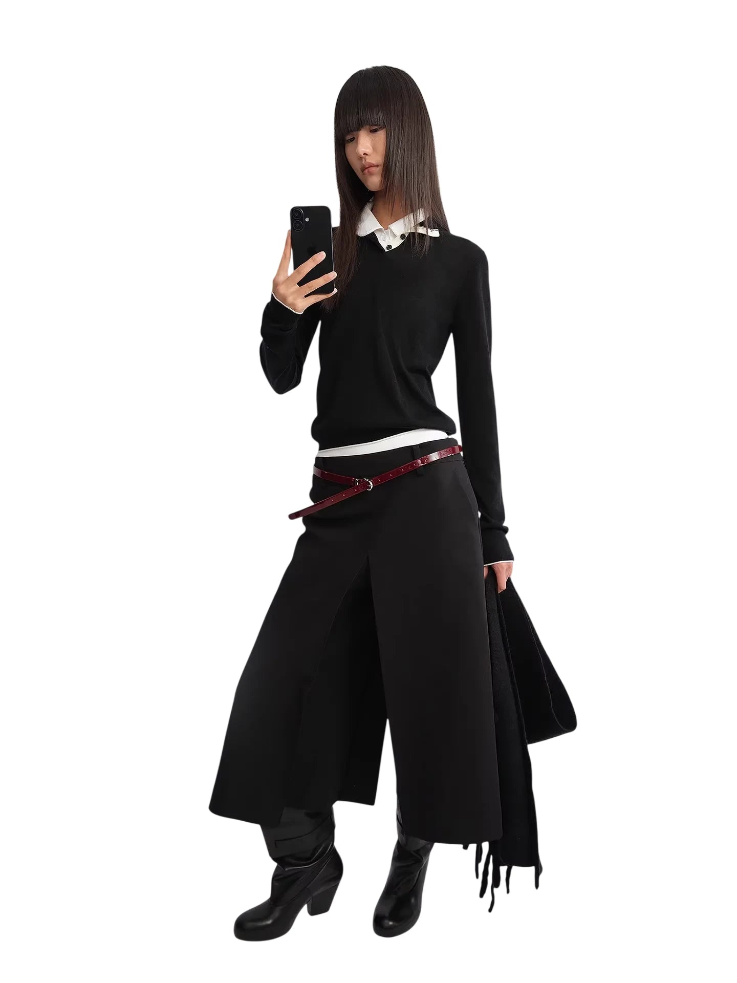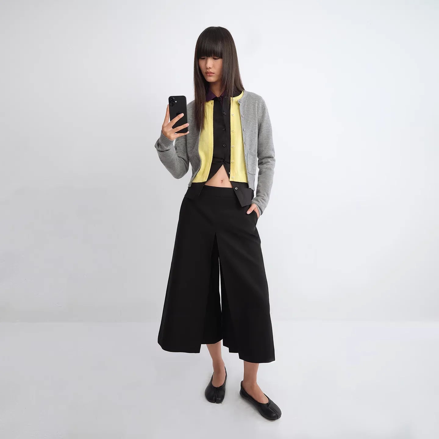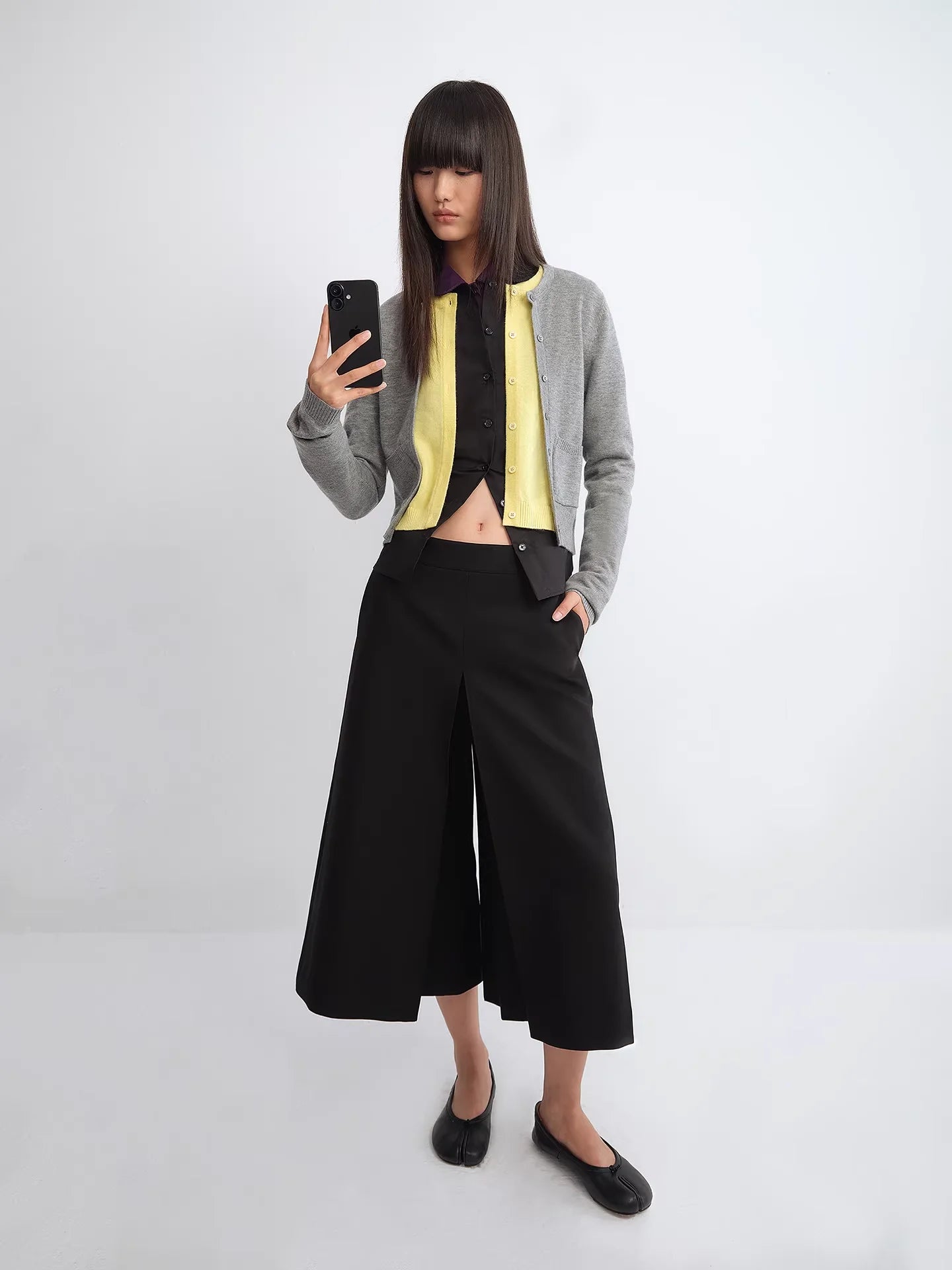 RARELY ALIKE Mid-Rise Wool Blend Wide-Leg Trousers - Dark Gray/Black