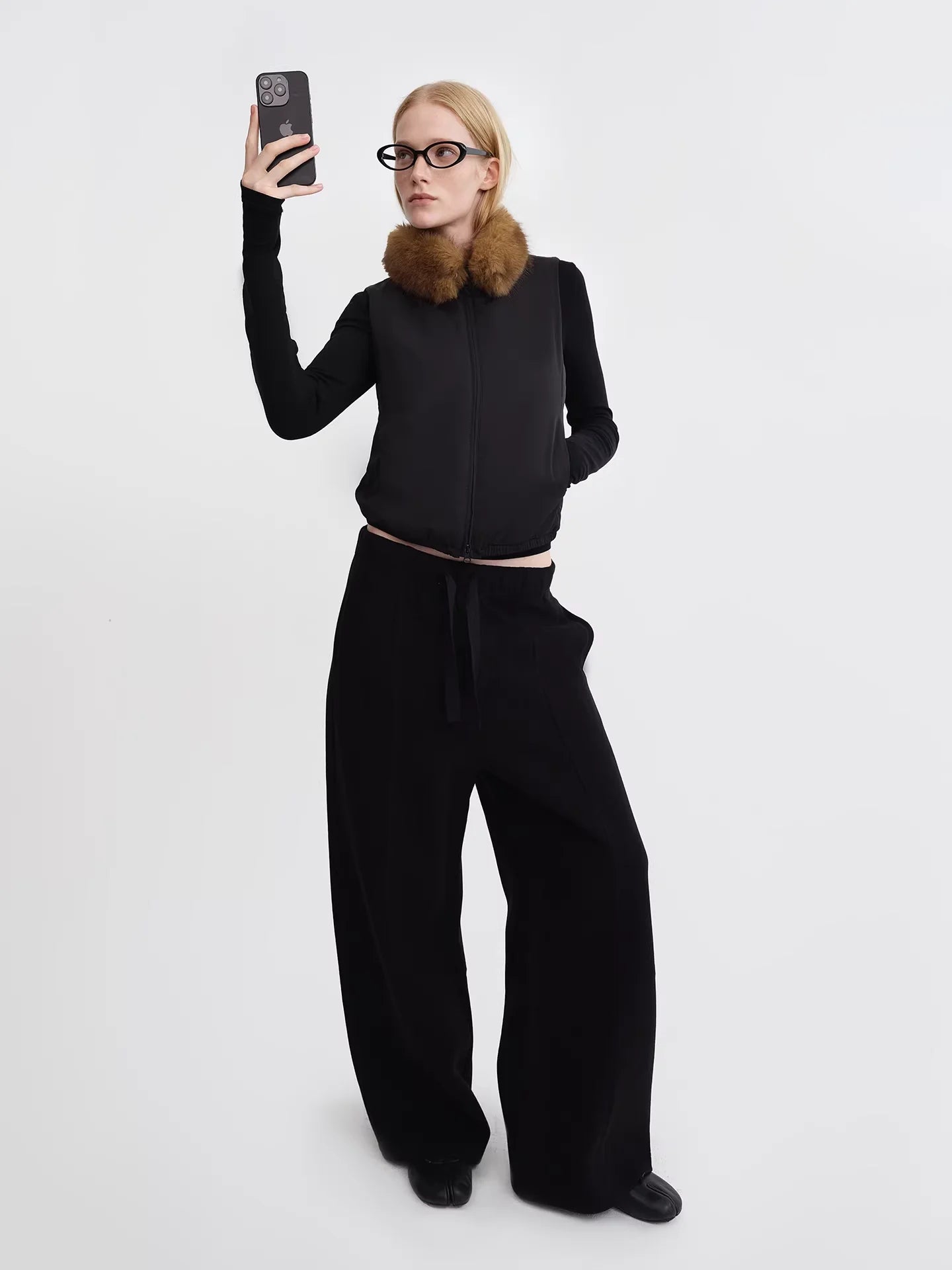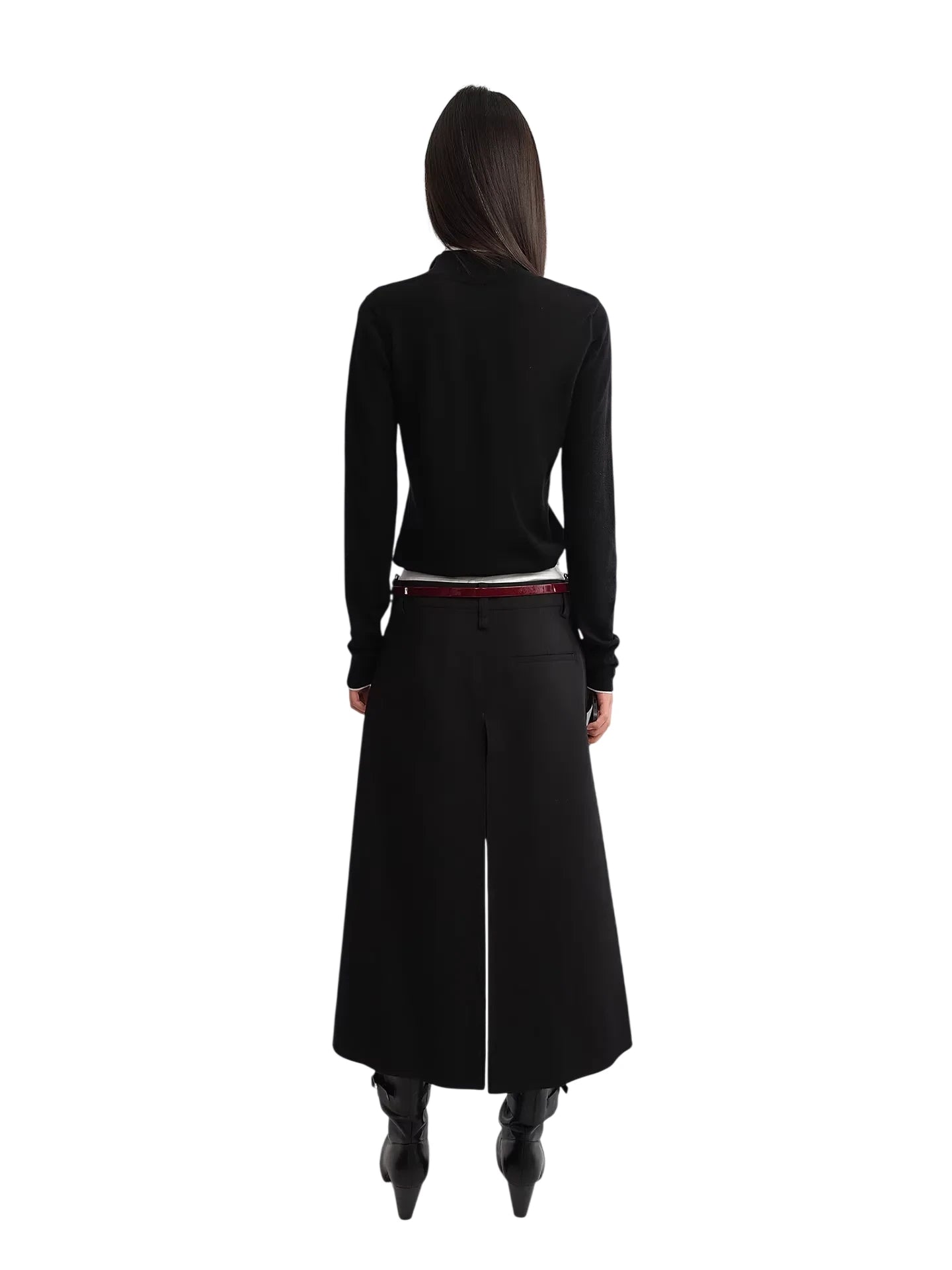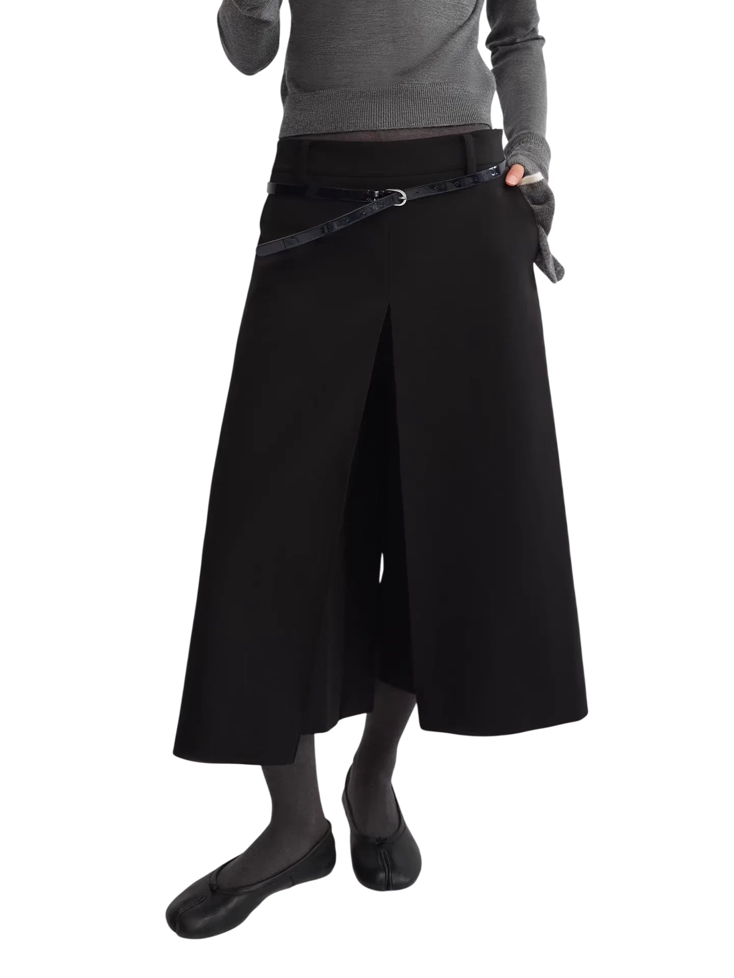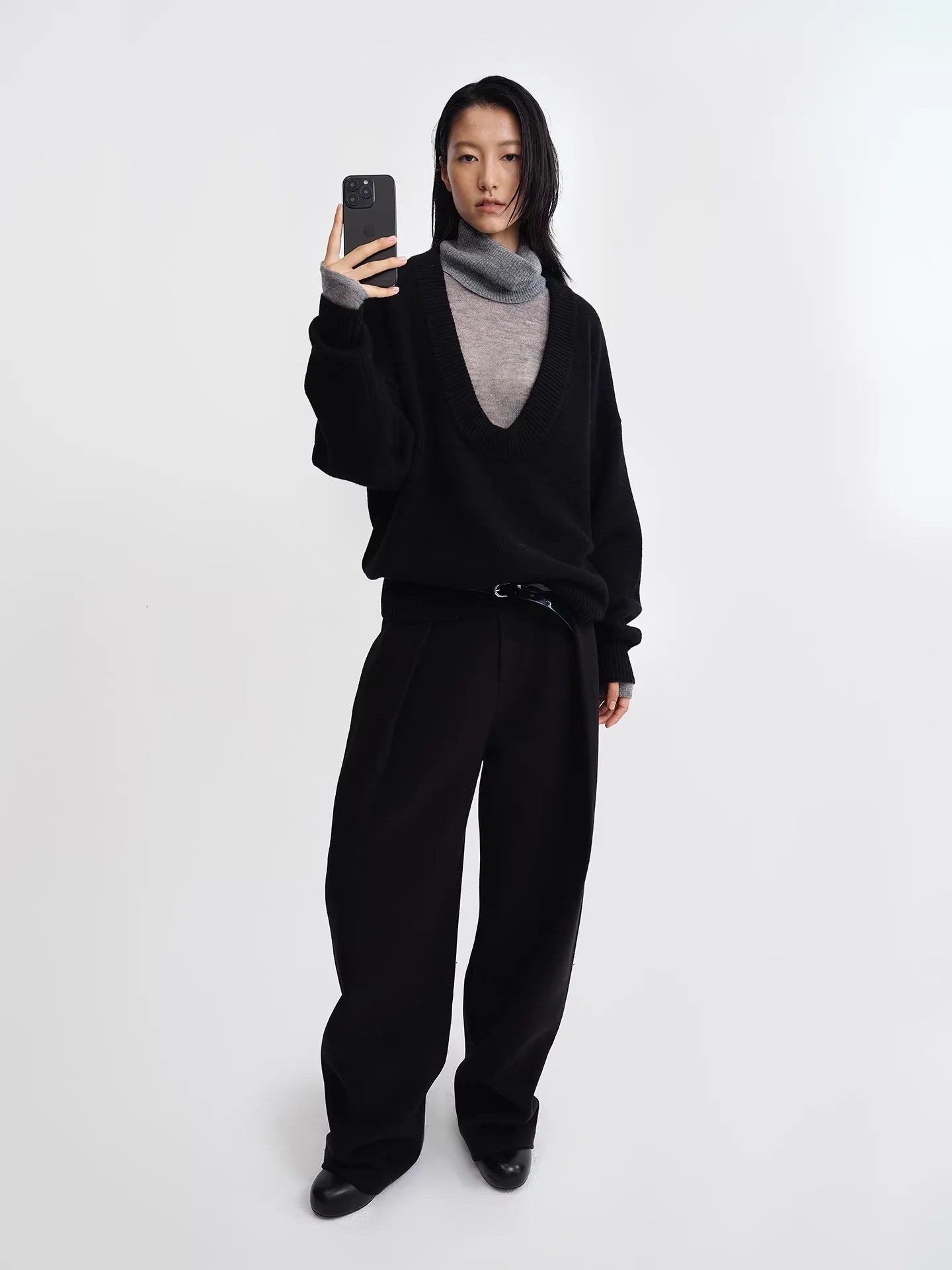 RARELY ALIKE Mid-Rise Wool Blend Wide-Leg Trousers - Dark Gray/Black